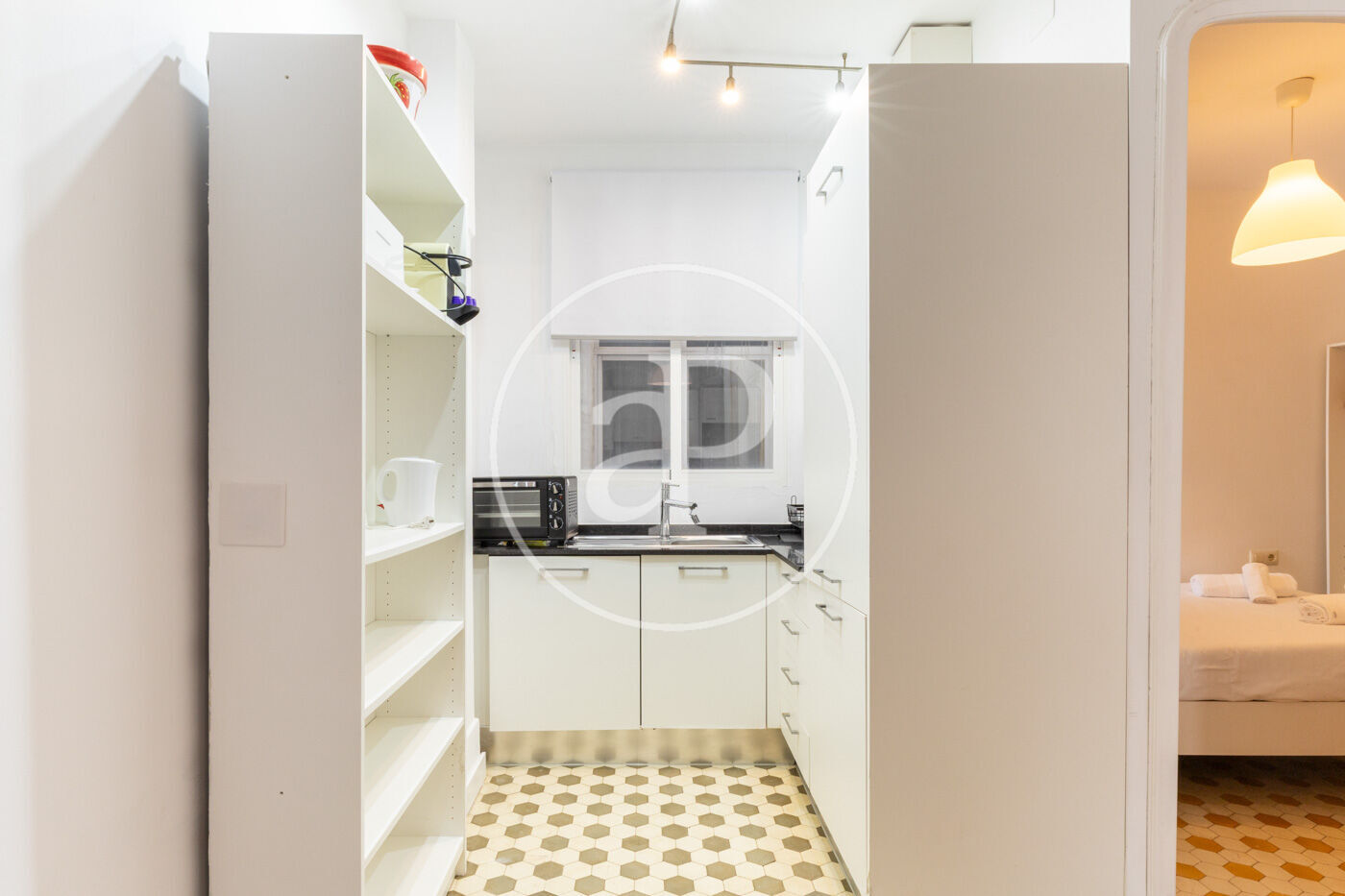 The apartment includes a fully equipped kitchen.