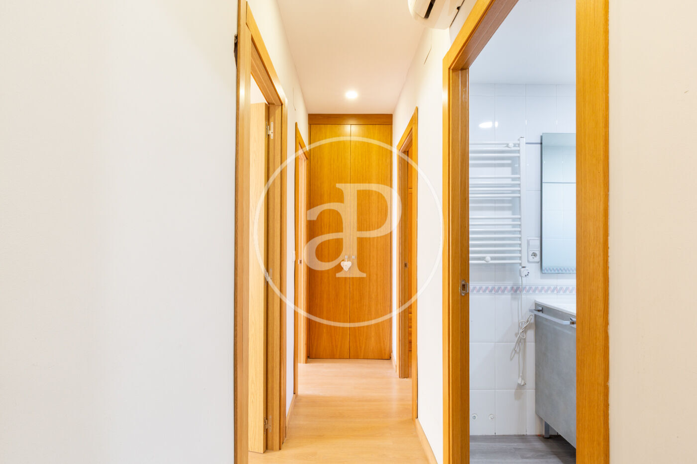 Located between Plaça de la Vila de Gràcia and Gran de Gràcia street, this cozy property has been fully renovated 8 years ago and is impeccably maintained. It is a main floor apartment without an elevator (first real floor), with stair access adapted for people with reduced mobility and only one neighbor per floor. As a corner building, the property enjoys sunlight both in the morning and in the afternoon. Upon entering, the day area is clearly defined on the left and the night area on the right. The high ceilings with wooden beams combine perfectly with the natural parquet flooring and some exposed brick walls. The main bedroom features a double balcony, ceiling fan and built-in wardrobe. The second double bedroom has a large window and built-in wardrobe, while the third is a spacious single bedroom with a window. Winter comfort is ensured by radiators in all rooms, while summer comfort is provided by two air conditioning split units. Between the day and night areas there is a spacious full bathroom. Next, we access the day area, where the open-plan kitchen and living room stand out, featuring hydraulic-style flooring, as well as the living-dining area with a balcony. Finally, from the kitchen we access the laundry area, located in a naturally lit space overlooking an interior courtyard. The building offers a communal rooftop terrace with views. Undoubtedly, due to its location, design, finishes and comfort, this charming property is well worth a visit.