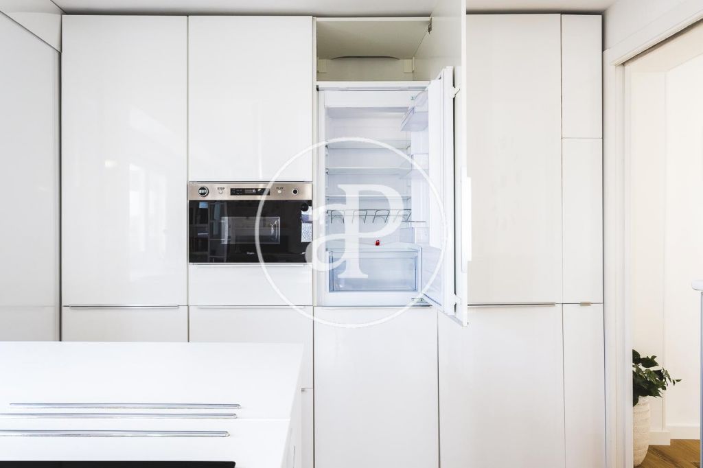 AVAILABLE FROM MARCH 1ST Charming three-bedroom apartment in an unbeatable location, just steps away from L’Auditori and Glòries. Upon entering, you’ll find the living-dining area, a spacious and bright space, furnished in a contemporary and elegant style. Thanks to its large windows, the apartment is incredibly cozy, creating a warm and pleasant atmosphere. The kitchen, separate from the living room, is fully equipped with modern appliances and high-quality kitchen utensils. The apartment has three bedrooms: one double, exterior, and en suite, and two single rooms, one exterior and the other interior, both equipped with wardrobes and a desk. Additionally, there is a fourth room designed as a dressing area, perfect for organizing clothes and accessories, with direct access to the laundry area. The property is equipped with ducted air conditioning, low-energy electric heating, and a video surveillance system with an alarm for added security. This apartment is perfect for a couple or a family looking for a move-in-ready home in a central location, with all the necessary amenities to enjoy Barcelona’s vibrant lifestyle. Contact us for more information! The actual furniture may not exactly match the photographs shown in this advertisement.* In compliance with Law 12/2023 and Law 18/2007, we inform thatIndex of R.P.LL: 11,47 € / m2 State reference price 1.265,00 €