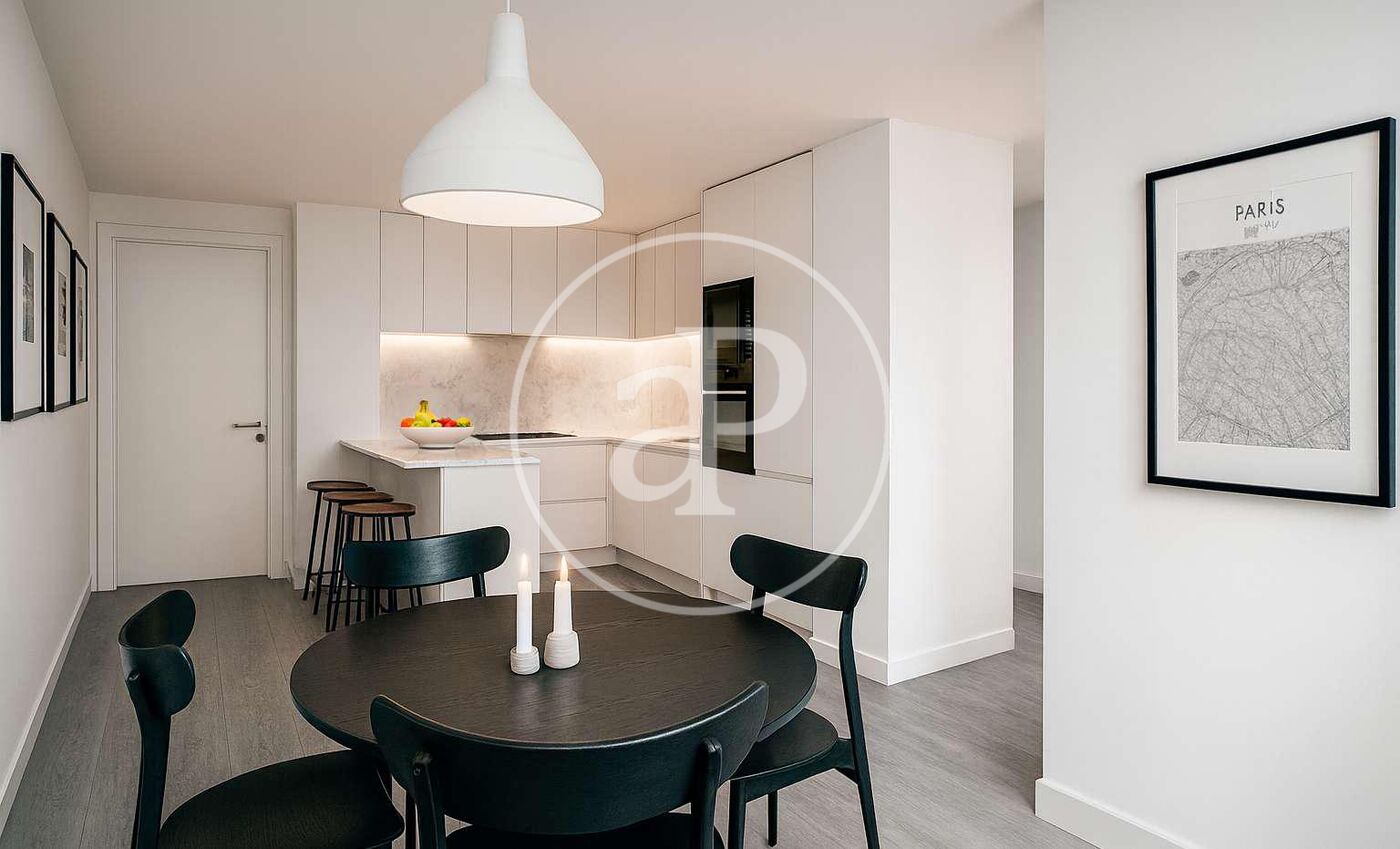 Located in an elegant 1929 building in the Sant Antoni neighbourhood—one of Barcelona’s most sought-after and up-and-coming areas—this fully renovated apartment is ideal for those seeking a characterful home in the very heart of the city. The property, situated on the third floor with a lift, offers 77 m² of very well-distributed space. The daytime area is arranged as a spacious and bright open-plan living space that combines the living room, dining area and kitchen, creating a comfortable and functional environment for everyday living. From here, there is access to a traditional Eixample gallery, which provides abundant natural light and is perfect as a study area or workspace. The open-plan kitchen is fully equipped with appliances and bespoke cabinetry, blending harmoniously with the overall space. The apartment features three bedrooms: one main bedroom and two single bedrooms, offering multiple possibilities for families as well as for those who require an additional room or home office. The layout is completed by a full bathroom, a guest toilet and a practical separate laundry area. Notable features include high ceilings with traditional Catalan vaulting, which add a sense of space and character. Ducted air conditioning and heating ensure year-round comfort. The location is one of its greatest assets: just a few minutes from Plaça d’Espanya and only steps from Gran Via, with immediate access to a wide range of shops, restaurants, services and public transport. Its excellent connections allow for easy travel both to the historic city centre and to the main exit routes out of the city, in a dynamic and very well-connected setting. An ideal opportunity to live or invest in a charming building in one of Barcelona’s most attractive areas. Don't hesitate to contact us to organize a visit!