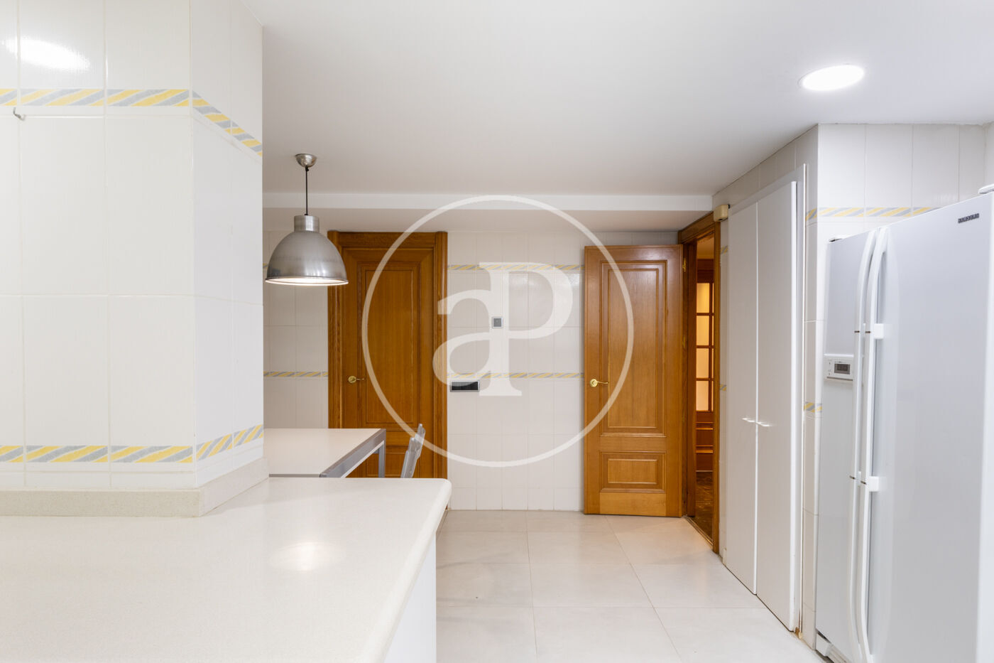 The house is organized around two perfectly differentiated areas. The day area has a large kitchen, currently equipped, with enough space for a daily dining room, and a laundry room with access to the interior patio terrace. Courtesy toilet. In addition, a separate formal dining room, comfortably connected to the kitchen, open plan living room with views of Colón and an additional space that can be used as a music room, audiovisual room, etc. Air conditioning hot and cold by ducts. Wooden floors.