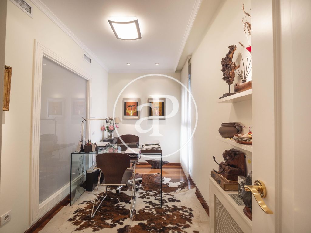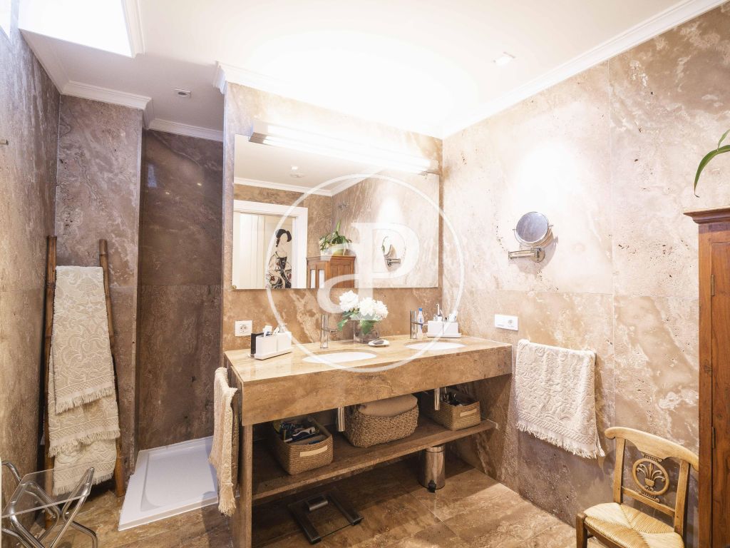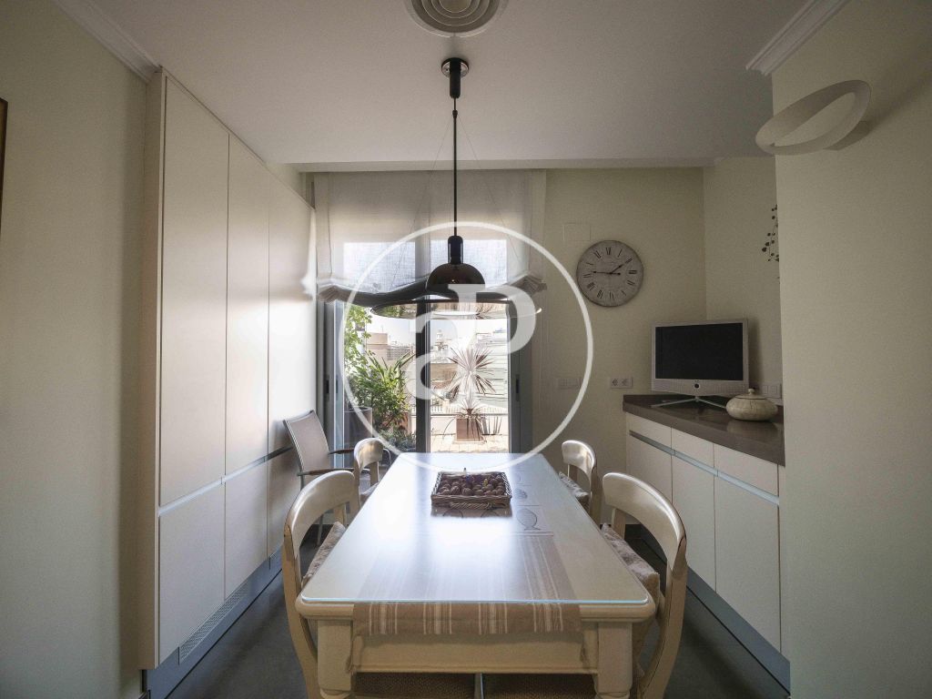 This penthouse with terrace, is located on the seventh floor of a recently built estate in Pla del Remei. The house has 182m2 built, with an open terrace of 25 m2 and another covered of approximately 10m2. This wonderful attic of rectangular plant, is composed of two areas clearly divided by the entrance hall. The day area is completely exterior, consists of a large living room, a fully equipped kitchen, a hallway with fitted wardrobes, and a toilet. From the living room and kitchen, through large double windows, access directly to the generous terrace that has a water point, a garden area, a relaxation area and a barbecue space. The night area consists of four bedrooms (one of them destined to despair today), a full bathroom covered with natural stone, and a full bathroom en suite along with a dressing area in the master bedroom. In addition, both the master bedroom and the adjacent bedroom have direct access to a pleasant covered terrace. The built-in closets and the natural light, typical of the height, complete this rest area. In addition to a logical and comfortable distribution, and an age of only ten years (something exceptional in this neighborhood), the house is in perfect condition, and has excellent maintenance and neatness. The beautiful original facade was maintained in conjunction with much more modern details that adorn all the common spaces and the patio. This fantastic penthouse has two parking spaces and a storage room in the same building with direct access from the elevator, included in the price.