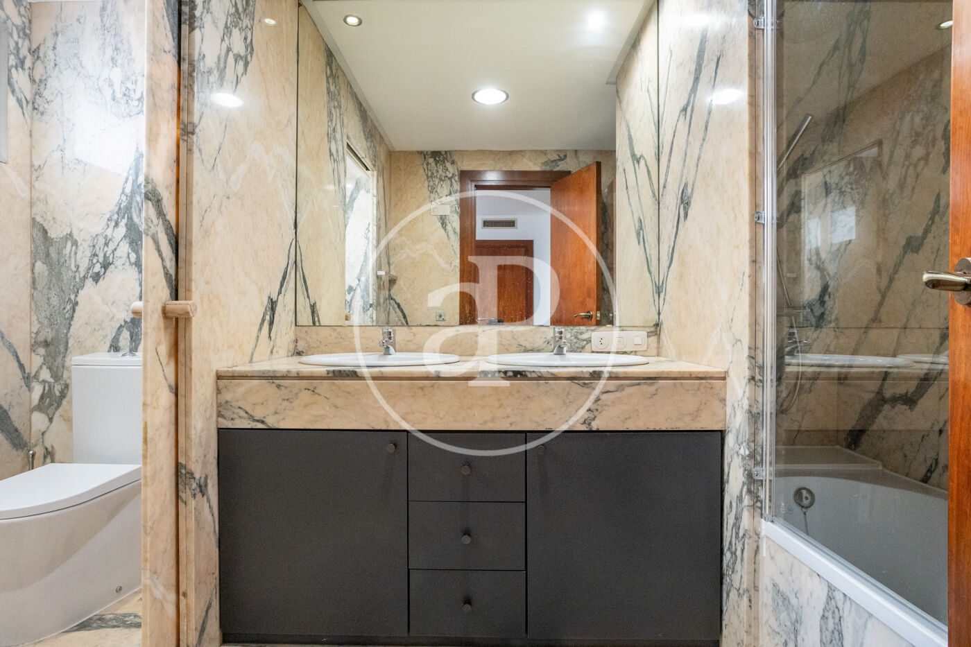 This fabulous apartment features a very spacious and bright living-dining room with two clearly defined areas: a relaxation area and a dining area. It offers two double bedrooms, both with built-in wardrobes, as well as two bathrooms, one of them en suite with a separate sanitary area. The kitchen, recently renovated, is fully equipped and provides ample space for breakfast, lunch, or dinner.