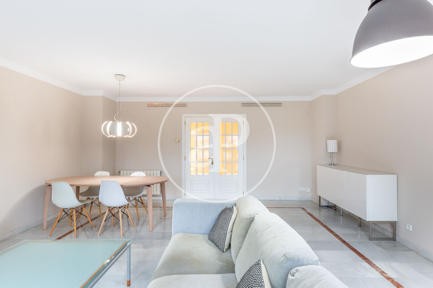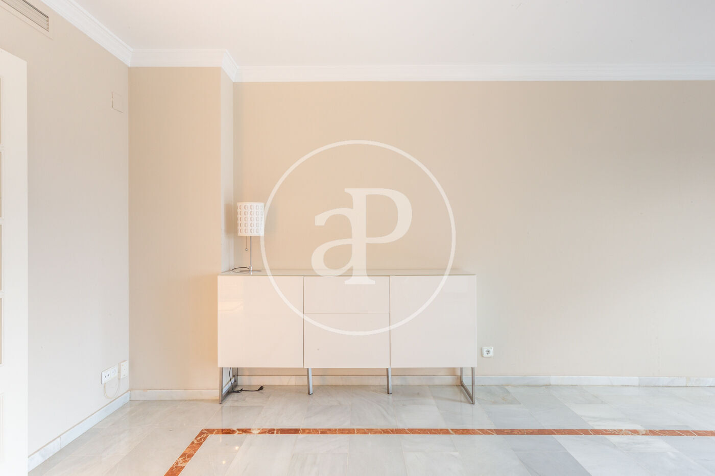 With a surface area of 123 m², the spaces are spacious and filled with natural light. Upon entering the property, a welcoming entrance hall leads to a large living-dining room, whose windows flood the space with natural light. The entire property features marble flooring, providing continuity and elegance throughout.