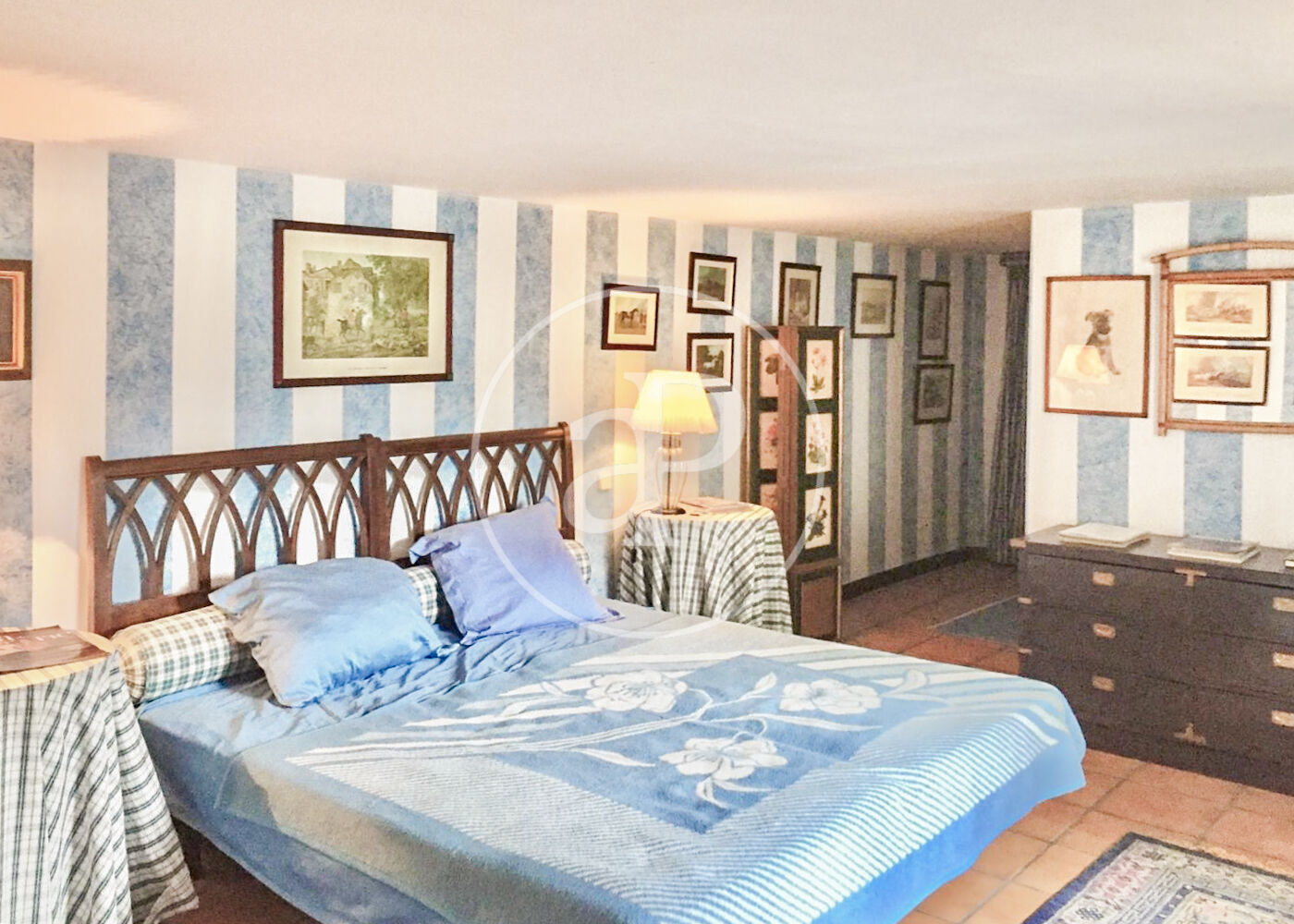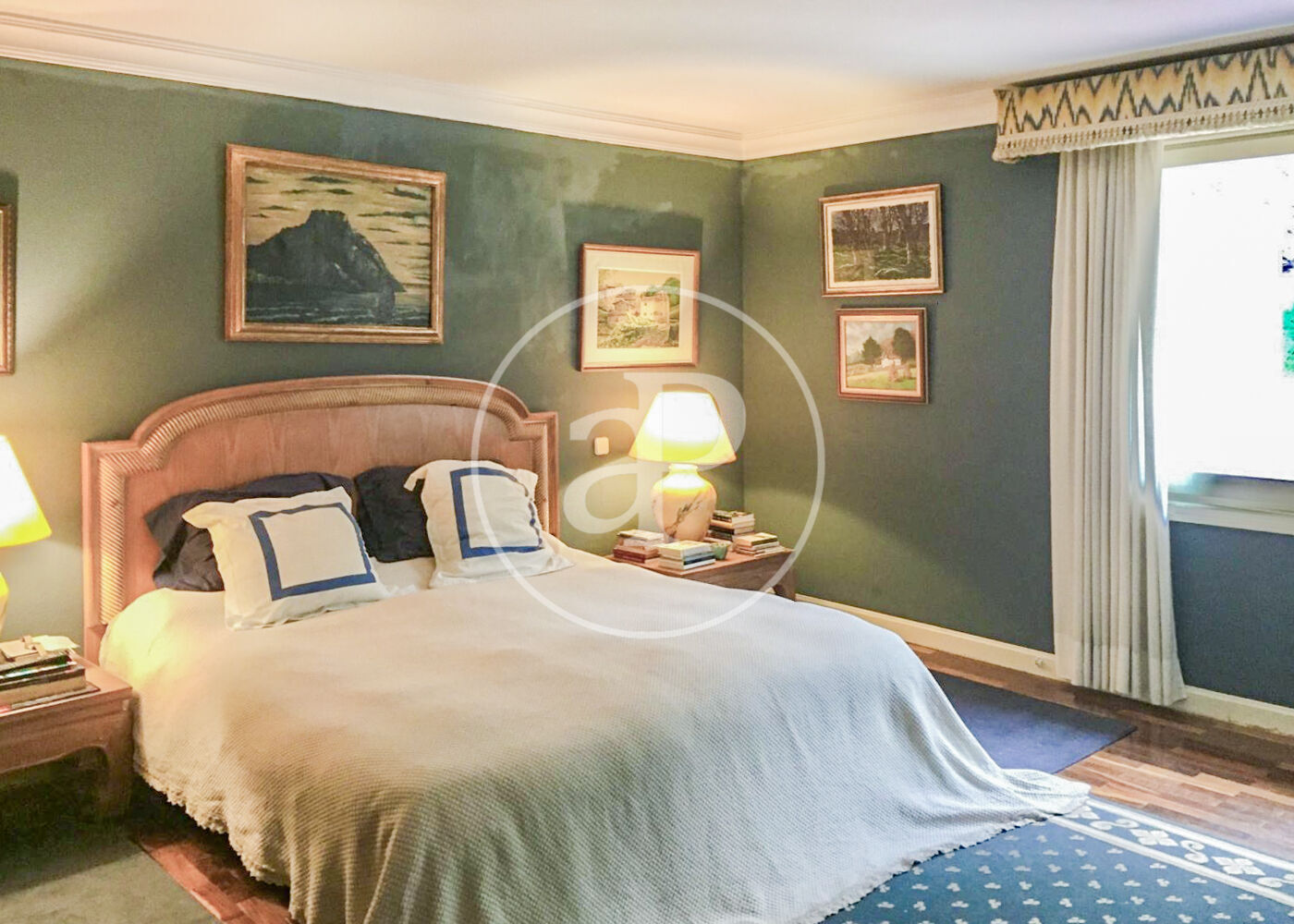 On the main floor, an elegant hall distributes the office with library and fireplace with access to the garden, the living room with several areas and fireplace, the dining room with access to the garden, and toilet.