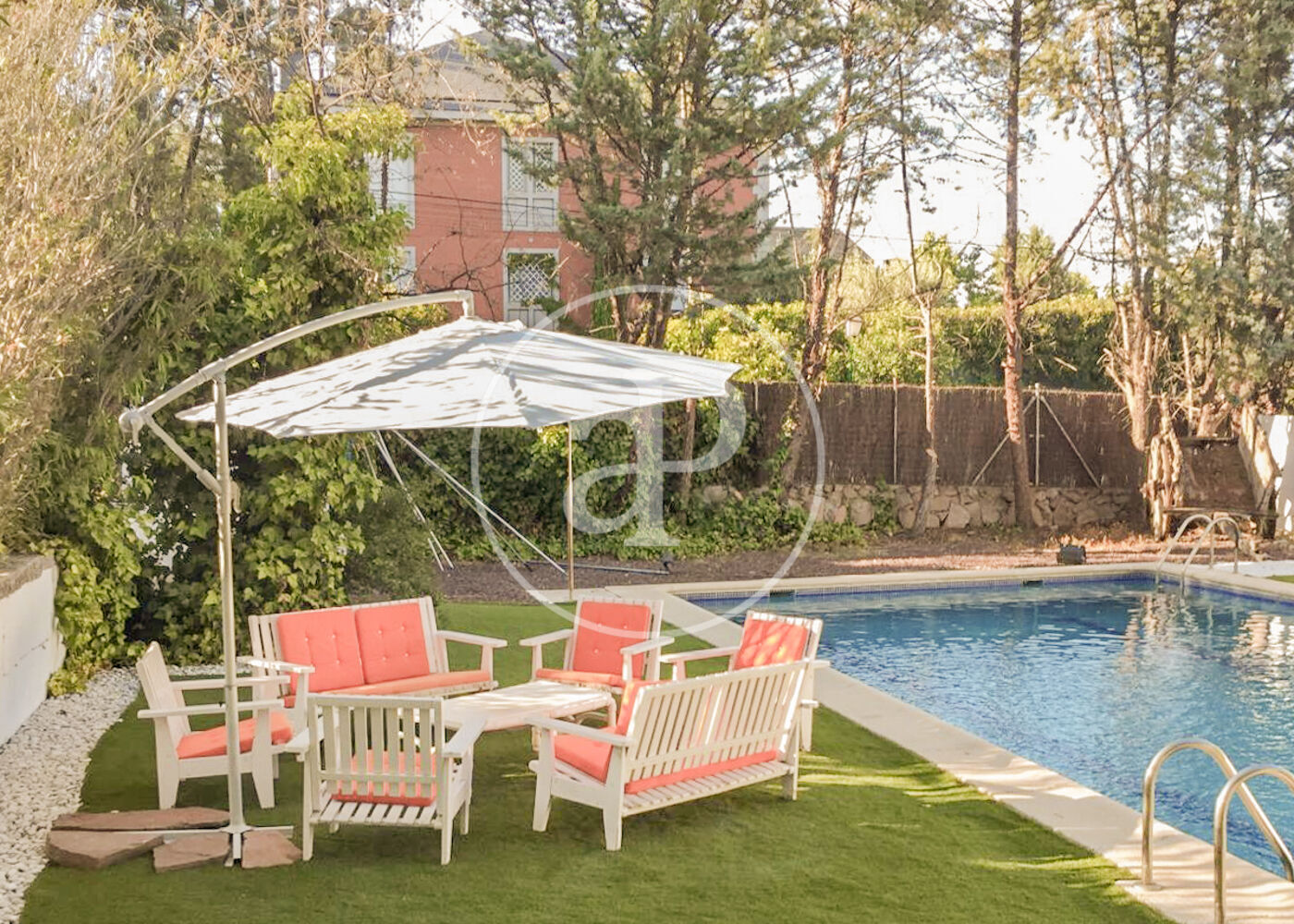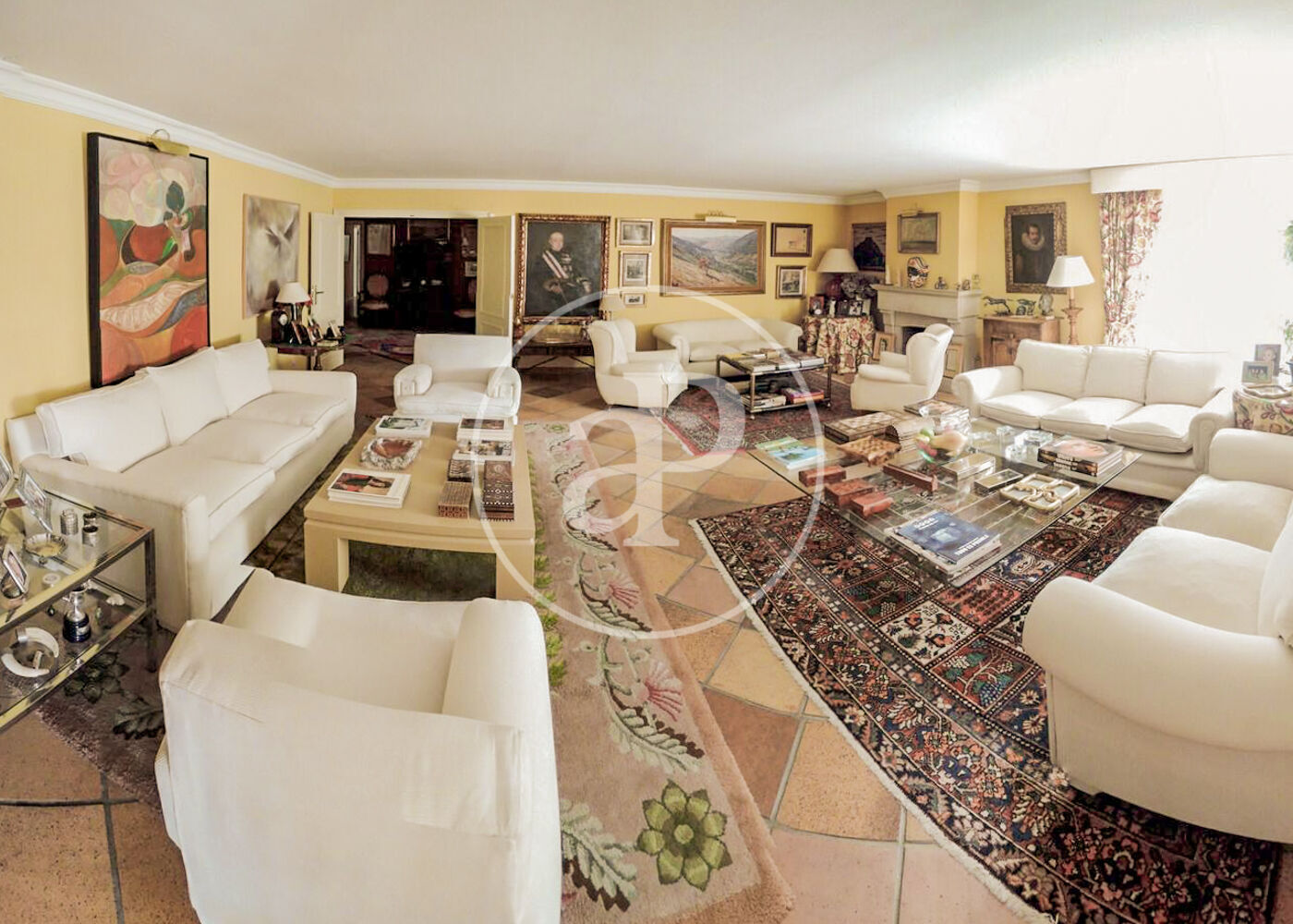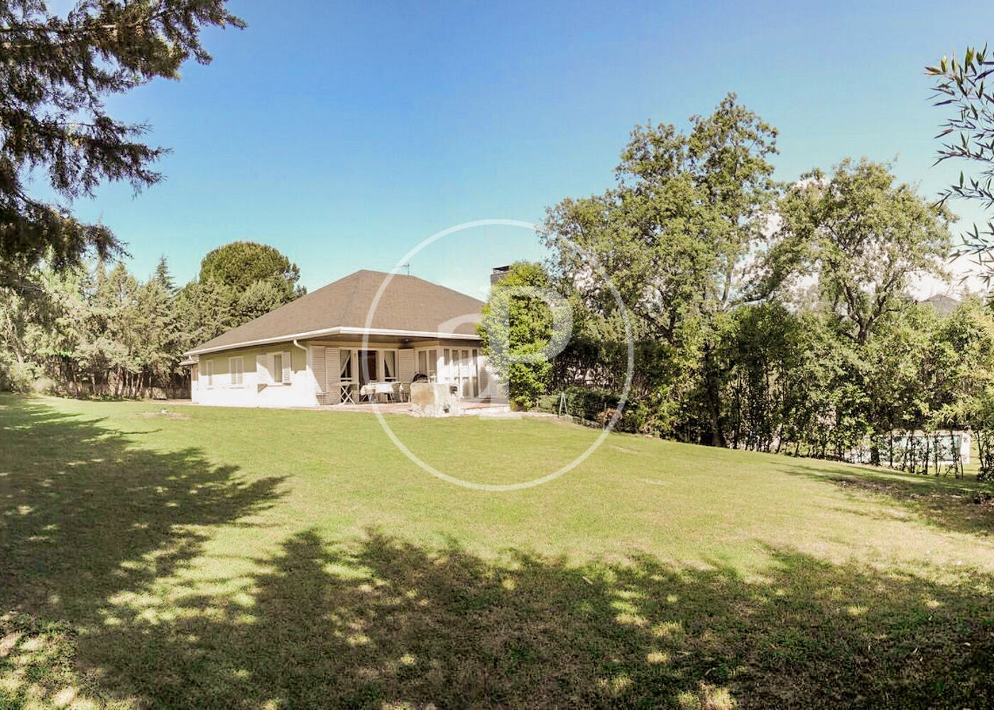 aProperties Real Estate presents a beautiful villa, which stands out for its structure, quality, beauty and state of conservation. Located in one of the best areas of the urbanization, near the Coto de la Pesadilla, integrated in the park of the Cuenca Alta del Manzanares. The impressive plot of 5,038 m² enjoys great privacy and tranquillity. The 480 m² property breathes quality and good taste in every corner, and has an excellent layout, very logical and practical. In addition, the attic is not fitted out and could be added to the rest of the house. Its distribution is as follows: Main floor: from the pleasant entrance hall we access, on the one hand, to a spacious living room with fireplace and different atmospheres, surrounded by large windows and with direct access to the porch, south facing. Attached to the living room there is a cosy office-library, a guest toilet with a walk-in wardrobe and a spacious and luminous dining room. From the other part of the hall, we access to an impeccable and spacious kitchen, with dining room and direct access to the service area and the laundry area. First floor: by means of comfortable and impeccable wooden stairs we reach the sleeping area, which houses two bedrooms with dressing room and bathroom, and two additional bedrooms, one of them with fireplace, which share a bathroom. From this floor there is access to the attic, which is currently not fitted out, but could be extended if necessary. Semi-basement floor: garage for two cars, with the possibility of parking two more outside, and three additional rooms, currently used as storage rooms. The garden is impressive, and has two distinct parts. The front part of the plot maintains the autochthonous vegetation, and is low maintenance, but no less beautiful, and the back part houses the swimming pool, meadow area and a variety of plants and flowers, all of them very well cared for. Access to the property is via a ramp from which you can discover the beauty and spectacular nature of the property. An ideal property to enjoy with family and friends, with excellent construction quality and great taste, in an idyllic and intimate environment. aProperties invites you to visit our website www.aproperties.es where you can find all the properties we sell. Can you imagine living here?