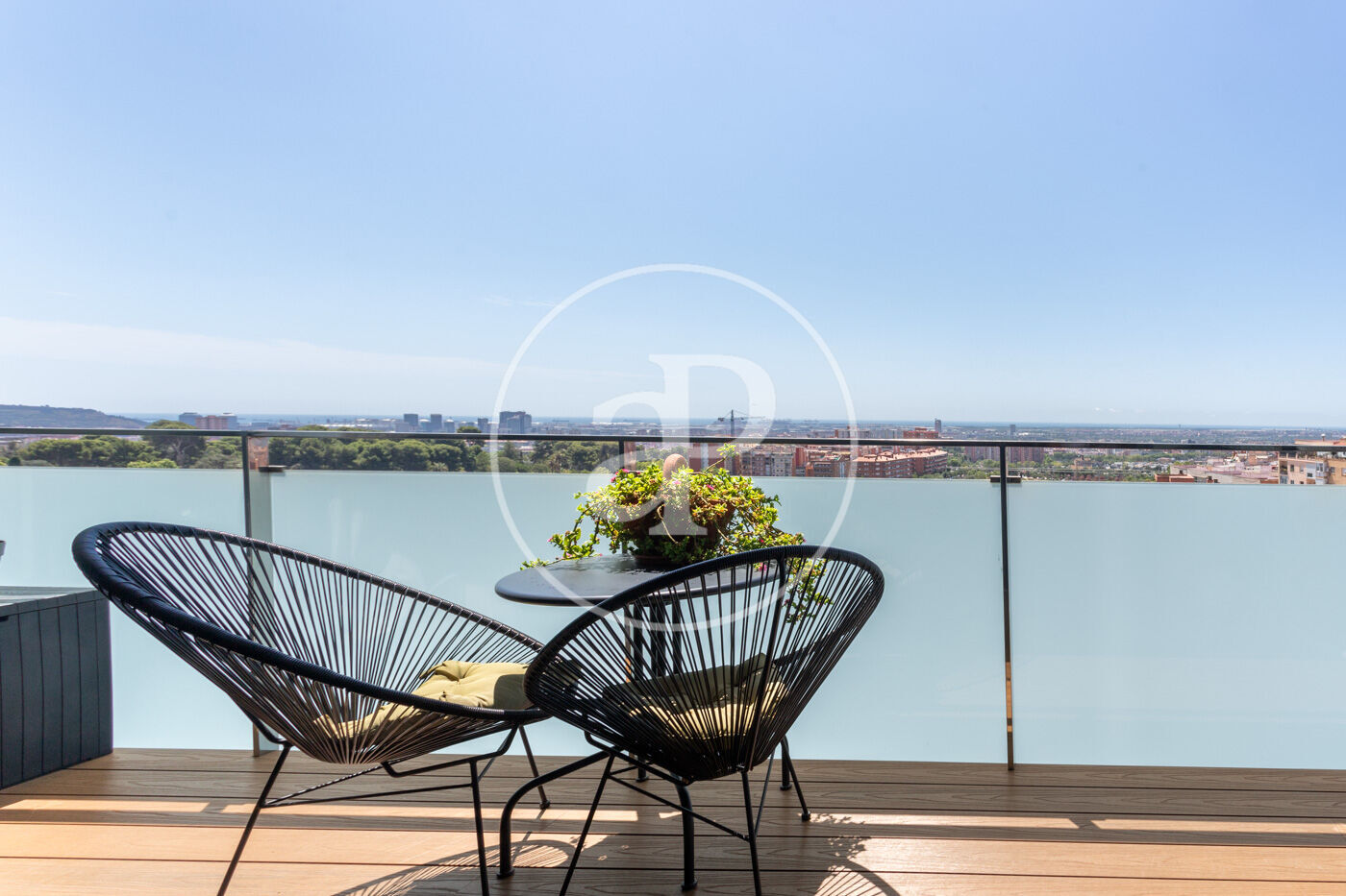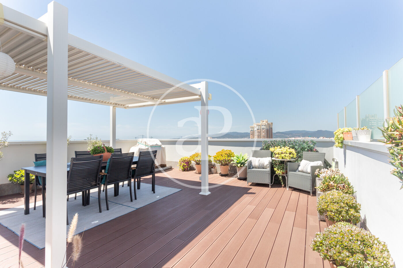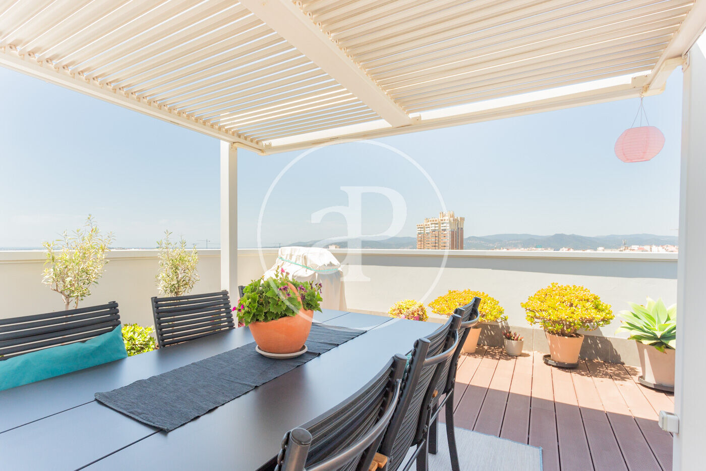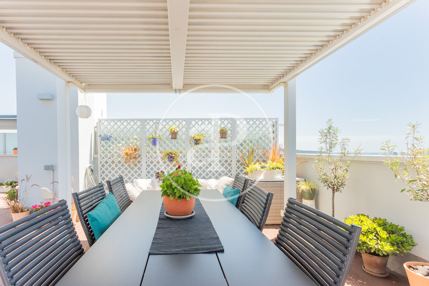 Este precioso ático tiene una terraza impresionante de 50 metros cuadrados, con vista 360º al mar y a la ciudad, es un espacio ideal para disfrutar de cenas al aire libre, capacidad para trastero para dejar útiles y así tener comodidad.