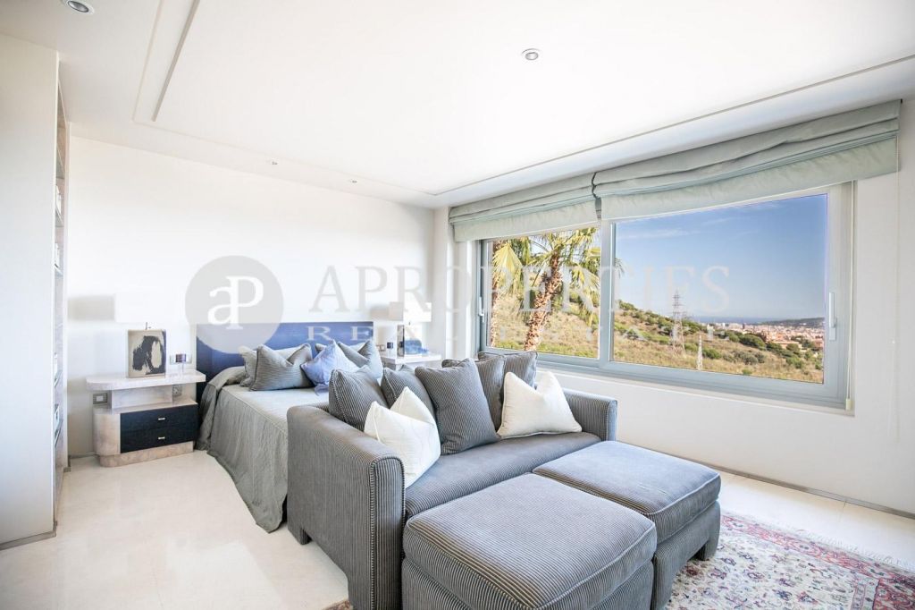 Cerca de los túneles de Vallvidriera a 10 minutos de Barcelona, encontramos esta espléndida adosada en el centro de Mirasol. Andando a un par de minutos encontrará la estación de Mirasol, el mercado, comercios y restauración, el colegio Catalunya, La Farga, el Casal de Mirasol y la futura piscina climatizada que terminará sus obras en menos de un año que os facilitará la vida creando un entorno ideal para la vida familiar. Los propietarios han invertido muchísimo tiempo y dinero en esta propiedad, otorgándole varios lujos muy poco comunes en este tipo de inmuebles. Comenzamos nuestra visita en esta casa de 273 mts² según catastro, tras atravesar el jardín. Solamente entrar, encontramos un recibidor con armarios hechos a medida, que nos conduce hacia los diferentes espacios comunes de esta casa, cocina comedor totalmente equipada, aseo de cortesía, salón comedor con chimenea a gas y una cristalera, también a medida, con puertas correderas de madera, cajones y la esquina acristalada. A pie de salón, está el jardín privado, con puerta directa a la comunidad con piscina y jardín donde disfrutar los veranos, que compartirá con tan sólo diez vecinos. En la primera planta, a la que se accede por una escalera con pared acristalada al salón, por lo cual la luz natural lo invade todo, llegamos a las dos habitaciones, el baño que comparten y la master suite, con vestidor y vistas al jardín. En la segunda planta, una habitación doble, con un salón privado, zona de trabajo, terraza y un baño completo con inesperado regalo de una sauna!! Bajando a la planta inferior, dos plazas de parking, un trastero, zona de lavandería con espacio de almacenaje y otra sorpresa más; una pequeña bodega con la temperatura  controlada. Todas las calidades de esta casa son premuim. Sistema de climatización frío calor, independiente en cada planta. Todos los muebles empotrados son de madera de sicomoro y mukari. Todas las aberturas con doble cristal y puente térmico. No dude en contactar con el equipo experto de aProperties Real Estate para la búsqueda de su nuevo hogar. Siempre cercanos, eficaces y profesionales en todo el proceso.