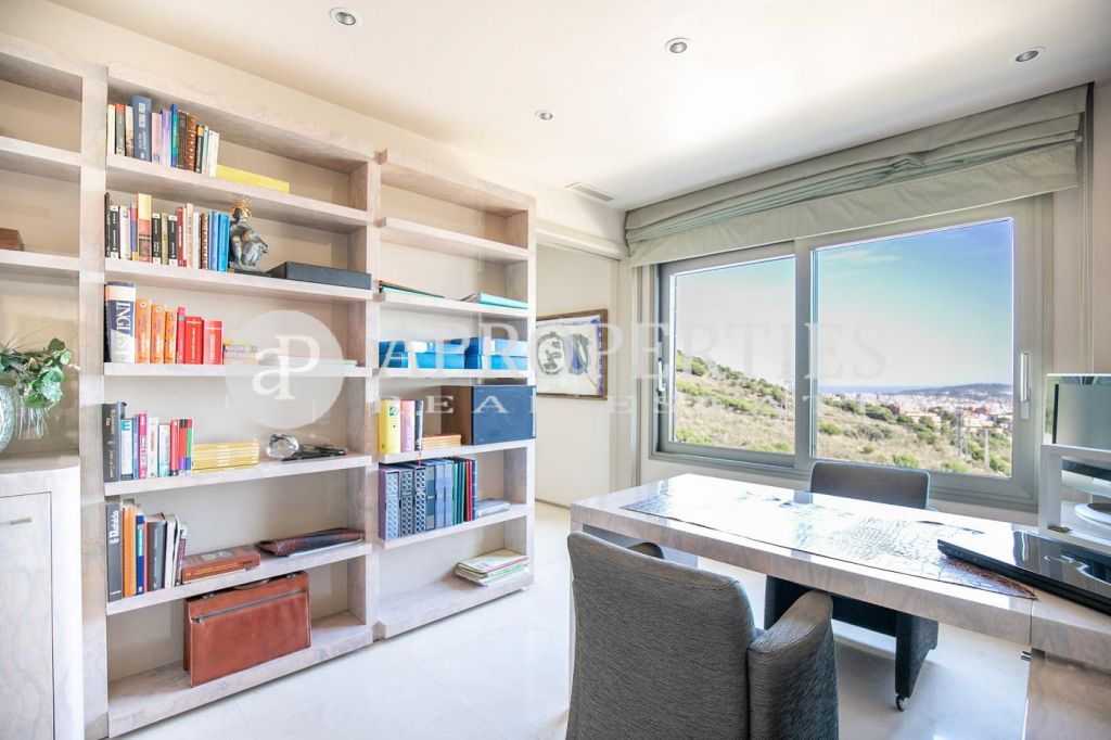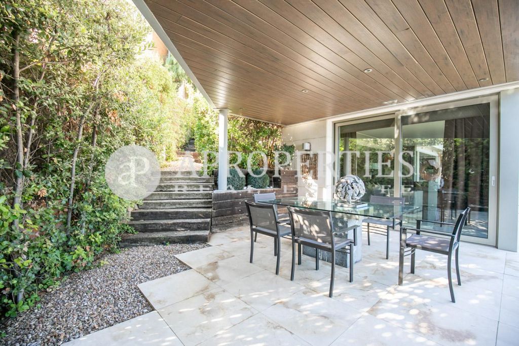 La parcela cuenta con una superficie de 703 m2 sobre la que se ha diseñado un precioso jardín, porche con vistas increíbles a la ciudad, pudiendo ver el mar y la montaña de Collserola.