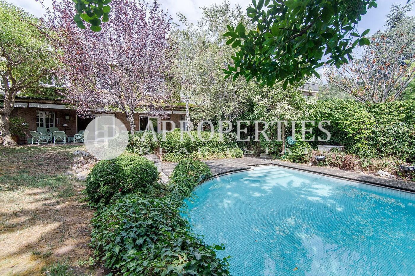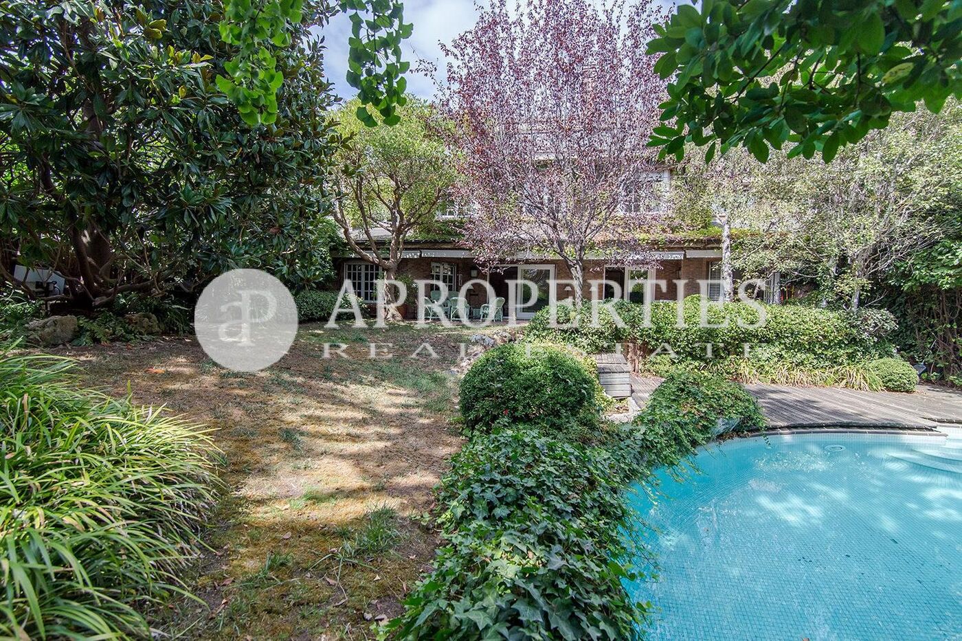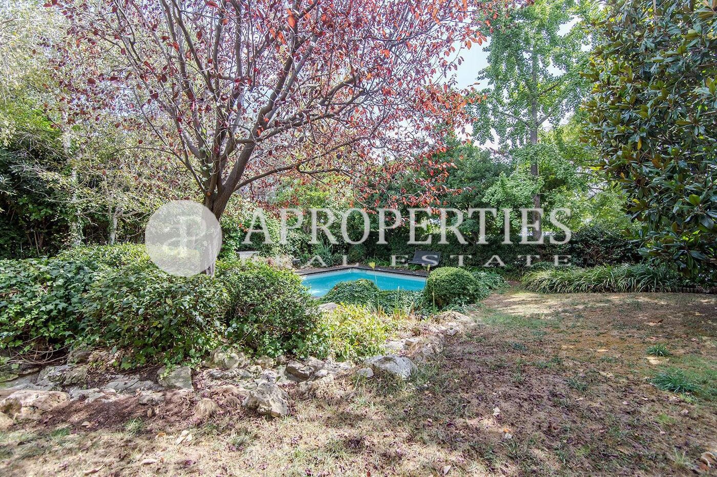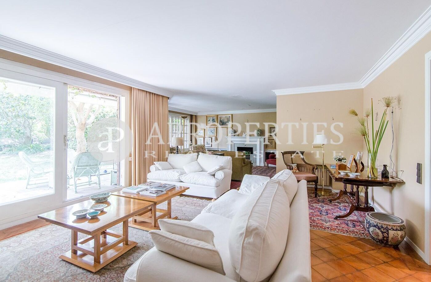 En la zona de La Miranda, justo al lado del Colegio Alemán, en un conjunto residencial de seis viviendas, zona muy tranquila, encontramos esta casa adosada de 520m2 con un gran jardín con piscina de 150m2. Se distribuye en dos plantas, más una buhardilla con una cocina independiente para separar la zona como apartamento. La planta baja cuenta con un gran salón con chimenea y acceso al jardín, un comedor, una cocina office y un aseo de cortesía. En la primera planta, se encuentran tres habitaciones, dos de ellas dobles en suite, y una de las habitaciones se puede dividir en dos. El sótano cuenta con bodega y parking con capacidad para tres o cuatro coches. Una casa muy luminosa, ideal para familias.