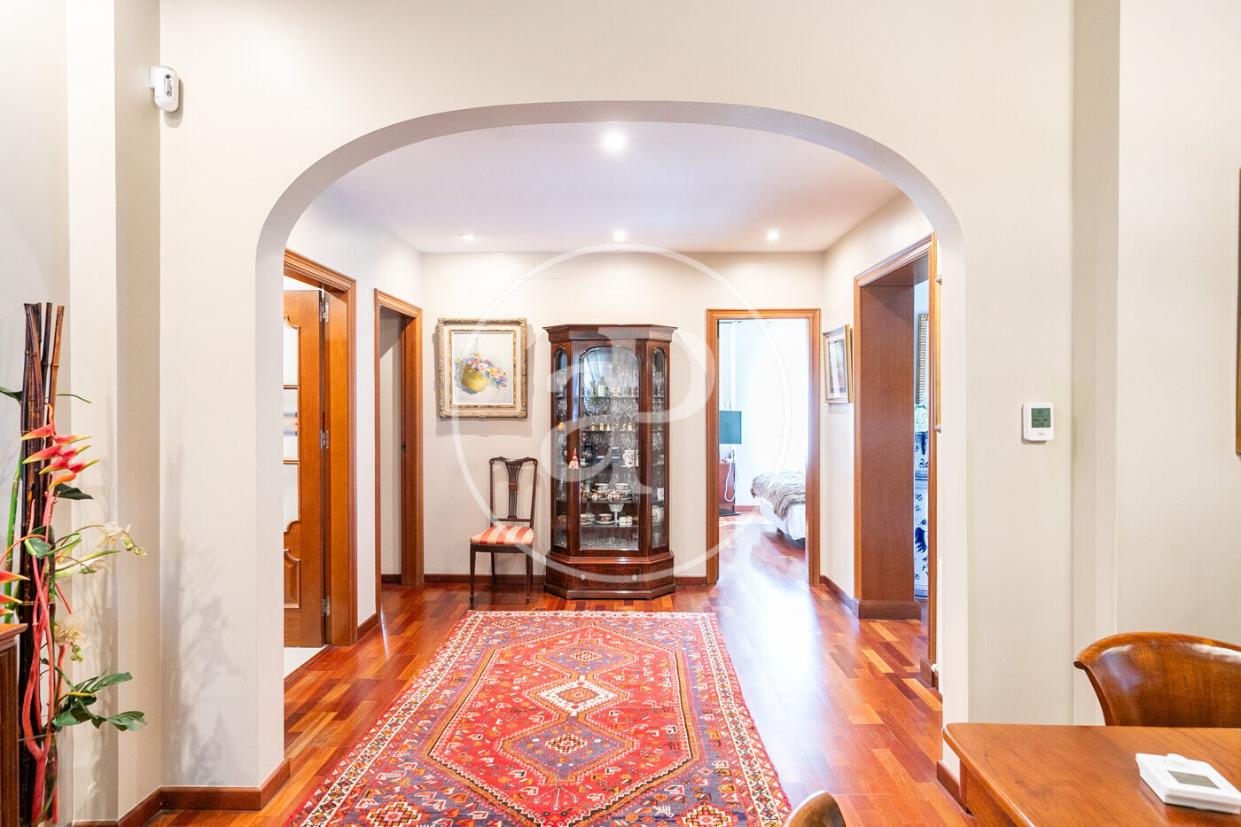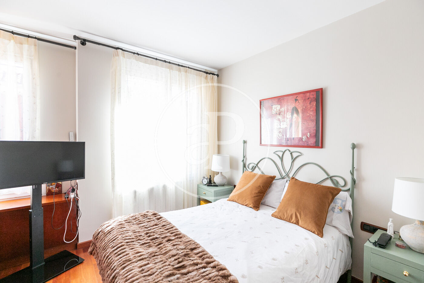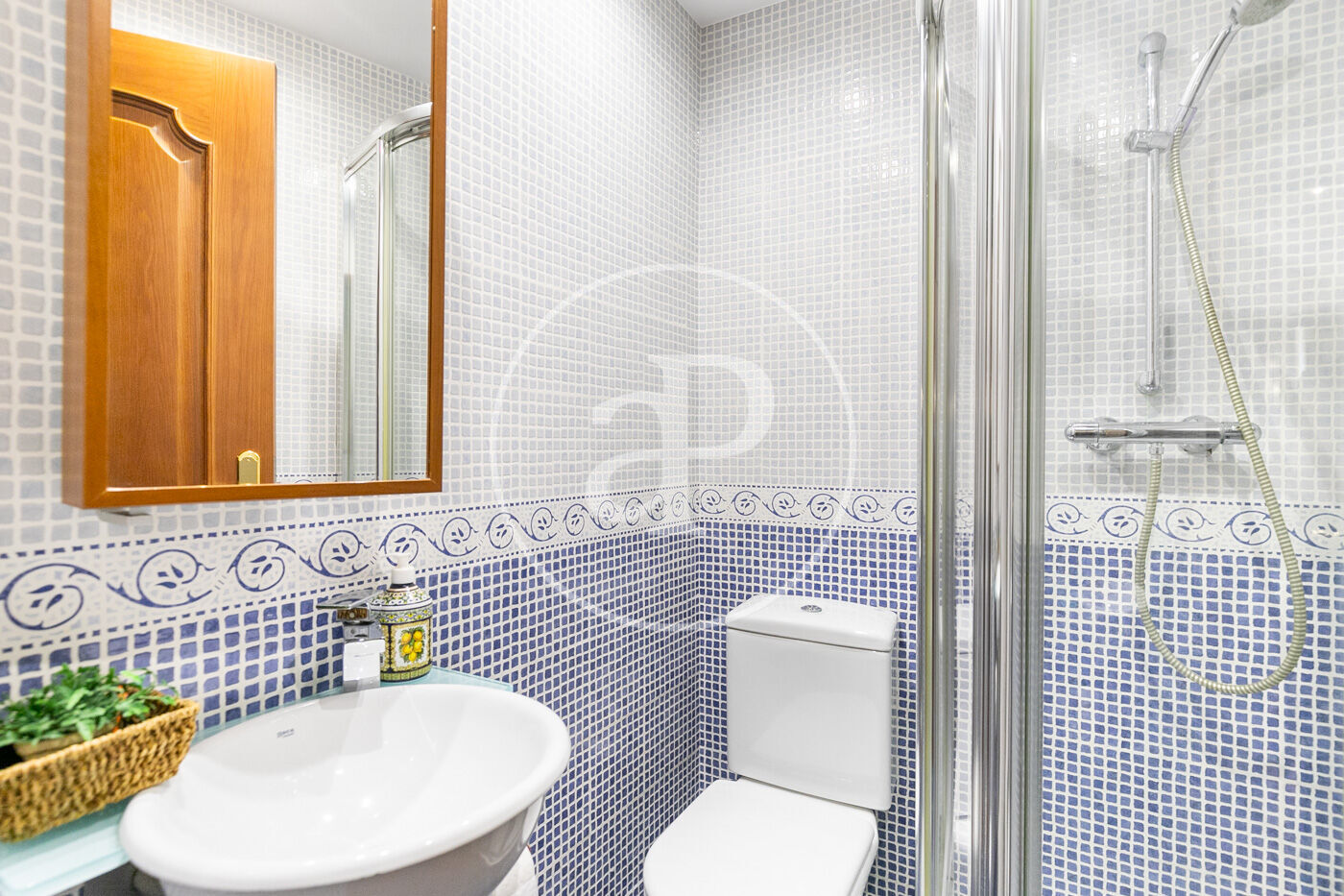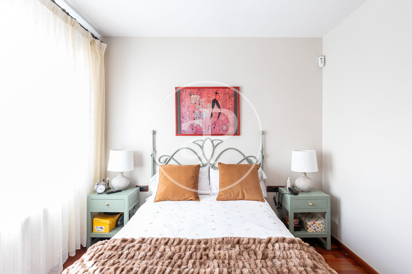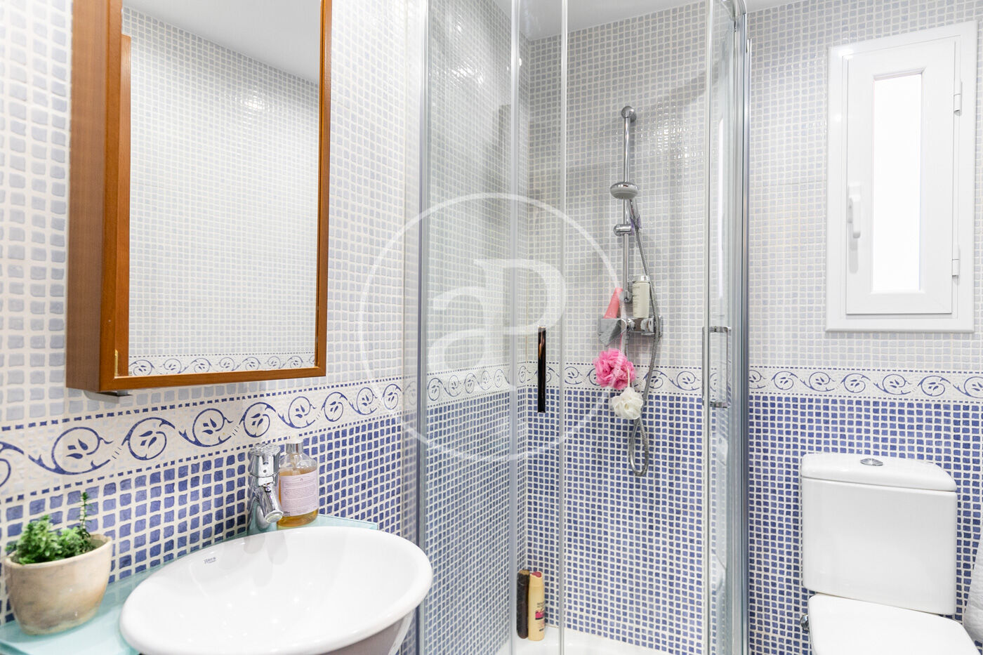 En la planta de acceso la casa cuenta con un salón-comedor orientado hacia el sur y abuhardillado con grandes vigas de hierro recubiertas con madera que le otorgan personalidad y que dejan pasar la luz y dan mucha amplitud. Tenemos acceso a una amplísima terraza, en la que se pueden hacer múltiples proyectos, en función de las necesidades, desde un solárium, que es como está actualmente, donde pueden comer muchos comensales, hasta una zona ajardinada o, si se desea realizar un estudio. En la planta superior encontramos tres habitaciones exteriores, dos de ellas en suite. La cocina, amplia y con mucha zona de almacenaje, es un punto de encuentro excelente, muy cómoda y con salida directa a donde está la barbacoa.