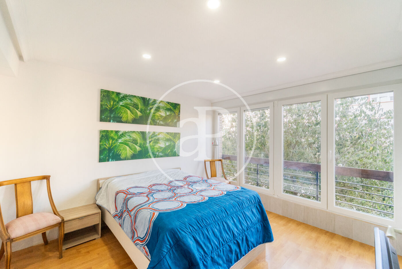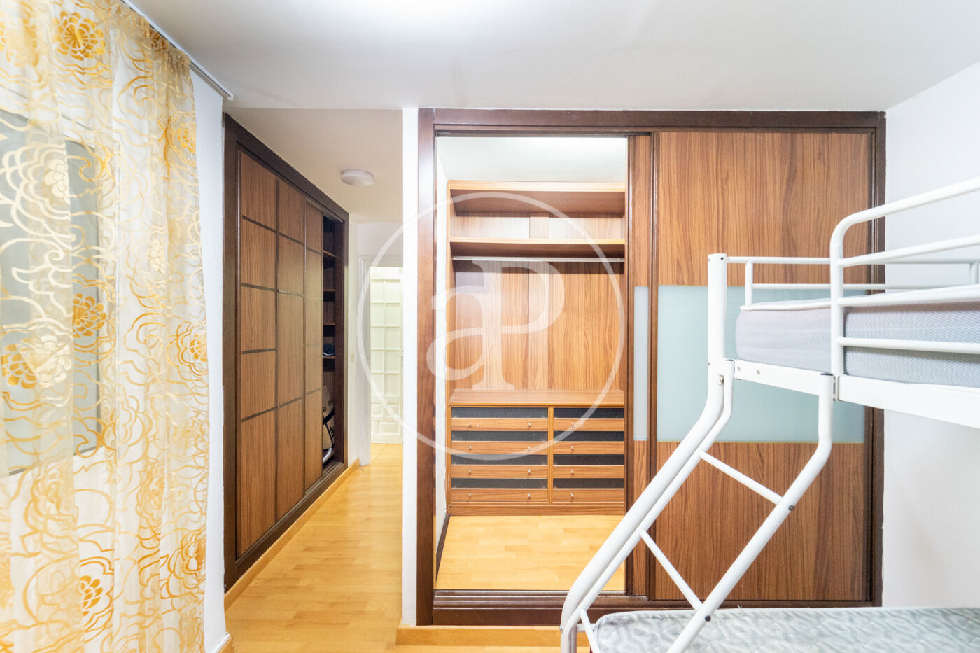Le logement, situé au premier étage avec ascenseur, dispose de 68 m² construits, soigneusement agencés pour maximiser chaque espace. Il comprend deux chambres, l’une avec placard intégré ; une salle de bain complète ; et un salon accueillant avec accès direct à un balcon extérieur offrant une vue dégagée sur l’environnement urbain et l’Auditorium.