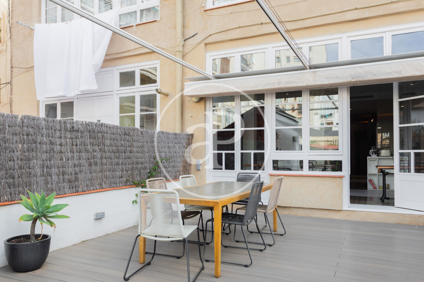 AProperties Real Estate présente en exclusivité ce magnifique appartement de 99 m², situé dans l’un des quartiers les plus dynamiques et les mieux connectés de Valence : le quartier de Monteolivete, à seulement quelques minutes à pied du célèbre quartier de Ruzafa, l’un des centres culturels et gastronomiques les plus animés de la ville. Vous pourrez également profiter de deux des principaux poumons verts de Valence —les Jardins du Turia et le Parc Gulliver— à seulement 15 minutes de marche. Un emplacement idéal pour ceux qui souhaitent vivre entourés de services, d’espaces verts, de loisirs et d’excellentes connexions. Le logement est en très bon état, prêt à emménager, et se distingue par sa luminosité ainsi que par sa superbe ventilation croisée grâce à ses deux balcons : l’un donnant sur la rue, parfait pour profiter de l’ambiance urbaine, et l’autre orienté vers la cour intérieure, idéal pour des moments de tranquillité et de lumière naturelle. En entrant, on découvre un salon-salle à manger spacieux et chaleureux, un espace avec une personnalité unique grâce à son plafond haut avec poutres en bois apparentes, qui apportent du caractère, de la chaleur et une touche méditerranéenne rarement présente dans les logements modernes. Cet espace ouvert et lumineux invite autant à la détente qu’à la convivialité, offrant de multiples possibilités d’aménagement. L’appartement dispose de deux chambres doubles, toutes deux équipées de grands placards intégrés du sol au plafond, garantissant une excellente capacité de rangement sans sacrifier l’espace. La chambre principale possède une salle de bains privative, offrant confort et intimité. La seconde salle de bains, complète, dessert le reste du logement. La cuisine, entièrement équipée, est pratique et fonctionnelle. Elle dispose également d’un accès direct à l’un des balcons, un détail qui apporte lumière naturelle et facilite l’aération, ou même la possibilité de profiter d’un petit-déjeuner en plein air. Côté prestations, le logement est équipé de chauffage par radiateurs, idéal pour les mois les plus froids, et de climatisation, garantissant un confort optimal tout au long de l’année. Sa distribution, avec des pièces bien proportionnées et sans longs couloirs, optimise chaque mètre carré et offre une sensation d’espace et de bien-être dans toutes les zones. L’immeuble se trouve dans un environnement doté de nombreux services : supermarchés, centres sportifs, écoles, transports publics, zones de loisirs et de restauration, ainsi qu’un accès rapide aux grandes avenues de la ville. Sa proximité avec Ruzafa fait de ce logement une option parfaite tant pour ceux qui souhaitent vivre dans un quartier dynamique sur le plan culturel et gastronomique que pour les investisseurs recherchant une forte demande locative. En résumé, cet appartement représente une magnifique opportunité pour ceux qui apprécient le confort, la lumière naturelle, le charme architectural et un emplacement stratégique à Valence. Un foyer idéal pour les couples, les familles ou les professionnels souhaitant profiter d’un logement avec personnalité dans l’un des quartiers les plus prometteurs de la ville. Si vous souhaitez le visiter ou obtenir plus d’informations, n’hésitez pas à nous contacter. Nous serons ravis de vous aider.