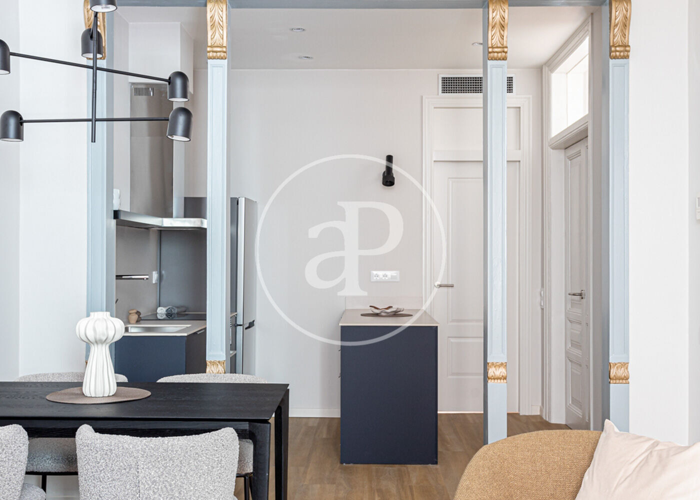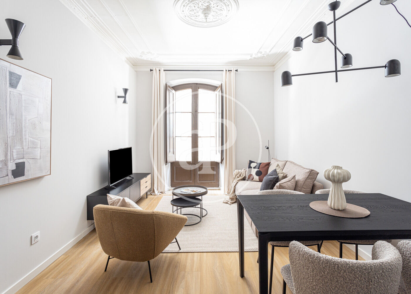 APPARTEMENT UNE CHAMBRE STYLE LOFT RÉCEMMENT RÉNOVÉ Appartement d’une chambre de style loft récemment rénové, situé en plein centre-ville, à quelques mètres de la promenade maritime et du Paseo del Borne. Entouré de tous types de commerces, centres de loisirs, moyens de transport et points d’intérêt touristiques et culturels, cet appartement exclusif rénové allie un style moderne à une touche industrielle, tout en conservant les éléments originaux du logement. En entrant, le hall donne accès à un couloir menant à la pièce principale avec une cuisine américaine équipée : plaque et four électriques, réfrigérateur et lave-vaisselle. Le salon dispose d’un balcon-galerie avec vue sur un jardin intérieur. En continuant le couloir vers l’arrière de l’immeuble, on trouve la chambre double avec fenêtre et, à sa gauche, la salle de bain complète avec douche et un petit espace buanderie avec lave-linge. L’ensemble du logement présente un mélange de sols différents — bois, grès et carreaux hydrauliques d’origine restaurés —, des murs blancs, des plafonds traditionnels avec poutres en bois, des portes d’époque restaurées, des radiateurs électriques dans toutes les pièces et des ventilateurs de plafond. Les charges de copropriété, le Wifi et la taxe foncière (IBI) sont inclus dans le prix. Disponible à partir du 3 décembre 2025, uniquement pour une longue durée. Vous imaginez vivre ici ?