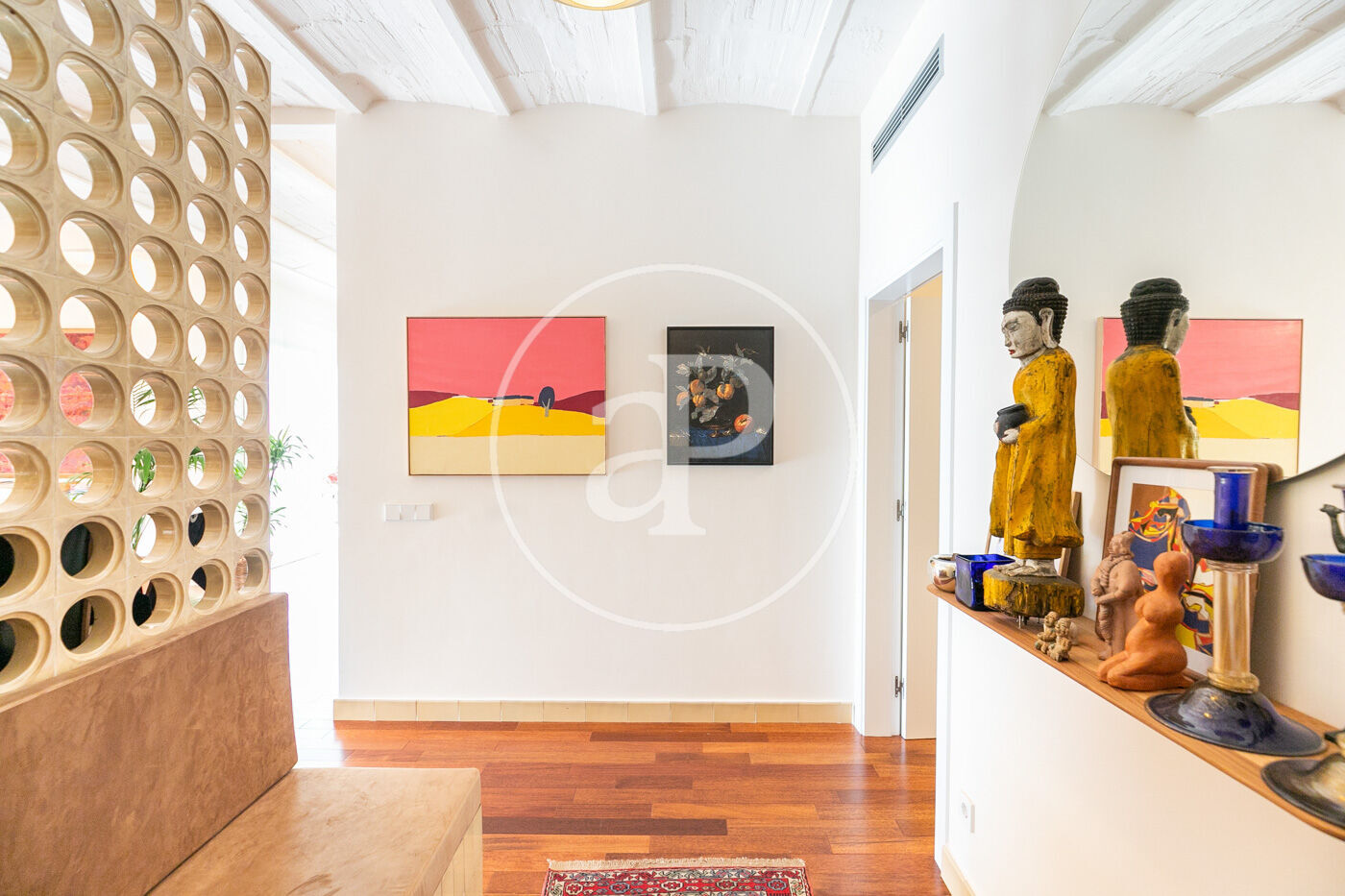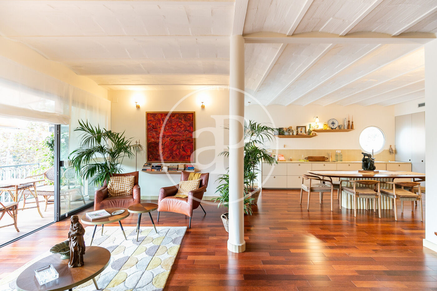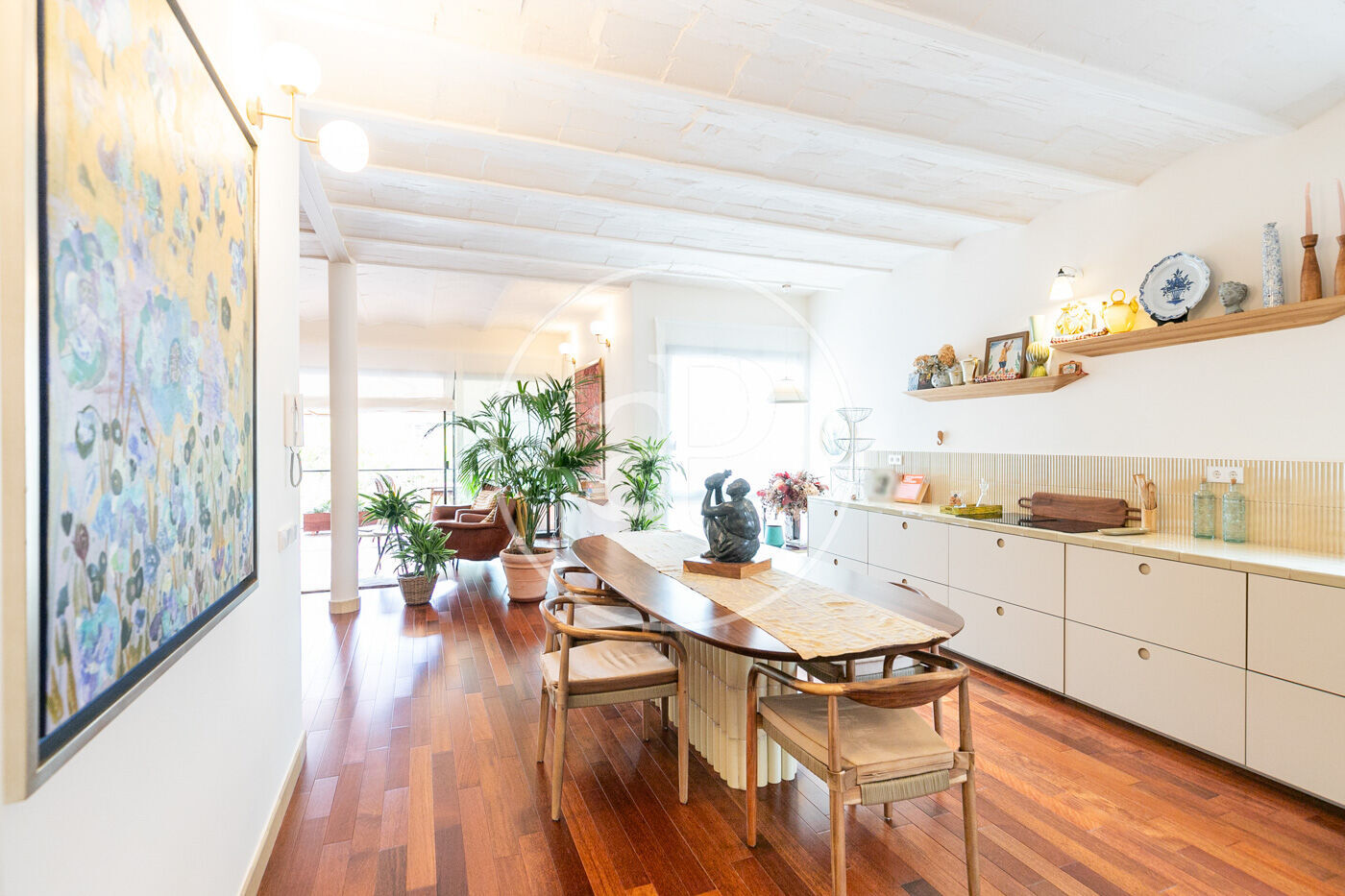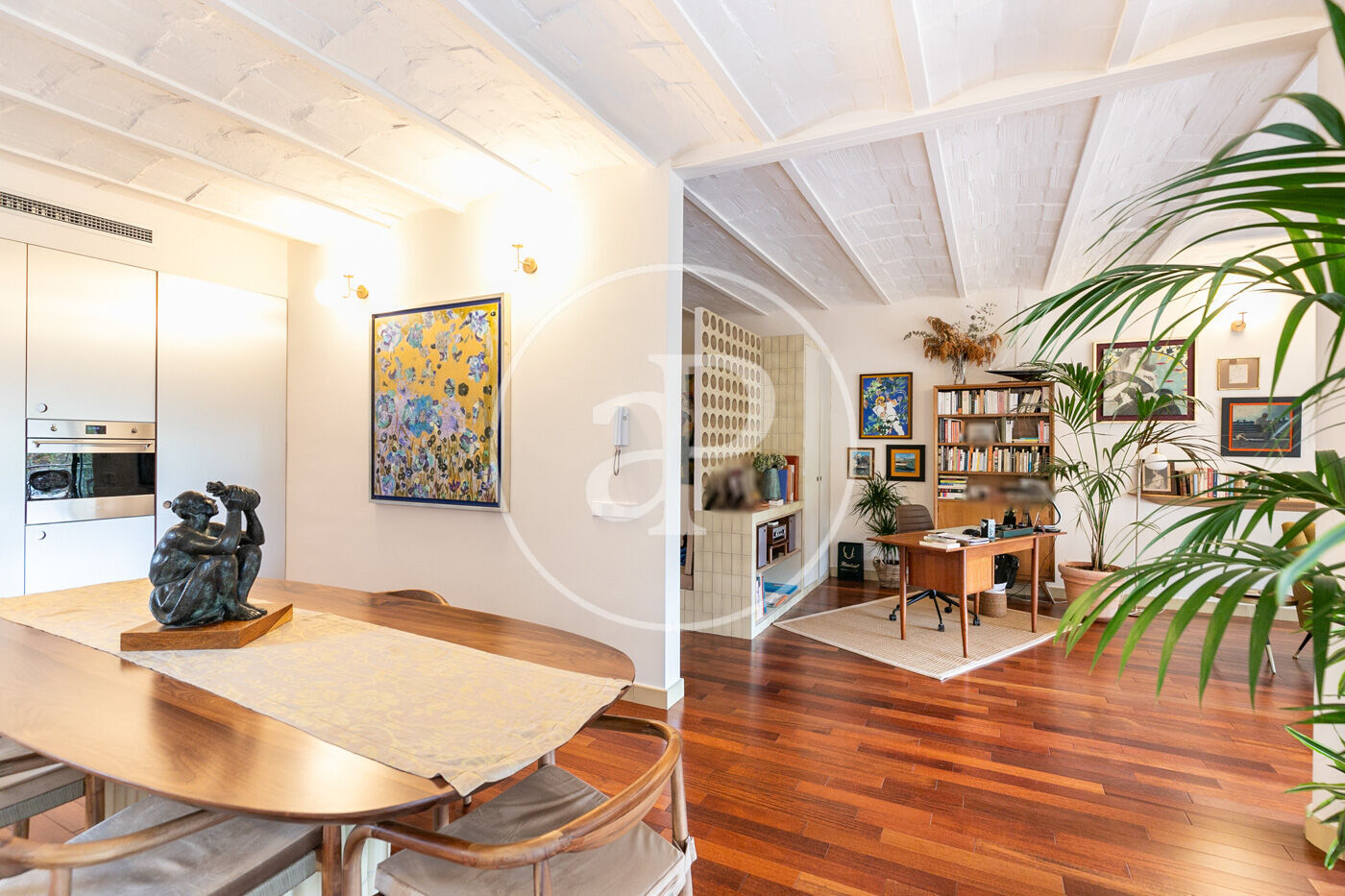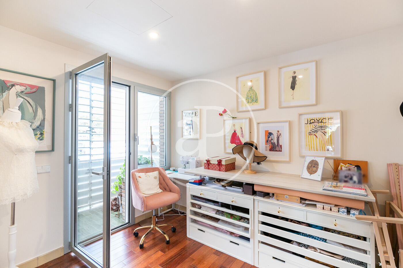 Spectaculaire duplex de 85 m² au style contemporain, très lumineux grâce à ses hauts plafonds, une excellente distribution et des finitions de première qualité dans le quartier de Sarrià - Sant Gervasi, l’un des meilleurs quartiers de Barcelone, connu pour sa qualité de vie, son ambiance familiale et ses vastes espaces verts, à proximité de tous les commerces et des meilleures boutiques de la ville.  Au premier étage se trouve l’espace jour. La cuisine est pratique et confortable, avec un îlot et des tabourets pour optimiser l’espace, et une plaque vitrocéramique de dernière génération. On accède ensuite à l’espace salon-salle à manger, où la lumière pénètre par ses grandes fenêtres hautes tout au long du logement. On y trouve un espace lounge design et une salle de bains complète avec douche à l’italienne au premier étage.  L’espace suivant est un bureau avec table, chaise et armoires pour travailler ou étudier en toute intimité, avec même la possibilité de créer une troisième chambre. On accède au deuxième étage depuis cet espace bureau avec des armoires encastrées de haute qualité. Au deuxième étage de ce logement design, un espace d’accueil avec rangements et une décoration soignée, suivi de la suite parentale ouverte, avec armoires encastrées et sa salle de bains complète avec douche haut de gamme, avec possibilité de créer une autre chambre. L’appartement dispose de la climatisation, du chauffage, d’un dressing et d’une grande buanderie indépendante.  Ce logement bénéficie d’un emplacement privilégié, avec un accès direct aux principaux axes de la ville, aux gares et stations de métro, dans un environnement calme et résidentiel, près du parc Moragas et de Turó Park.  Ce quartier est très résidentiel et paisible, idéal pour les familles et les professionnels recherchant tranquillité et sécurité. Il se distingue par ses immeubles élégants aux finitions de qualité, dont beaucoup possèdent une histoire et un design architectural. Dans les environs, vous trouverez tous les services essentiels : supermarchés, pharmacies, écoles, hôpitaux et de magnifiques restaurants avec terrasses agréables, ainsi que de grands espaces verts idéaux pour se promener, faire des activités en plein air et se déconnecter du tumulte de la ville.