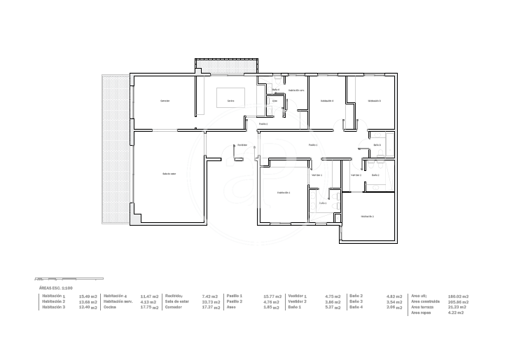 La propriété dispose de 5 chambres, 4 salles de bain, cheminée, place de parking, climatisation, armoires intégrées, buanderie, balcon, chauffage, concierge et salle de stockage.