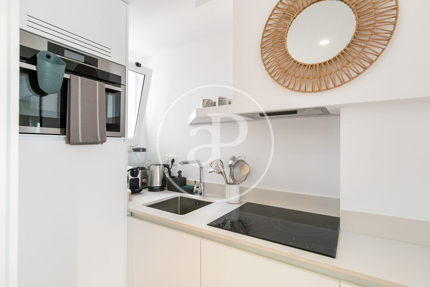 Charmant penthouse entièrement rénové il y a quatre ans avec terrasse privée, situé à côté du célèbre quartier de Santa Catalina. La propriété est répartie sur deux étages. Le premier comprend deux chambres, deux salles de bain complètes, un salon et une cuisine ouverte de style contemporain, entièrement équipée. Vous adorerez les hauts plafonds avec poutres apparentes qui offrent une sensation d’espace, et il est possible de créer une mezzanine pour ajouter une troisième chambre ou un espace de rangement. Les poutres en bois et les volets confèrent à l’ensemble un caractère authentique. Il est important de souligner que le logement est équipé de la climatisation par conduits. Un escalier mène à une terrasse privée de 14 m², idéale pour profiter des longues soirées d’été. Son Espanyolet est un quartier résidentiel calme, accueillant et plein de charme, situé dans la partie ouest de Palma, juste à côté de Santa Catalina et à proximité du centre-ville. Malgré sa proximité avec les zones touristiques, il conserve une atmosphère authentique et familiale, ce qui en fait l’un des quartiers les plus recherchés pour vivre à Palma. Excellente connexion aux transports en commun et accès rapide à la Via de Cintura (Ma-20). Le quartier est bien desservi par les hôpitaux, les écoles internationales, les supermarchés et les services essentiels. Les commerces de quartier, boulangeries, primeurs et petits bars traditionnels cohabitent avec des cafés modernes, des studios de yoga et des centres de bien-être. À deux pas du marché de Santa Catalina, véritable centre de loisirs et de gastronomie, ainsi que d’écoles publiques et privées, de cliniques médicales et d’hôpitaux. Ne manquez pas l’opportunité de vivre dans un logement plein de style et de caractère !