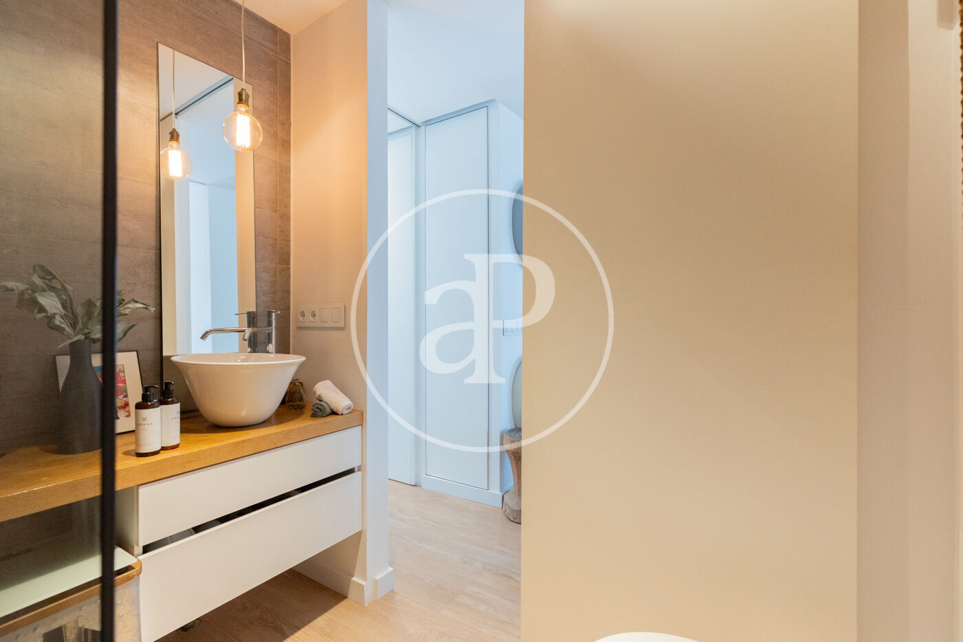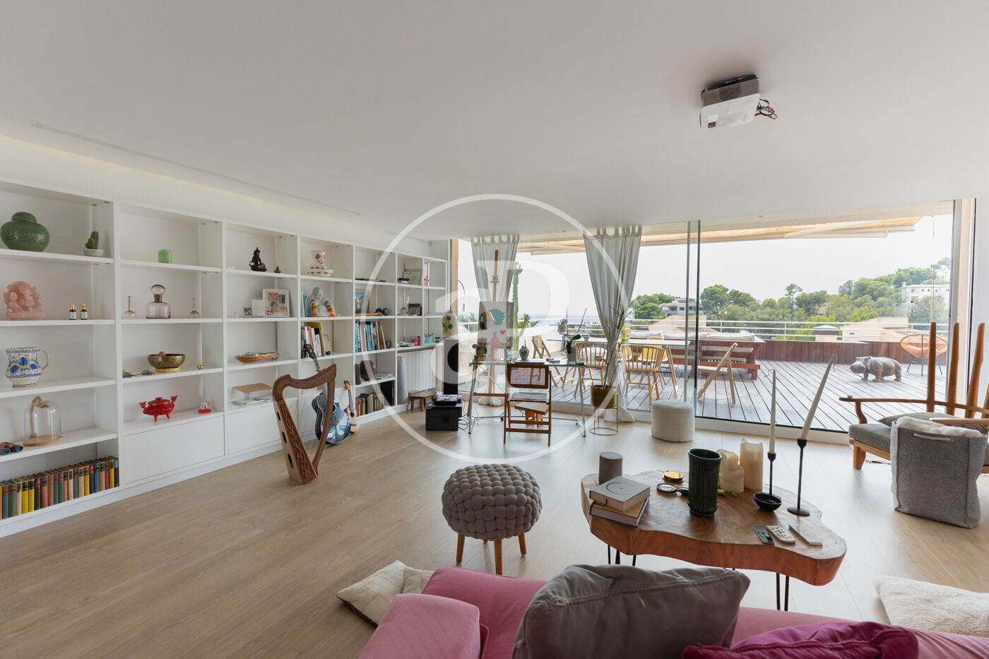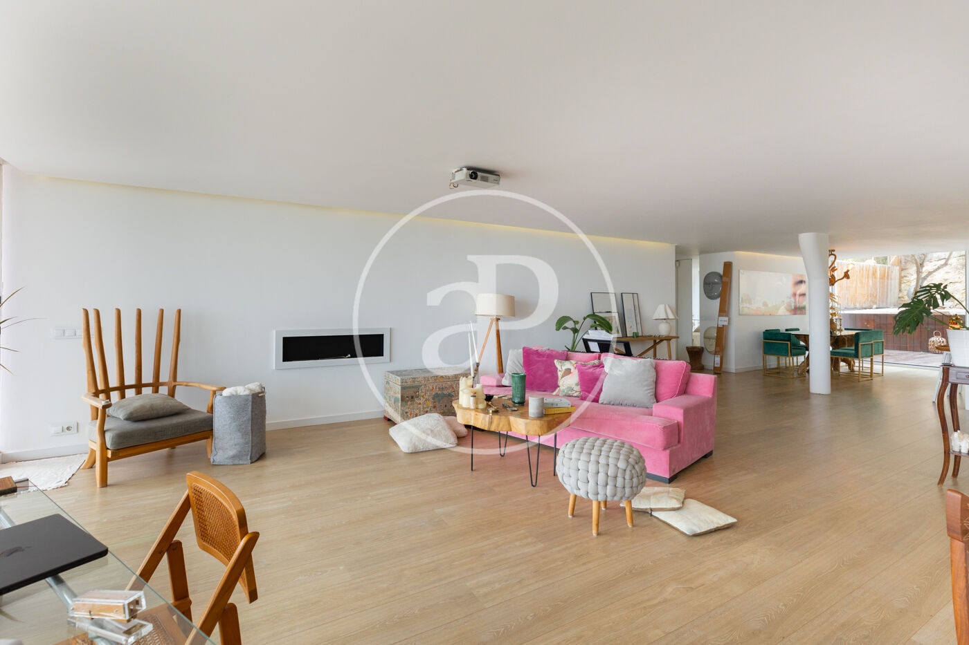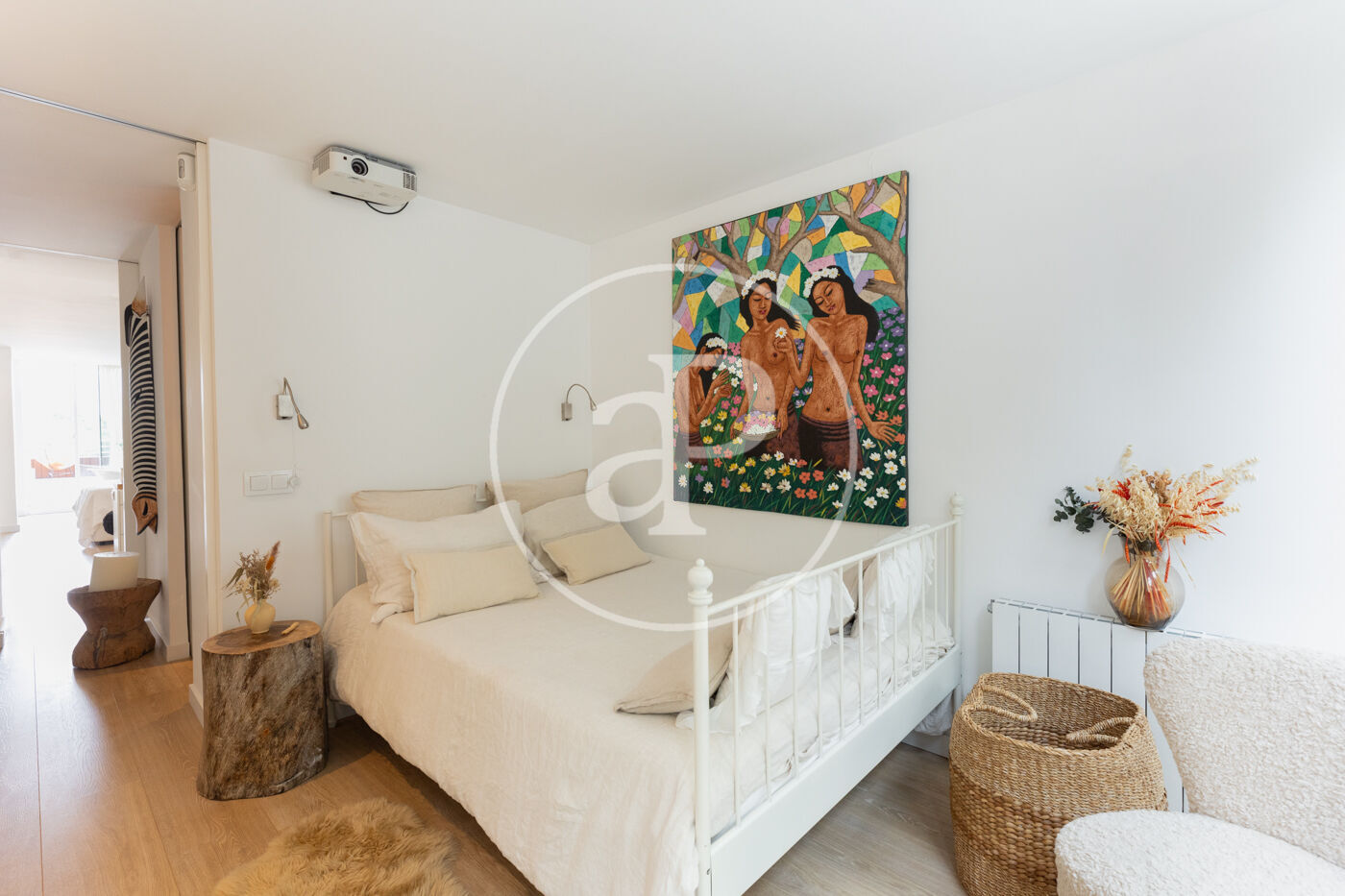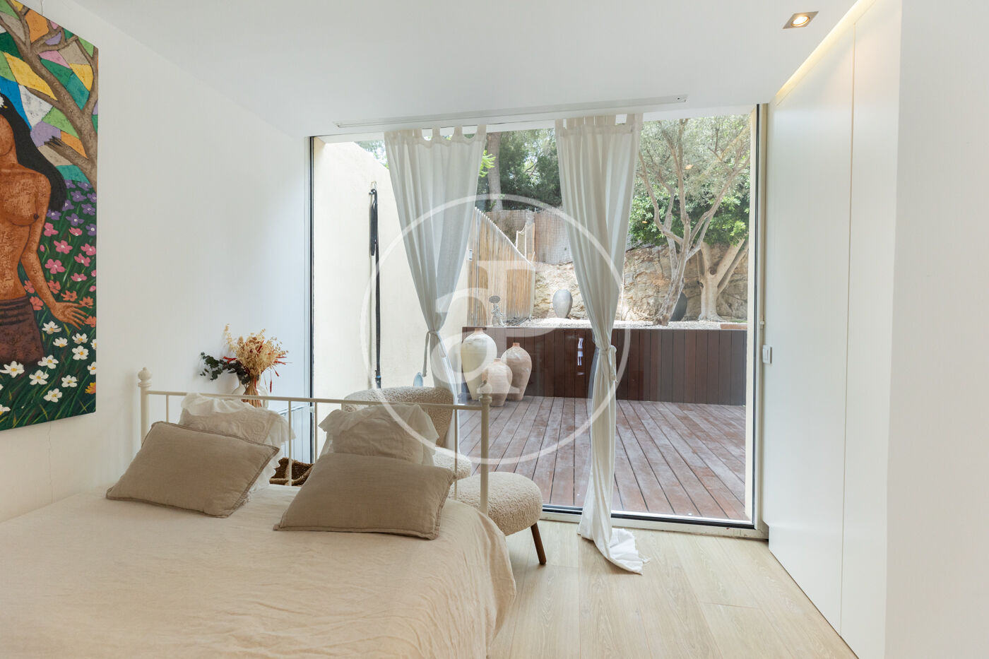 Depuis la porte d'entrée de la propriété, on accède à un spacieux salon-salle à manger décoré avec beaucoup de charme, avec de grandes fenêtres qui donnent accès à la terrasse de 70 m², un espace pour se détendre et profiter du climat méditerranéen avec des canapés pour se reposer. Elle dispose d'une autre grande terrasse arrière idéale pour les barbecues et où se trouve la buanderie. La cuisine, ouverte sur le salon, est grande et spacieuse, elle dispose d'un îlot parfait pour cuisiner confortablement. Elle est meublée et équipée.