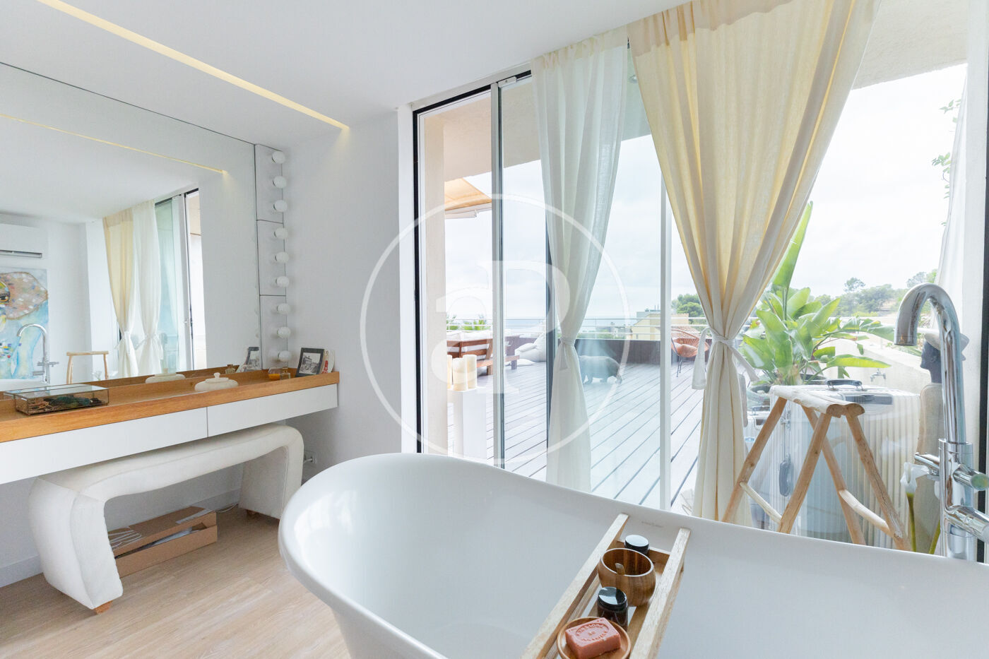 La partie nuit comprend deux chambres doubles spacieuses et lumineuses avec placards et deux salles de bains. La chambre principale dispose d'une salle de bains attenante avec baignoire et douche. Les deux chambres ont accès à la terrasse.