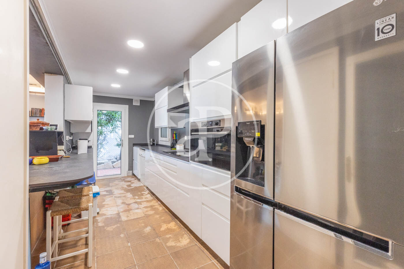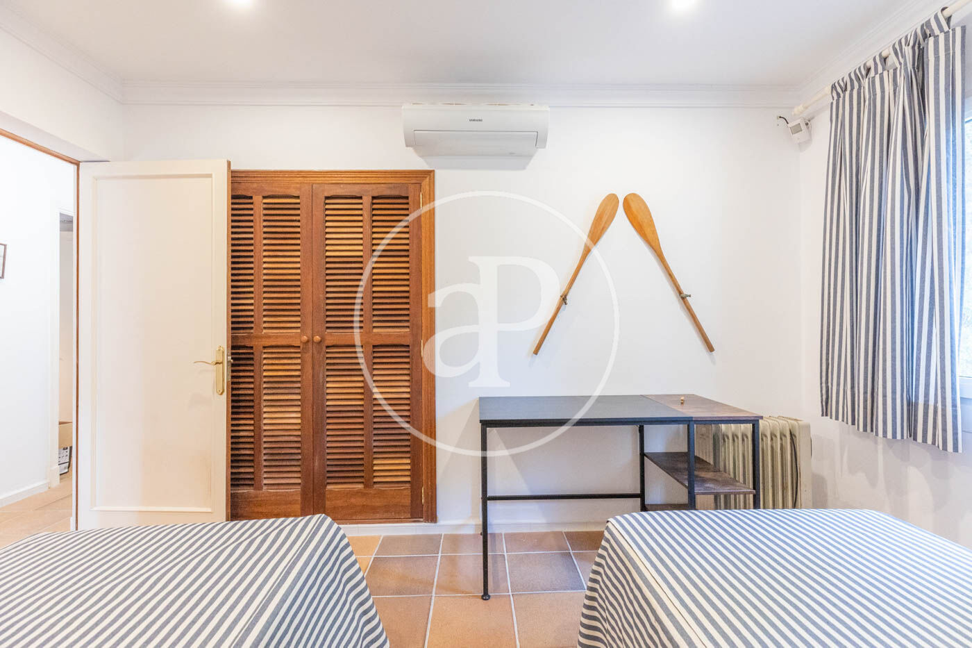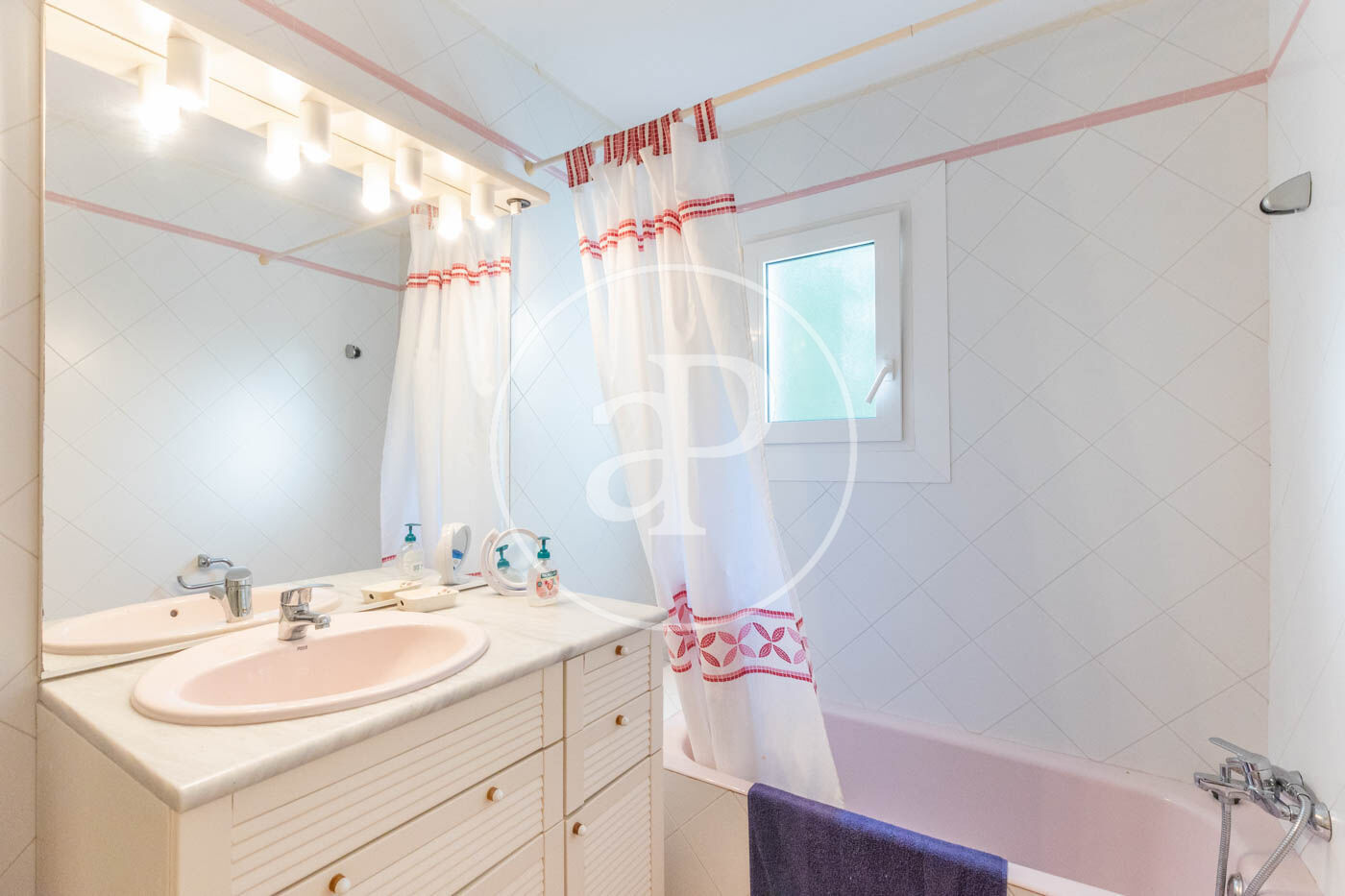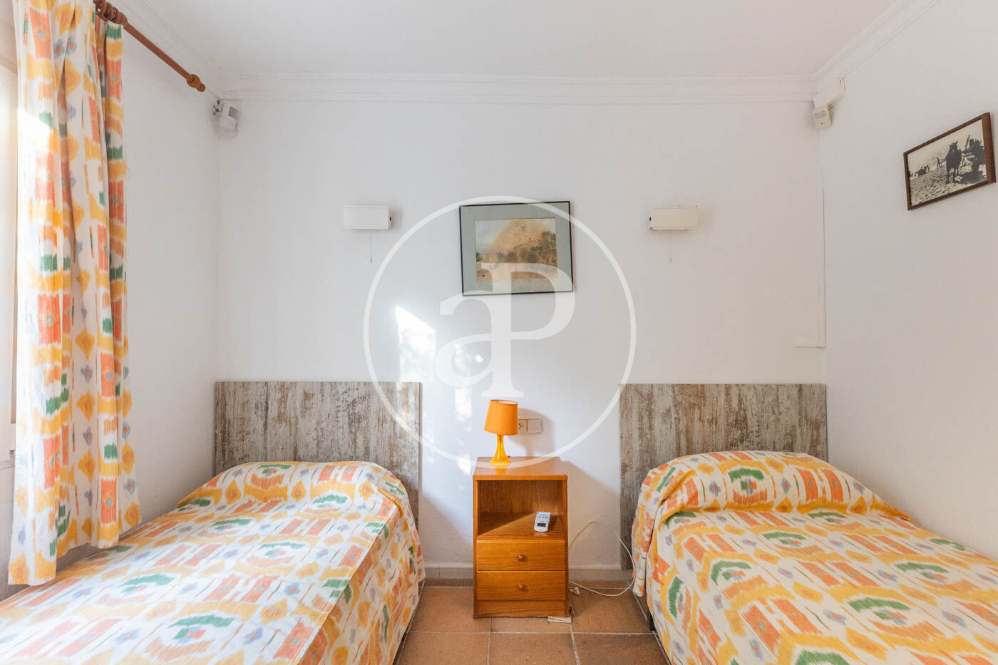 La maison principale dispose de 4 chambres doubles spacieuses, toutes équipées de placards, et de deux salles de bains. La cuisine récemment rénovée est ouverte sur la salle à manger et le salon, où une cheminée apporte une touche chaleureuse pendant les mois les plus frais. De là, on accède au terrain de 568 m² avec piscine, porche couvert et espace barbecue, idéal pour profiter du climat majorquin.