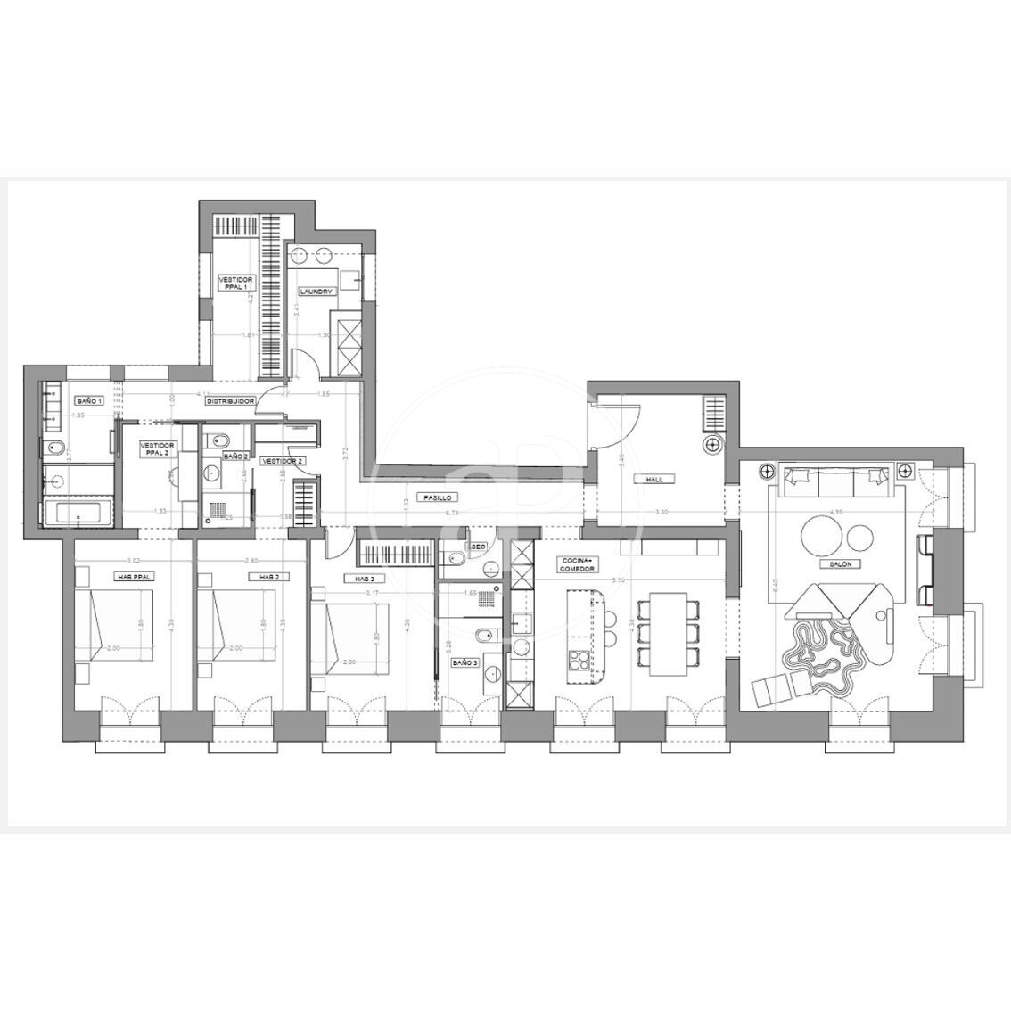 Appartement meublée de 226 m2 avec vues dans la région de Chueca - Justicia, Madrid.
