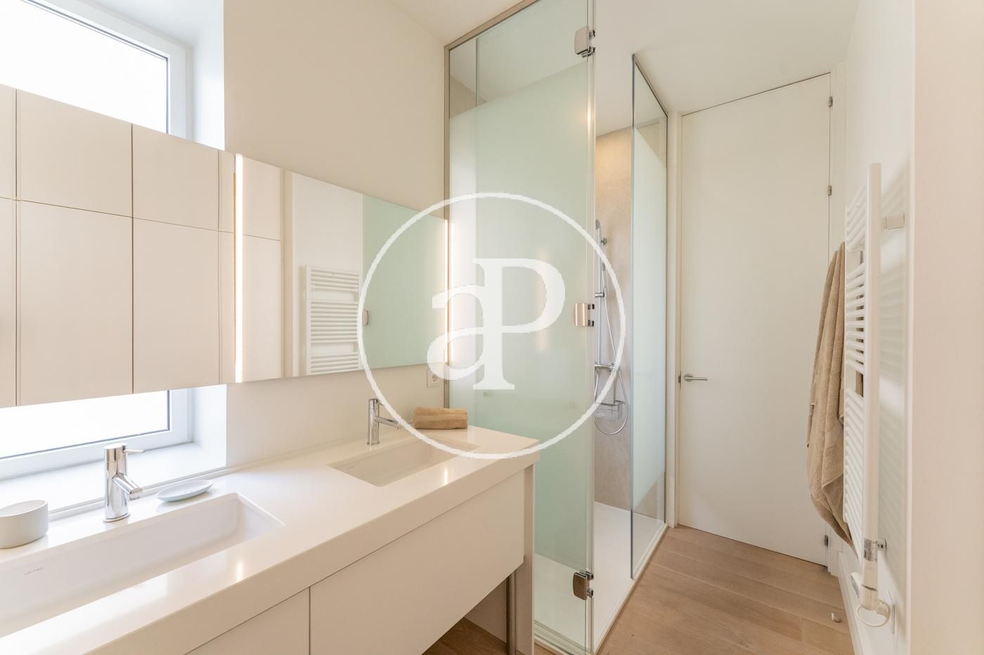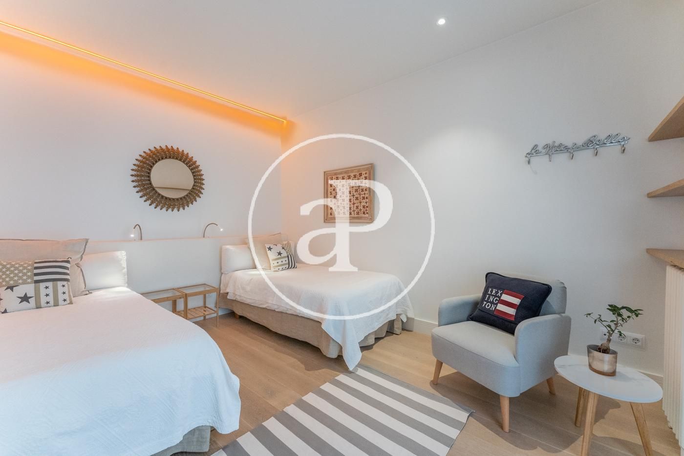 En el barrio de Poblenou, a dos calles de la playa de la Mar Bella, encontramos esta propiedad acabada de reformar y lista para estrenar en una finca racional de 1969, en un segundo real de altura, orientado norte y noreste. El piso dispone de un luminoso salón-comedor con cocina abierta, completamente equipada (horno, inducción, campana empotrada, nevera / congelador y lavavajillas), con salida a balcón. Dos dormitorios, uno doble con armarios empotrados y totalmente exterior y otro individual con venta a patio interior. Un gran baño de 3 piezas, con encimera de roble francés natural y ducha a ras de suelo con mampara. Y una zona de aguas independiente con zona para planchar y tender la ropa. En el recibidor hay también un gran armario empotrado. Todas las ventanas son de aluminio con rotura de puente térmico y cristal climalit. Todas las persianas son motorizadas. Iluminación directa e indirecta de leds. Los picaportes de todas las puertas van con imán. Los suelos son de parqué laminado de alta calidad y resistencia y todas las puertas son de madera. Calefacción de gas natural y aire acondicionado frío/calor por conductos. Poblenou, ubicado en el distrito de Sant Martí, ha pasado de ser una zona industrial para convertirse en un barrio de moda, convirtiéndose en el centro de las empresas tecnológicas y en una zona residencial con mucha demanda.