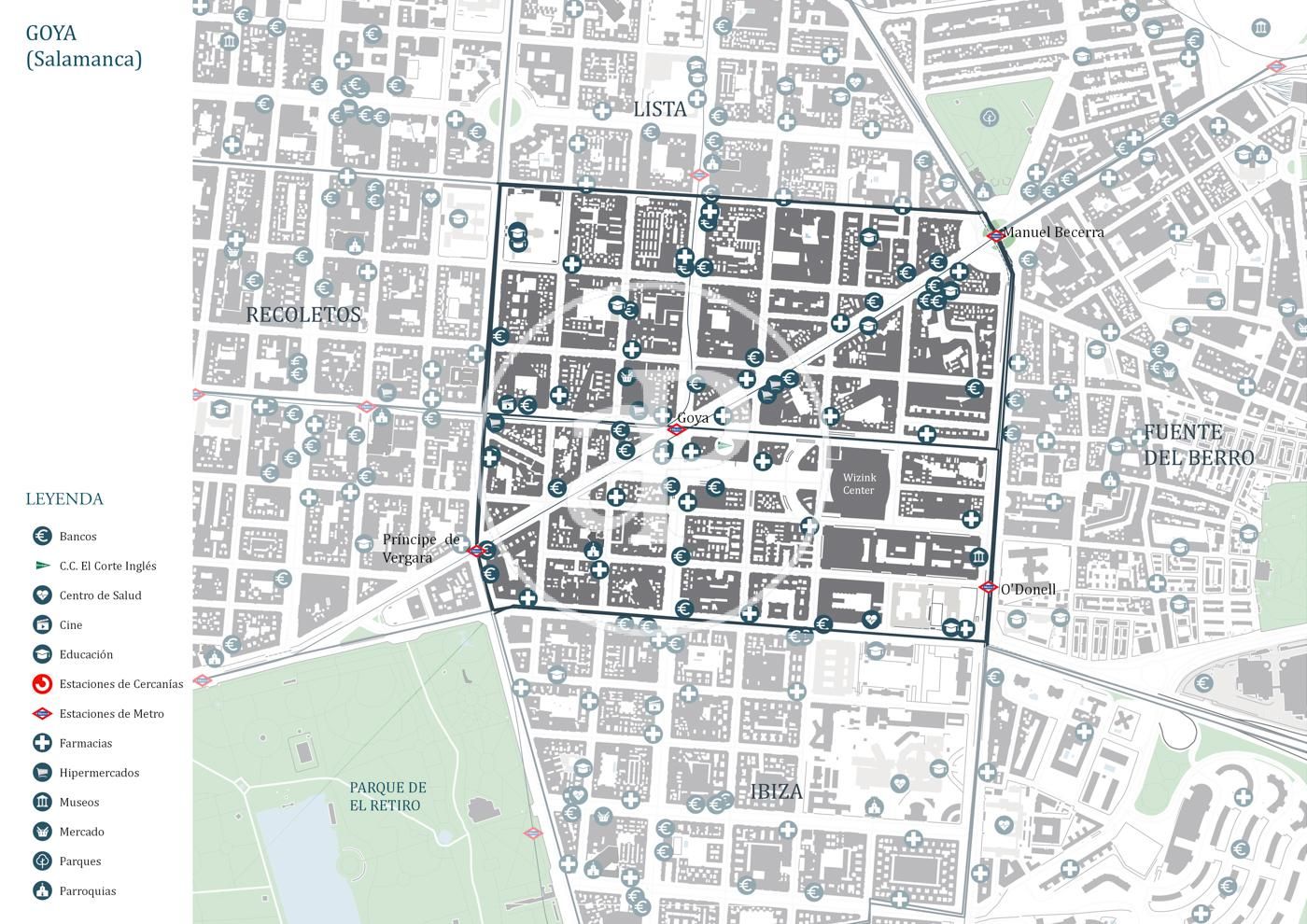 Le district de Goya, situé dans le quartier de Salamanque, à l'est de Madrid, borde, au nord, la rue de Don Ramón de la Cruz; à l'est, avec la rue du docteur Esquerdo; au sud, avec la rue O'Donnell; et à l'ouest, l'avenue de Menéndez Pelayo et la rue du prince de Vergara. Ses deux axes principaux sont la Calle de Alcalá et la Calle de Goya, toutes deux très commerciales et pleines de bars et de restaurants, ainsi que le Palacio de los Deportes, lieu de nombreuses manifestations. Il dispose d'un réseau de transport fantastique et est l'un des meilleurs quartiers de Madrid.