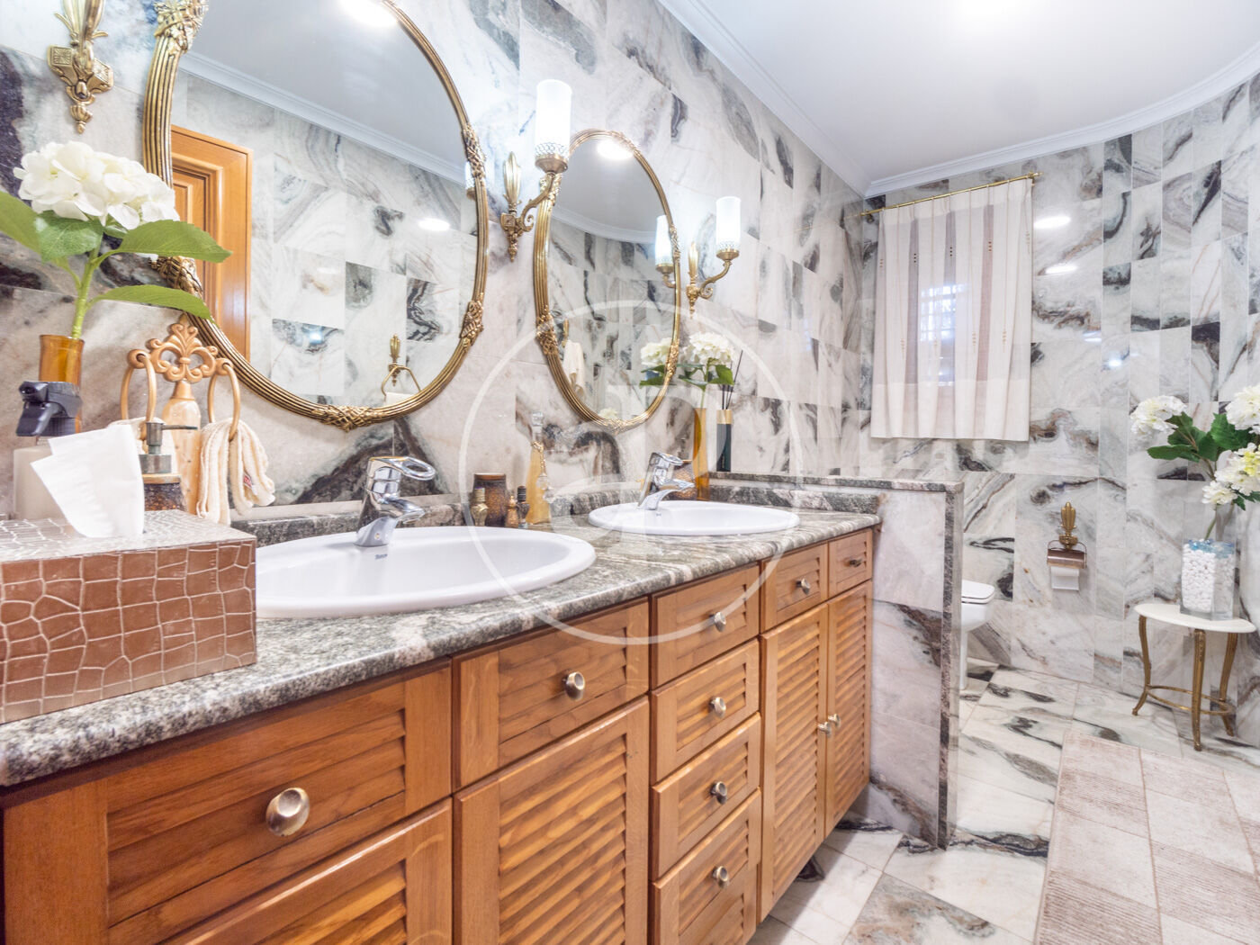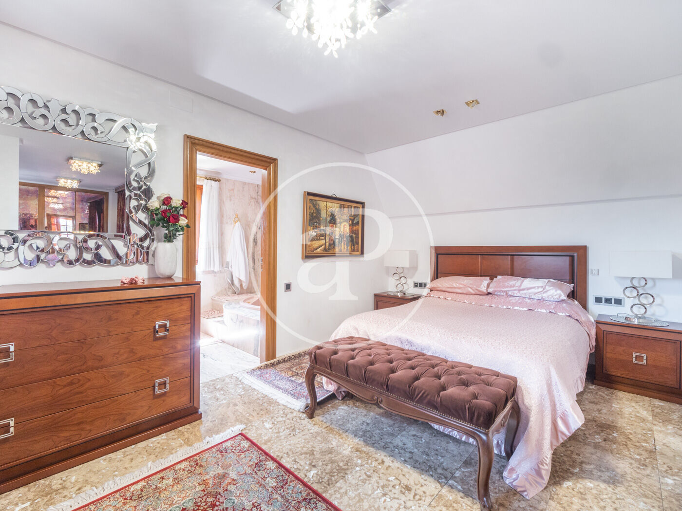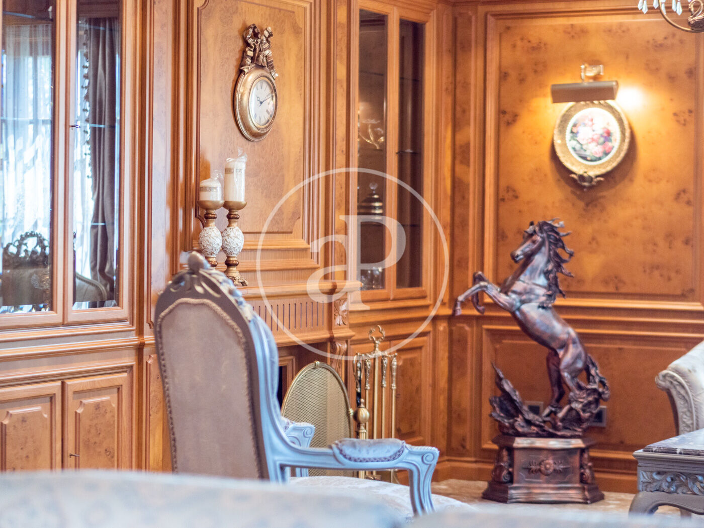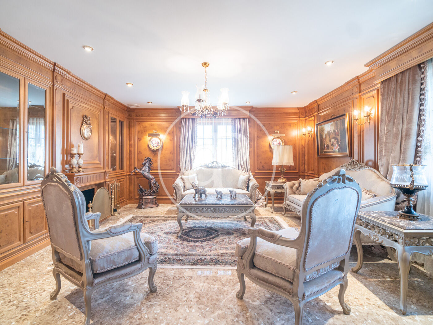 La propriété dispose de 6 chambres, 7 salles de bain, piscine, cheminée, salle de sport, 4 places de parking, climatisation, armoires intégrées, buanderie, balcon, jardin, chauffage, concierge et salle de stockage.