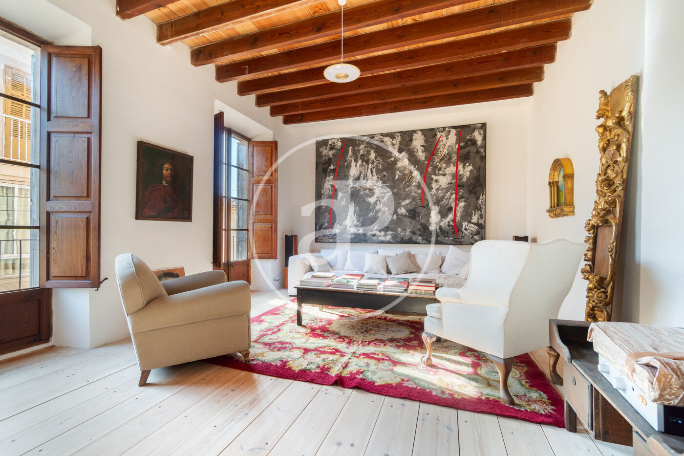Dès l'entrée, vous êtes accueillis par une grande et spacieuse réception, caractérisée par d'imposantes poutres en bois qui courent le long du plafond, créant une atmosphère chaleureuse et accueillante. De là, vous entrez dans un salon-salle à manger lumineux qui se prolonge par une cuisine entièrement équipée, avec une sortie depuis les deux espaces vers un charmant patio intérieur typiquement majorquin, idéal pour profiter des matinées ensoleillées ou des dîners en plein air.