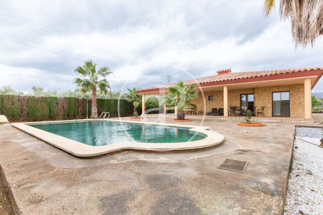 À l'extérieur, la propriété dispose d'une piscine privée d'environ 11x5 mètres, d'une zone couverte près de la piscine avec un four traditionnel et un barbecue, parfait pour les réunions et les célébrations, d'un porche avec auvent pour garer confortablement deux véhicules et d'un portail coulissant motorisé de 6 mètres à l'entrée principale.