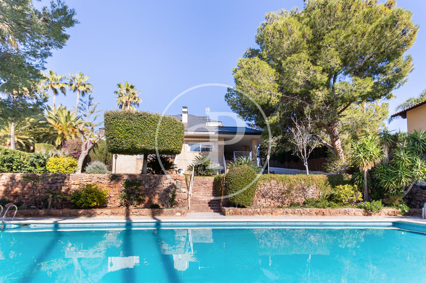 À l’extérieur, la propriété se distingue par une impressionnante piscine de 7 x 17 mètres entourée d’espaces détente. La propriété dispose également d’un grand espace de stationnement, d’un garage fermé pour un véhicule et d’une zone supplémentaire aux multiples usages possibles.