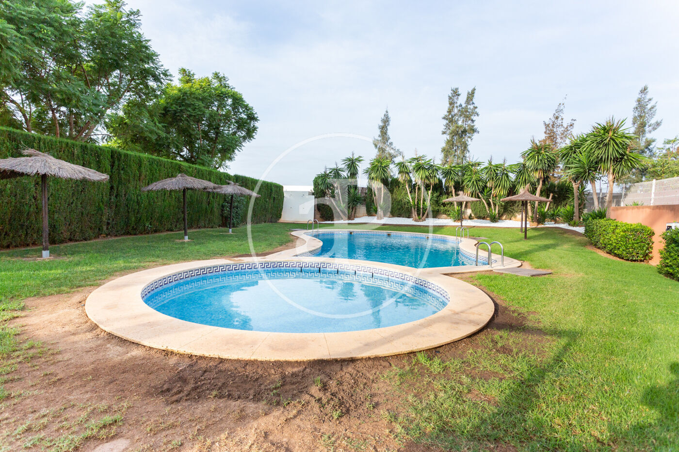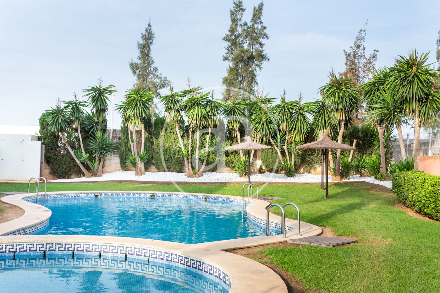 La propriété dispose de 3 chambres, 2 salles de bain, piscine, 1 place de parking, climatisation, armoires intégrées, buanderie, balcon, jardin et chauffage.