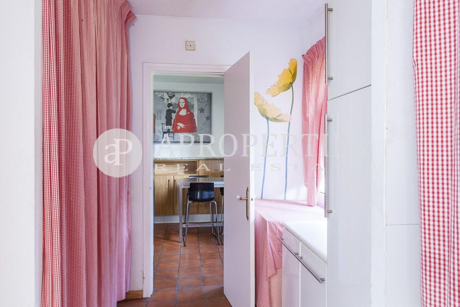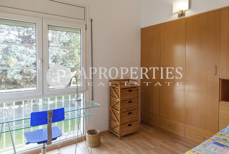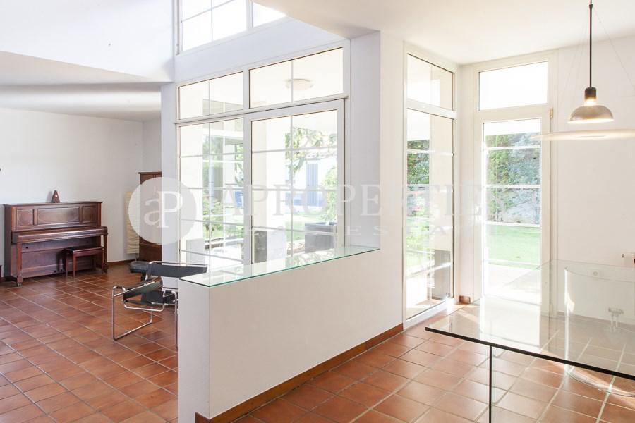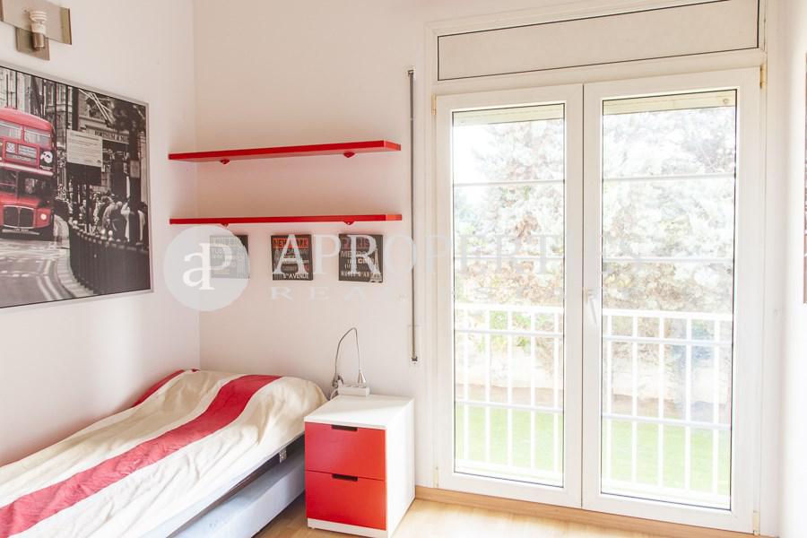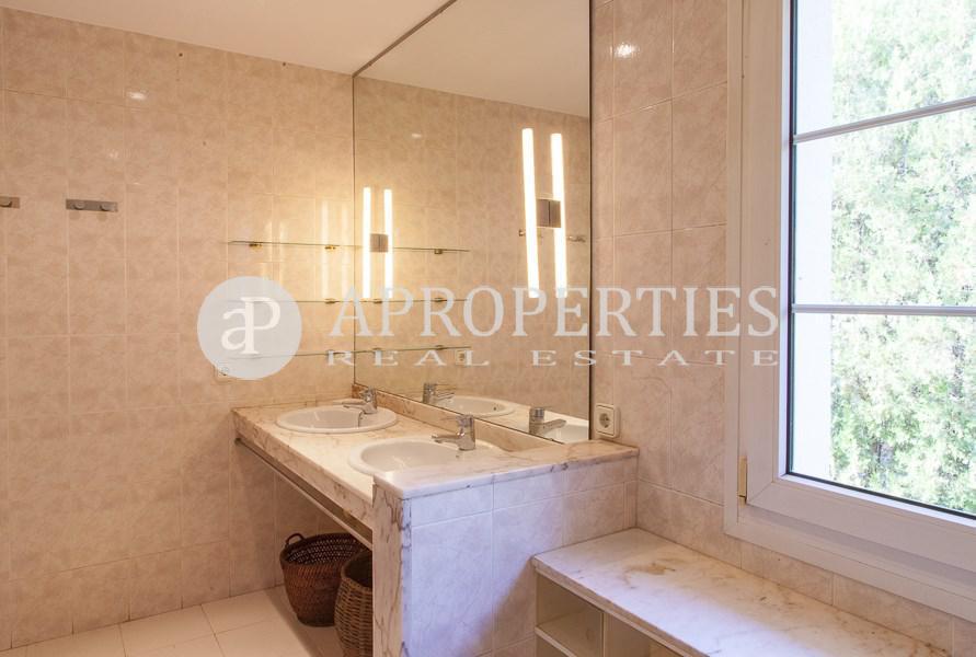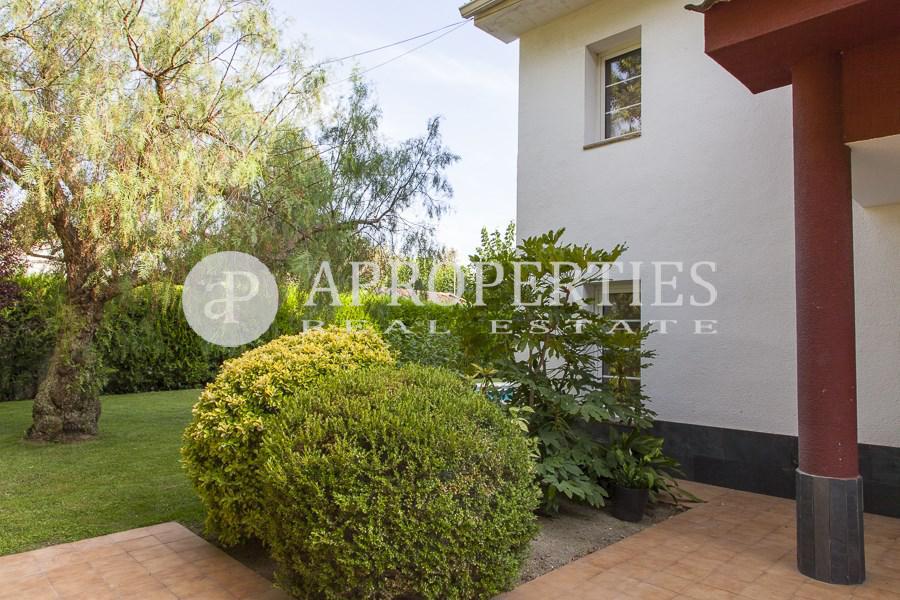 Amplitud de espacios, luminosidad y comodidad es lo que ofrece esta preciosa casa de 400m2 a cuatro vientos rodeada de jardín con piscina privada, zona de sauna/gimnasio, vestuario y aseo. Cuenta con un distribuidor estilo inglés en la planta principal que da acceso a un gran salón-comedor con chimenea a dos niveles y amplios ventanales con vistas al porche y salida al jardín, una suite en planta, un aseo de cortesía, una gran cocina office totalmente equipada, zona de aguas independiente y una habitación de servicio con baño completo. En la segunda planta, una luminosa zona polivalente abierta que da paso a una soleada master suite con armarios, vestidor y cuatro prácticas habitaciones abuhardilladas con armarios y doble altura que comparten un baño. Suelos de gres y madera, carpintería aluminio doble vidrio, calefacción gas, alarma, zona de parking.