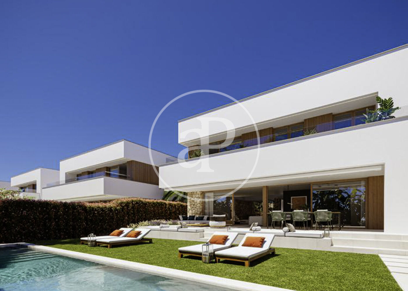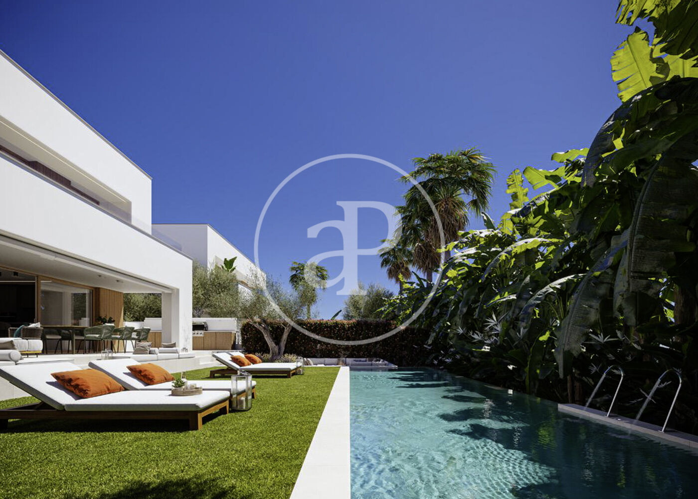 La propriété dispose de 4 chambres, 5 salles de bain, piscine, salle de sport, 5 places de parking, climatisation, armoires intégrées, buanderie, balcon, jardin, chauffage et salle de stockage.