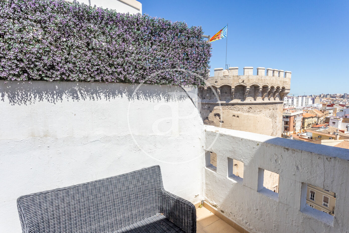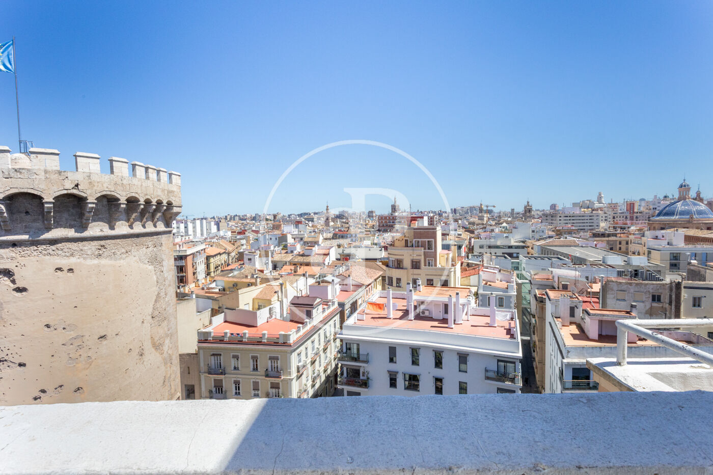 Dans le meilleur quartier de Ciutat Vella, à côté des Torres de Quart, nous trouvons ce spectaculaire penthouse avec deux chambres, deux salles de bains et meublé. Points forts de cette propriété, sa décoration et son mobilier. Il a une terrasse d'une trentaine de mètres, avec vue sur les Torres de Quart et d'où l'on peut voir toute la Ciutat Vella. Son espace est évident lorsque l'on découvre que les deux chambres disponibles dans ce penthouse sont doubles.