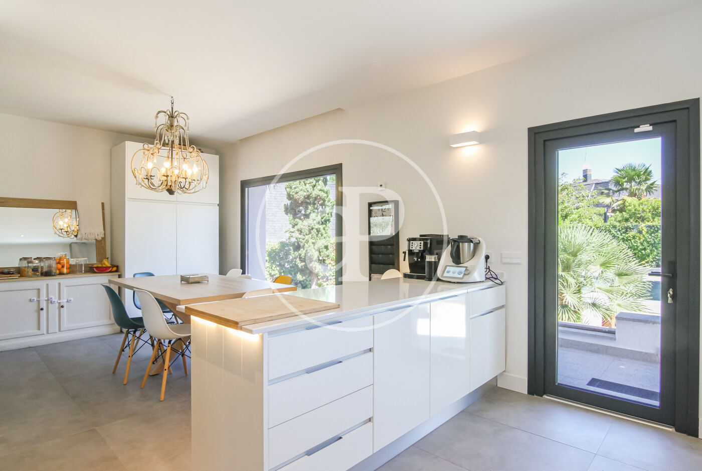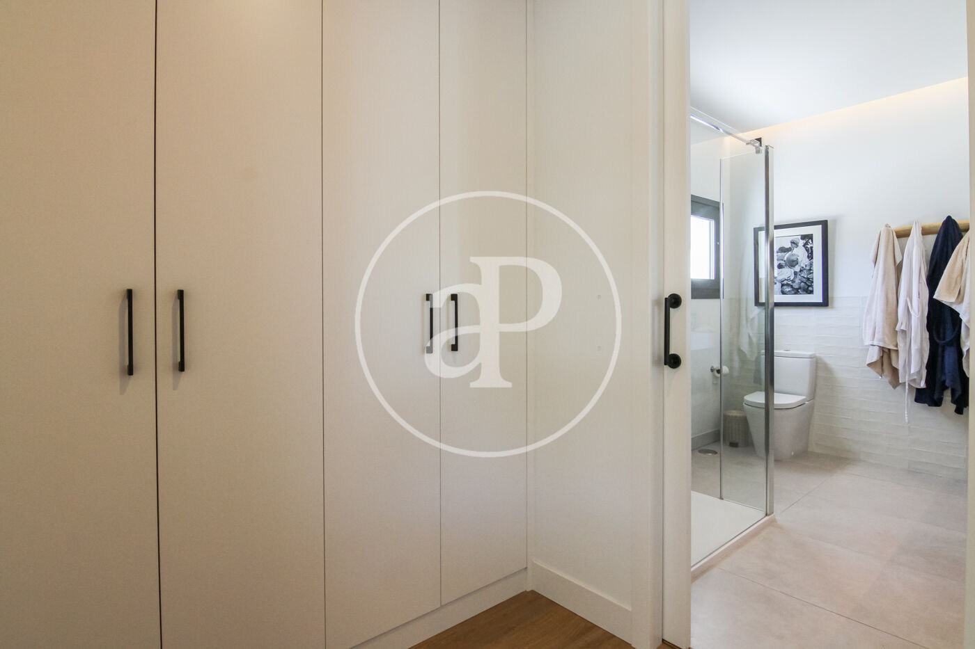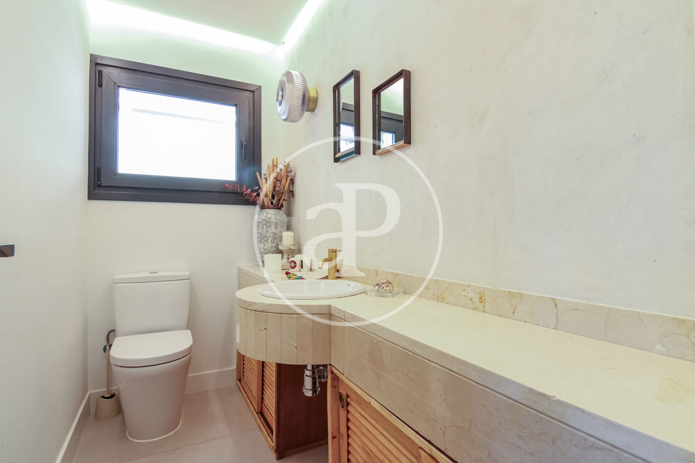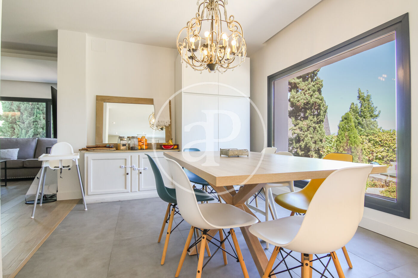 Espectacular chalet con amplios espacios y ubicación inmejorable aProperties presenta este elegante chalet de 444 m² construidos sobre una parcela de 534 m², situado en una zona privilegiada que combina la tranquilidad de un entorno residencial con la comodidad de tener todos los servicios al alcance. La vivienda se distribuye en tres niveles. En la planta baja, un espacioso recibidor da la bienvenida y conduce a un magnífico salón-comedor, perfecto para reuniones  familiares o sociales. La cocina, totalmente equipada y con acceso directo al jardín, permite disfrutar de una conexión fluida entre interior y exterior. En esta planta también se encuentra el dormitorio principal, un auténtico refugio con vestidor, baño en suite, salida privada al jardín y un práctico cuarto de lavado. Los suelos de mármol aportan un toque de elegancia y distinción a toda la planta. En la primera planta se encuentran dos dormitorios dobles, ambos con salida a balcón, un baño completo y una acogedora zona de estar multifuncional que puede destinarse a despacho, sala de juegos o segundo salón. Desde aquí se accede a una gran terraza ideal para disfrutar del sol y el descanso. Los suelos de parquet crean una atmósfera cálida y confortable. El sótano dispone de un amplio garaje con capacidad para cuatro vehículos y puerta automática, además de un gran trastero que ofrece espacio adicional de almacenaje. La propiedad cuenta con puerta blindada para mayor seguridad y la posibilidad de instalar un ascensor que comunique las tres plantas. El jardín que rodea la casa ofrece múltiples opciones de ocio al aire libre y permite la instalación de una piscina, tanto en la parte delantera como en la trasera. La calefacción central garantiza confort durante todo el año. Ubicación La vivienda goza de una excelente comunicación, a solo 30 km de Valencia capital y 40 km del aeropuerto. Las playas de El Perelló y Cullera se encuentran a unos 29 km, ideales para disfrutar de escapadas junto al mar. La accesibilidad es óptima, con fácil conexión a la autovía, metro y líneas de autobús. En las proximidades hay colegios, centros de salud, farmacias, supermercados y restaurantes, todo accesible incluso en bicicleta. Esta propiedad representa una oportunidad excepcional para quienes buscan espacio, confort y una ubicación estratégica cerca de Valencia. Contáctenos para más información o para concertar una visita.