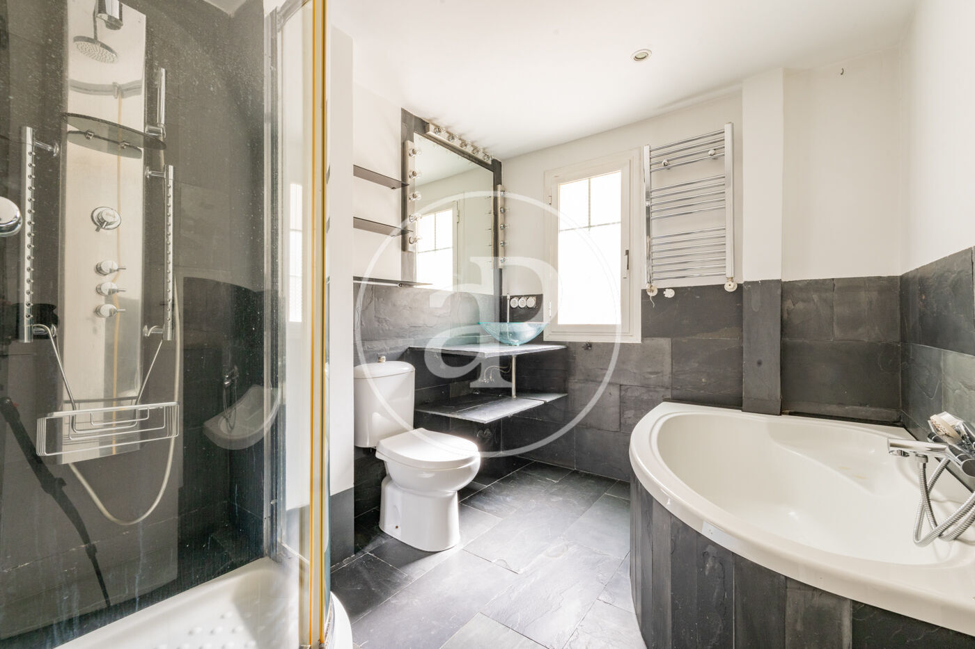 El área de descanso alberga el dormitorio principal, que disfruta de un generoso vestidor privado. El cuarto de baño, de amplias dimensiones, está equipado tanto con bañera como con plato de ducha, ofreciendo el máximo confort.