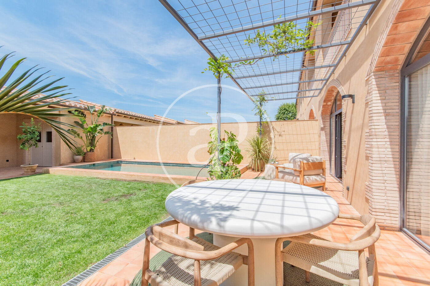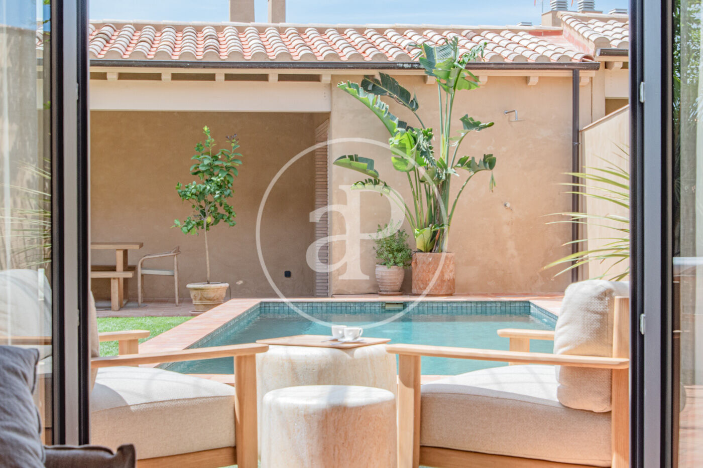 La planta baja cuenta con un amplio salón-comedor con cocina abierta y acceso directo a un acogedor jardín con piscina, un baño de cortesía y una habitación en suite. La entrada principal está diseñada con un amplio patio inglés, creando un espacio exterior versátil y especialmente atractivo para disfrutar en la temporada estival. El jardín cobra protagonismo tanto desde el interior como desde el exterior, con un porche ideal para chillout o comedor. En la planta superior, se encuentran 3 habitaciones en suite y una segunda sala de estar.