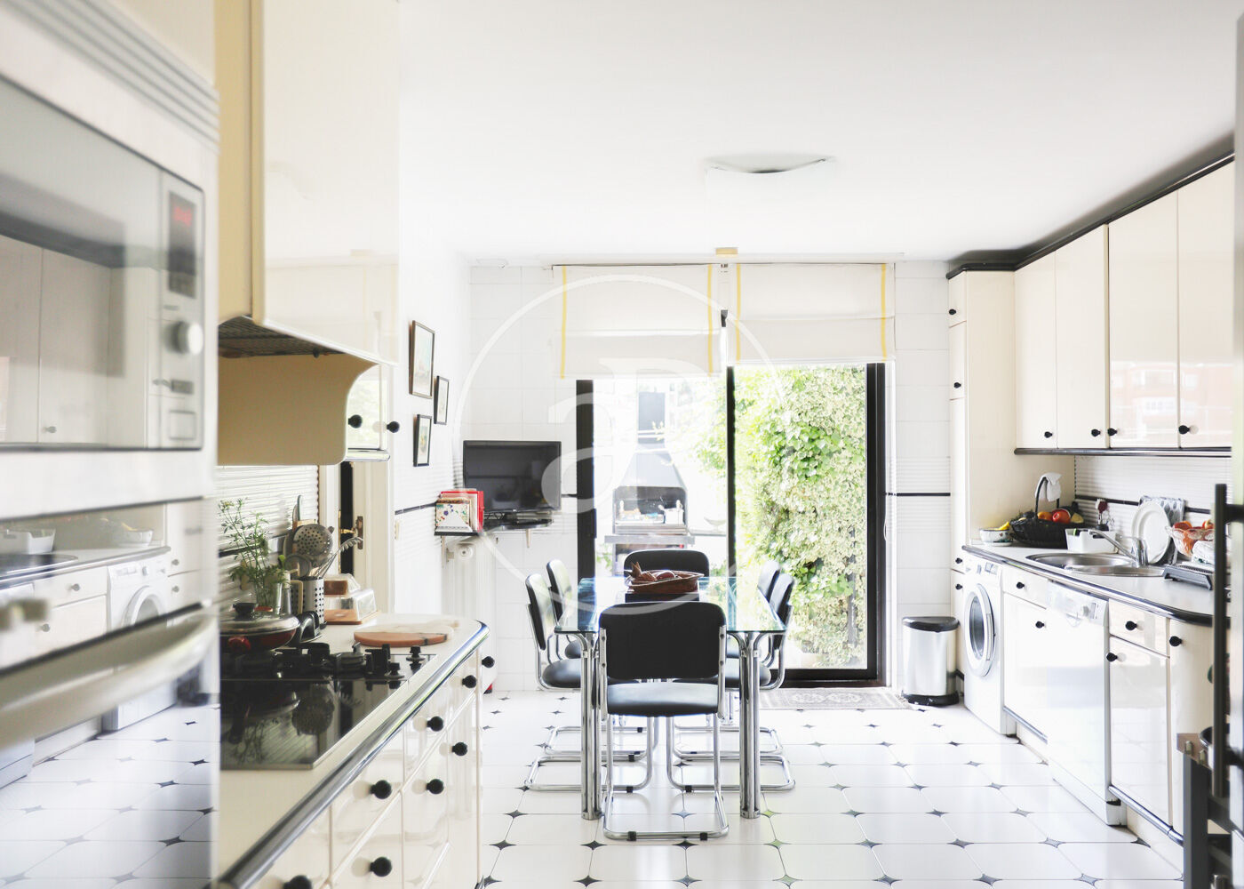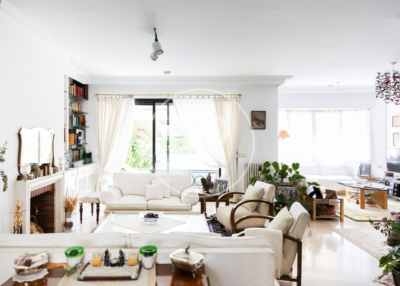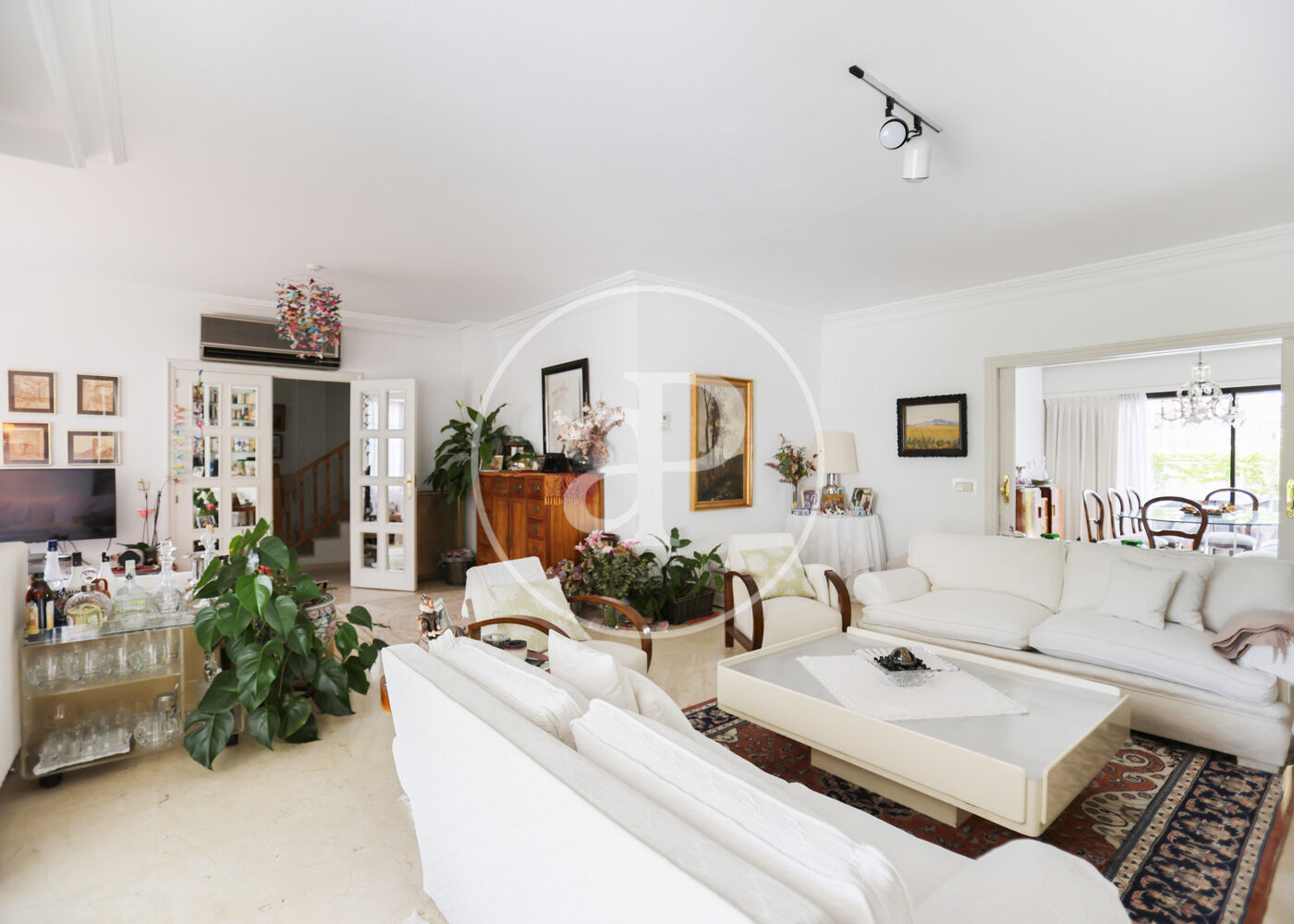 En la planta principal encontramos un amplio salón-comedor con doble orientación, grandes ventanales, chimenea y agradables vistas al jardín privado. El comedor independiente conecta con una cocina espaciosa, totalmente equipada y con zona office. En esta planta también se ubica un dormitorio de servicio en suite y un aseo de cortesía. Desde la cocina se accede al patio posterior, perfecto como zona de apoyo o espacio exterior adicional.