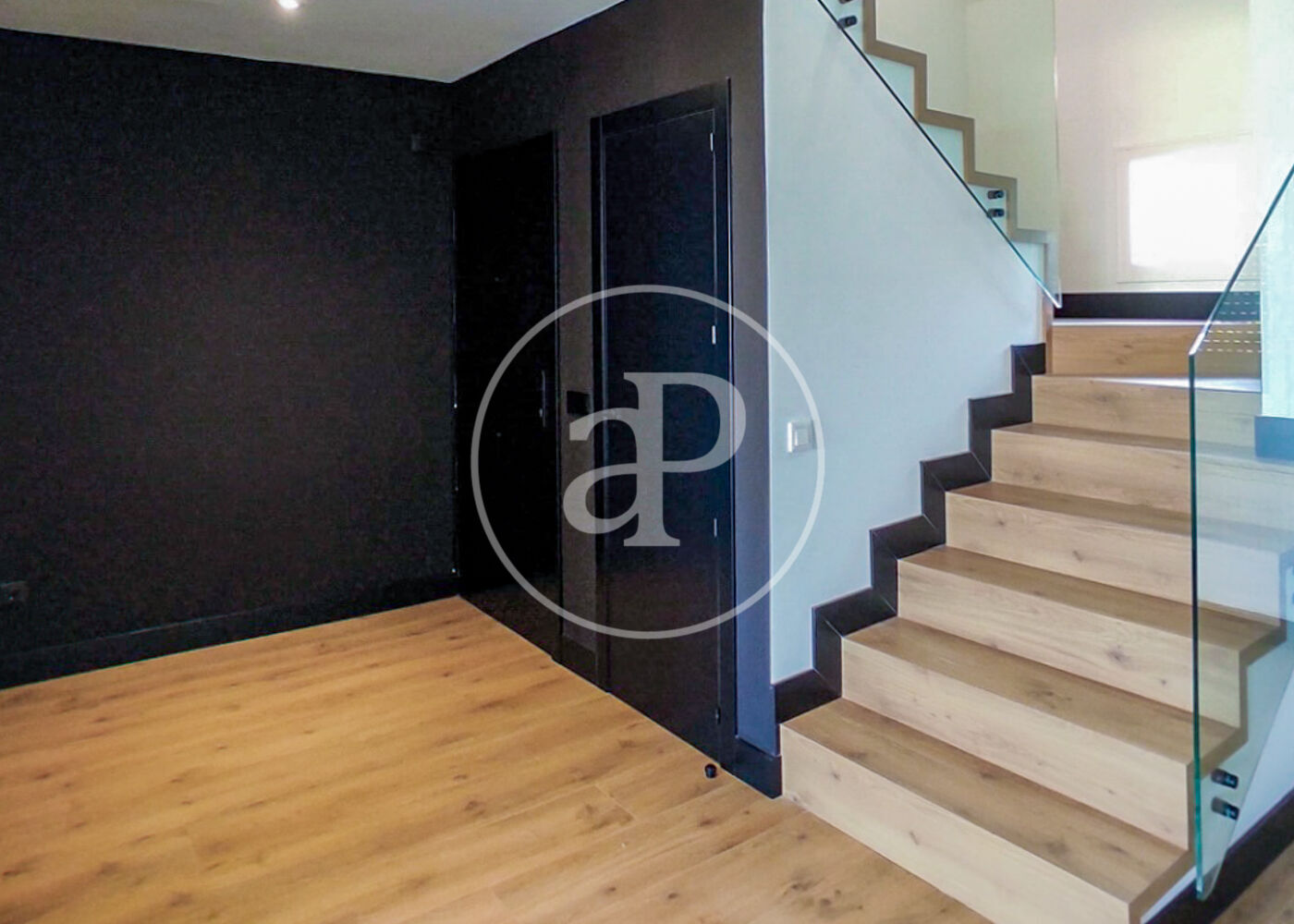 aProperties presenta en exclusiva esta impresionante vivienda de lujo, ubicada en una de las zonas más serenas y exclusivas de La Eliana. Diseñada con un cuidado excepcional en cada detalle, esta propiedad fusiona elegancia, comodidad y funcionalidad, ideal para quienes desean un estilo de vida distinguido. Construida en el año 2000 con materiales de primera calidad, la vivienda destaca por su fachada de ladrillo caravista que asegura durabilidad y nulo mantenimiento. Cuenta con una superficie construida de 417 m² sobre una parcela de 900 m². Todas las ventanas son automatizadas, con carpintería de aluminio color bronce y doble acristalamiento Climalit. Distribuida en dos plantas y un semisótano, cada espacio ha sido diseñado para maximizar el confort y la sofisticación. En la planta baja, al entrar, nos recibe un amplio vestíbulo que conecta con las distintas estancias. Aquí se encuentra un dormitorio con baño en suite, ideal para invitados o como habitación principal accesible. La cocina, moderna y equipada con barra americana, es amplia y luminosa, con espacio suficiente para una mesa de hasta ocho personas. Desde la cocina se accede a una terraza trasera perfecta para disfrutar al aire libre. Junto a ella, hay un práctico cuarto de lavandería y una despensa independiente que aportan organización y funcionalidad al hogar. El salón-comedor, con aproximadamente 60 m², es el corazón del hogar, con grandes ventanales que ofrecen vistas despejadas a la piscina y salida directa al exterior. La chimenea aporta un ambiente cálido y elegante, ideal para reuniones familiares o momentos de descanso. Gracias a su orientación, la casa disfruta de una iluminación natural excepcional que realza la calidad de los acabados y la sensación de amplitud en todos los espacios. Una escalera amplia y elegante conduce a la planta superior, destinada a la zona de noche, donde la amplitud y el buen diseño destacan. En esta planta se encuentran tres dormitorios espaciosos, todos con armarios empotrados y altillos para almacenamiento adicional.. El dormitorio principal sobresale por su privacidad y confort, incluyendo un baño en suite perfectamente integrado. Otro de los dormitorios dispone de acceso a una encantadora buhardilla de estilo americano, ideal como espacio extra para relajarse o adaptar según las necesidades. Además, esta planta cuenta con un espacio acristalado que funciona como oficina luminosa y tranquila, perfecto para teletrabajo o estudio, así como una habitación-trastero que añade funcionalidad. Cada rincón ha sido pensado para ofrecer confort y versatilidad, creando un ambiente ideal para vivir y descansar. El semisótano es amplio y polivalente, adecuado para diferentes usos, como sala de juegos para niños o adultos, zona de ocio o espacio para eventos. Además, cuenta con acceso independiente desde el exterior, haciéndolo un área completamente autónoma y funcional. Junto a esta sala, hay un espacio aún mayor destinado a albergar las instalaciones técnicas de la vivienda. Aquí se encuentran una caldera eficiente y un depósito de gasoil con capacidad para 1.000 litros, junto a un depósito adicional de agua de reserva del mismo volumen, garantizando confort y suministro constante. Esta área combina practicidad y modernidad para cubrir todas las necesidades del hogar. El exterior es igualmente espectacular, con una piscina privada de agua salada rodeada de jardines cuidados y terrazas diseñadas para aprovechar la vida al aire libre. Esta casa es un auténtico refugio de paz y lujo en La Eliana, donde cada detalle ha sido cuidadosamente pensado para ofrecer un hogar excepcional. Situada en una urbanización residencial muy tranquila, con absoluta privacidad, pero a pocos minutos de servicios esenciales como colegios, supermercados, transporte público y acceso rápido a la autovía. Este chalet representa la mezcla perfecta de lujo, confort y ubicación, un hogar único para quienes buscan la excelencia en cada detalle. ¡Contacta con nosotros para visitarlo y descubrir esta joya inmobiliaria!