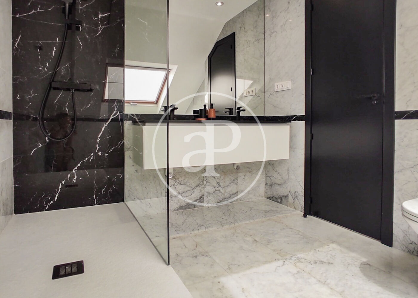 En una de las calles con mayor encanto de Barcelona, a pocos metros de la Plaza Sant Jaume y de la Catedral de Barcelona, ubicado en un edificio del 1928, encontramos este apartamento único, totalmente rehabilitado, a estrenar, que combina un exquisito interiorismo con acabados de alta calidad, creando una combinación de elegancia y exclusividad. Tiene una superficie de 238m² y un patio ajardinado muy acogedor, como núcleo de la vivienda, de unos 47m². Desde el hall de entrada accedemos a un espacio abierto preparado para lectura con vistas y salida al patio ajardinado. A continuación, accedemos a una cocina semi abierta con vistas al mismo patio, totalmente equipada con aparatos de alta gama, cuidando al detalle todos los elementos interiores potenciando así un estilo propio y diferenciado de la vivienda. Desde la cocina accedemos a un amplio salón-comedor en un solo ambiente con salida a la calle. A ambos lados del salón accedemos a dos masters suite con su baño y vestidor y con salida a la calle. A su vez, desde el distribuidor accedemos a dos habitaciones una de ellas en suite con su baño, y a otro baño que puede dar servicio como baño cortesía. Estas dos habitaciones tienen vistas a otro patio ajardinado de la vivienda de unos 15m². Incluye un trastero en la misma finca. Pieza única en la zona por las calidades y el estilo de interiorismo existente...