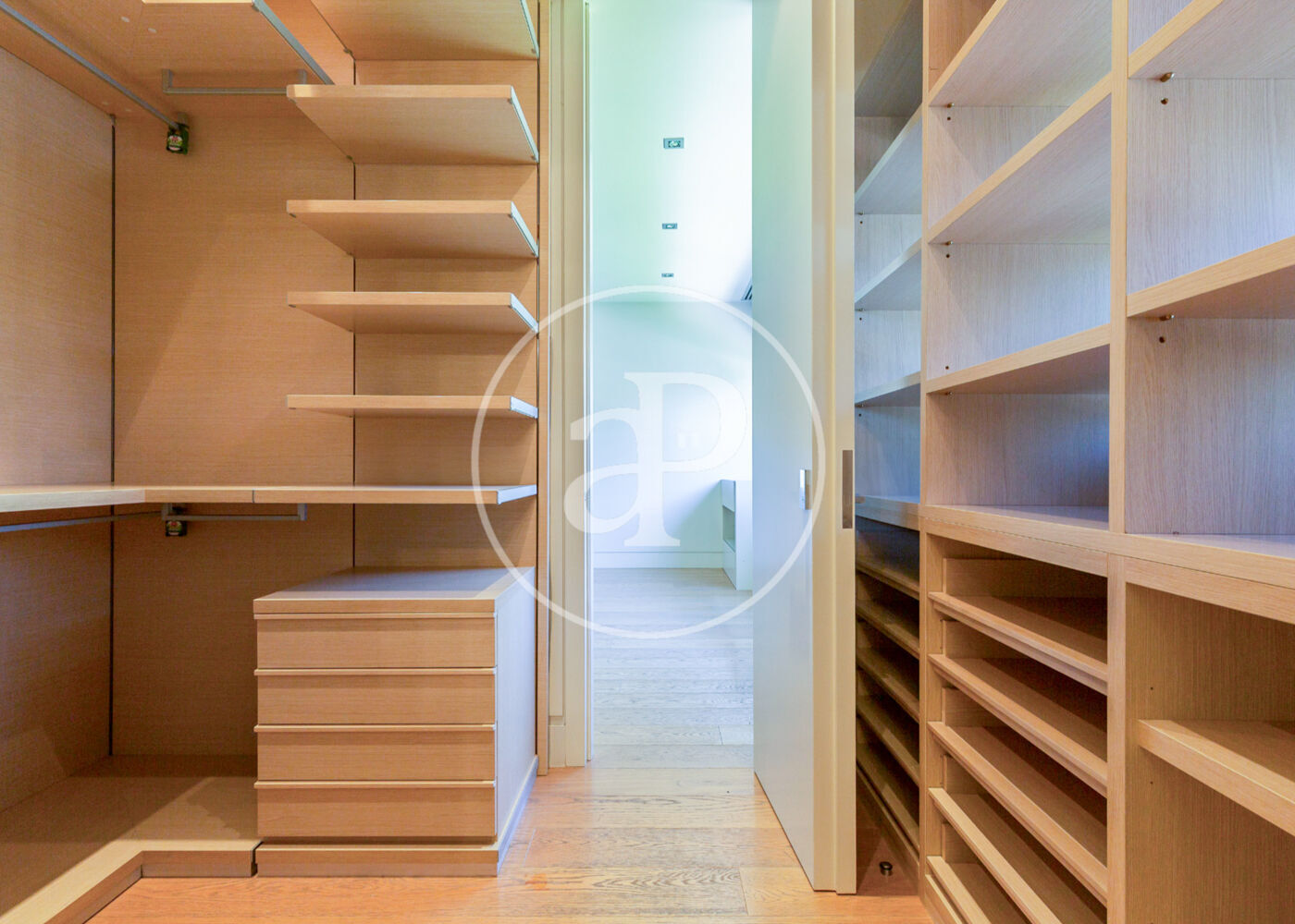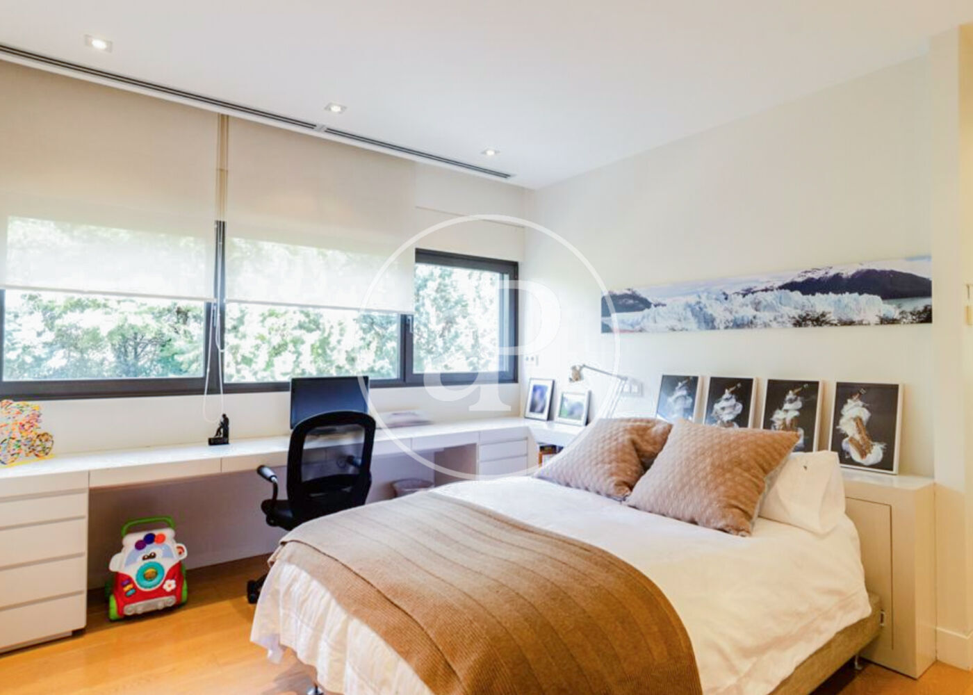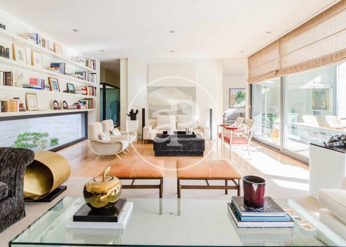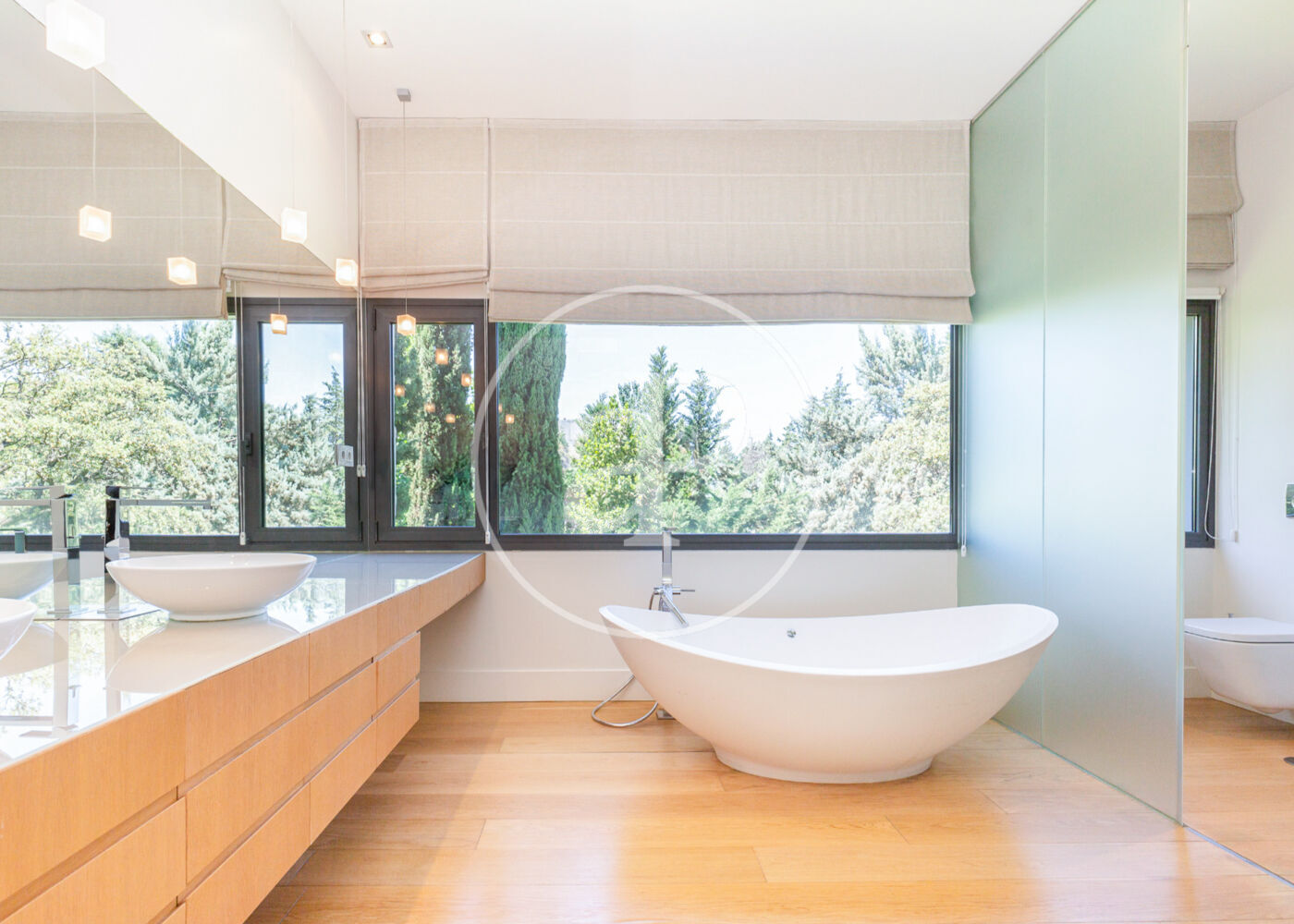 Destaca por sus grandes ventanales, techos altos y jardines ingleses en su interior, que brindan una sensación de conexión con la naturaleza en todas las estancias. La distribución inteligente de la casa comienza en la entrada principal, que conduce a un amplio salón con vistas al hermoso jardín, un comedor, una sala de estar con acceso al porche y los jardines, y una cocina espaciosa con acceso a la planta semisótano, donde se encuentra la zona de servicio. En la primera planta, se encuentra el dormitorio principal con vistas al jardín, una sala de estar acogedora, un amplio vestidor y un baño en suite. Además, hay cuatro dormitorios más con baño en suite y grandes armarios empotrados, todos con hermosas vistas al jardín. El semisótano cuenta con una sala de eventos o cine, un dormitorio de invitados con baño en suite, gimnasio con spa, zona de servicio, garaje y zona de almacenamiento, con la comodidad adicional de un ascensor que conecta todos los niveles de la casa. La propiedad se encuentra en una parcela plana de 2.700 m², con un exquisito diseño del reconocido arquitecto Ignacio Vicens. Dispone de un imponente y elegante salón con vistas al jardín y porche cubierto con piscina, una amplia cocina con acceso al exterior, cinco dormitorios en la planta de descanso, y un sótano con sala de ocio, trasteros, garaje, dormitorio de invitados, zona de lavandería y habitaciones de servicio. El jardín, un verdadero oasis con vegetación variada, ofrece serenidad y privacidad, perfecto para eventos familiares y con amigos. Con una ubicación inmejorable en una tranquila calle sin salida, esta propiedad ofrece una combinación única de diseño contemporáneo, belleza natural y comodidades excepcionales. No pierdas la oportunidad de adquirir esta vivienda de ensueño en una de las mejores zonas residenciales de Madrid. La Moraleja es una urbanización residencial de lujo situada en el municipio de Alcobendas, en la zona norte del área metropolitana de Madrid. Linda con otras urbanizaciones como El Soto de la Moraleja y El Encinar de los Reyes. La Moraleja es una de las urbanizaciones con mayor renta per cápita de toda España. Rodeada de zonas verdes, colegios privados a sus alrededores, seguridad para sus vecinos y a tan solo 20 minutos de Madrid o 15 minutos del aeropuerto, hacen de esta zona un enclave privilegiado para vivir a las afueras de la capital.