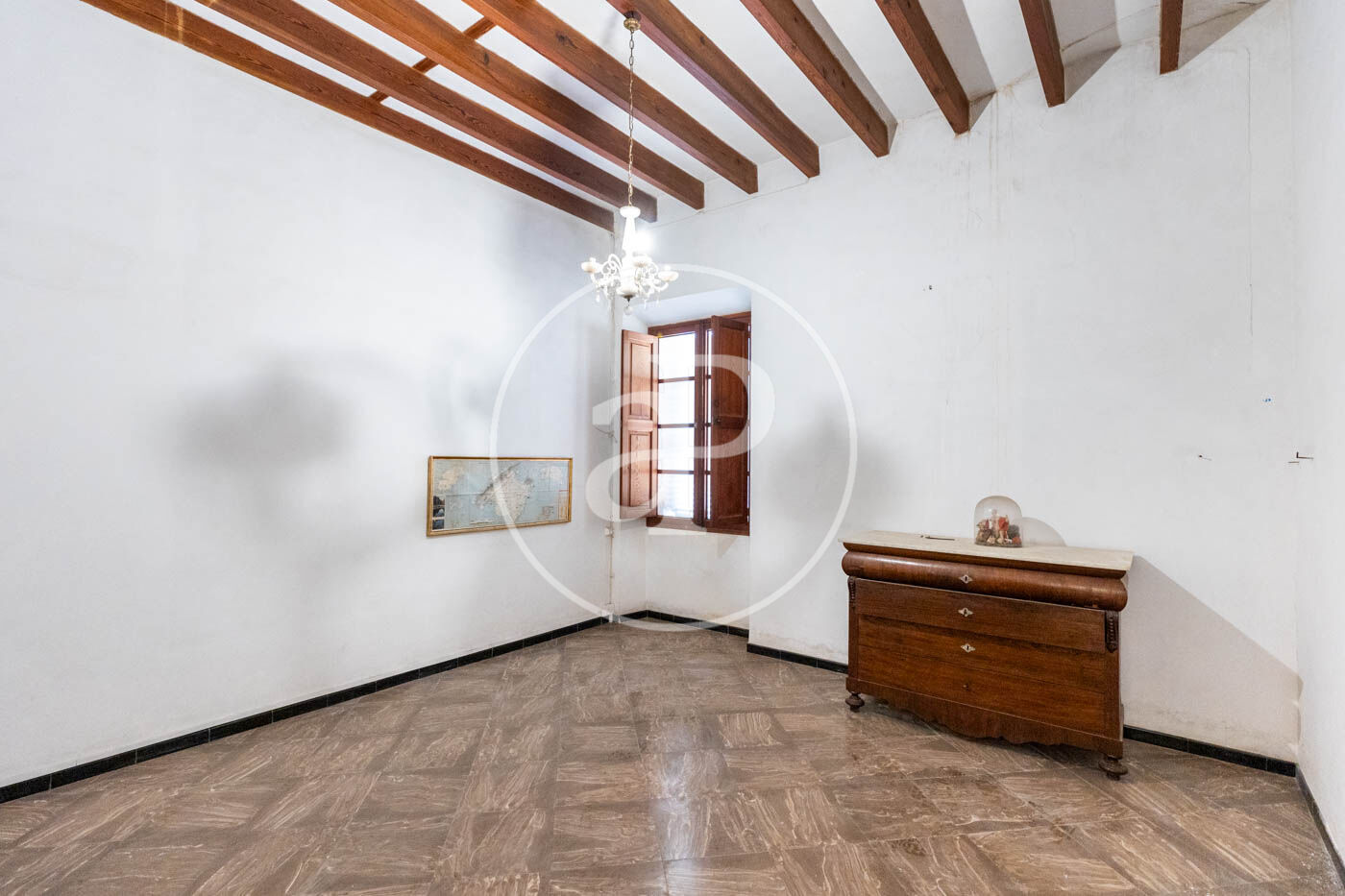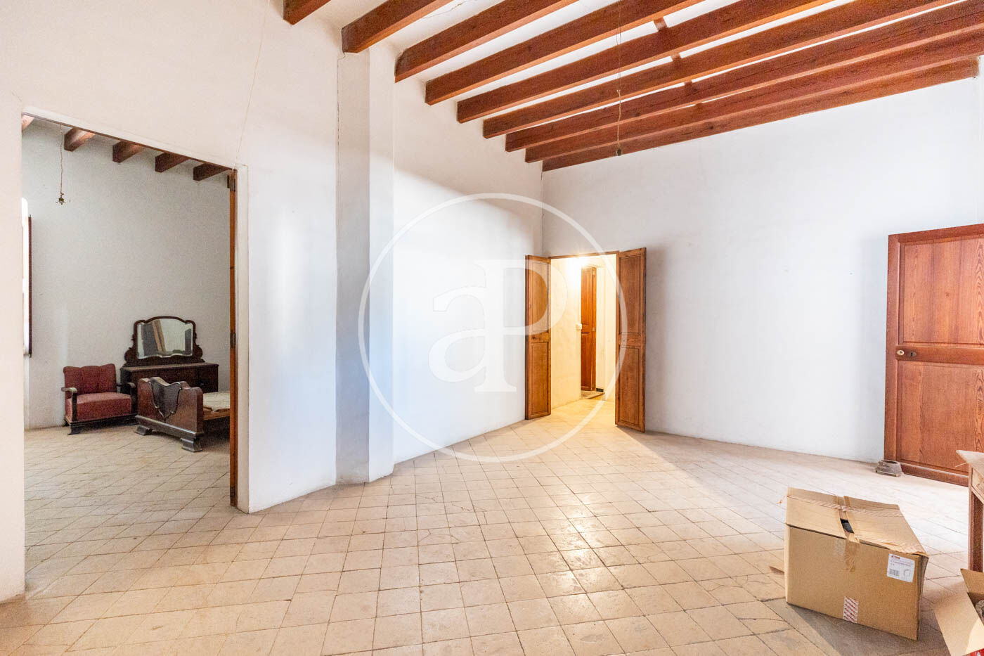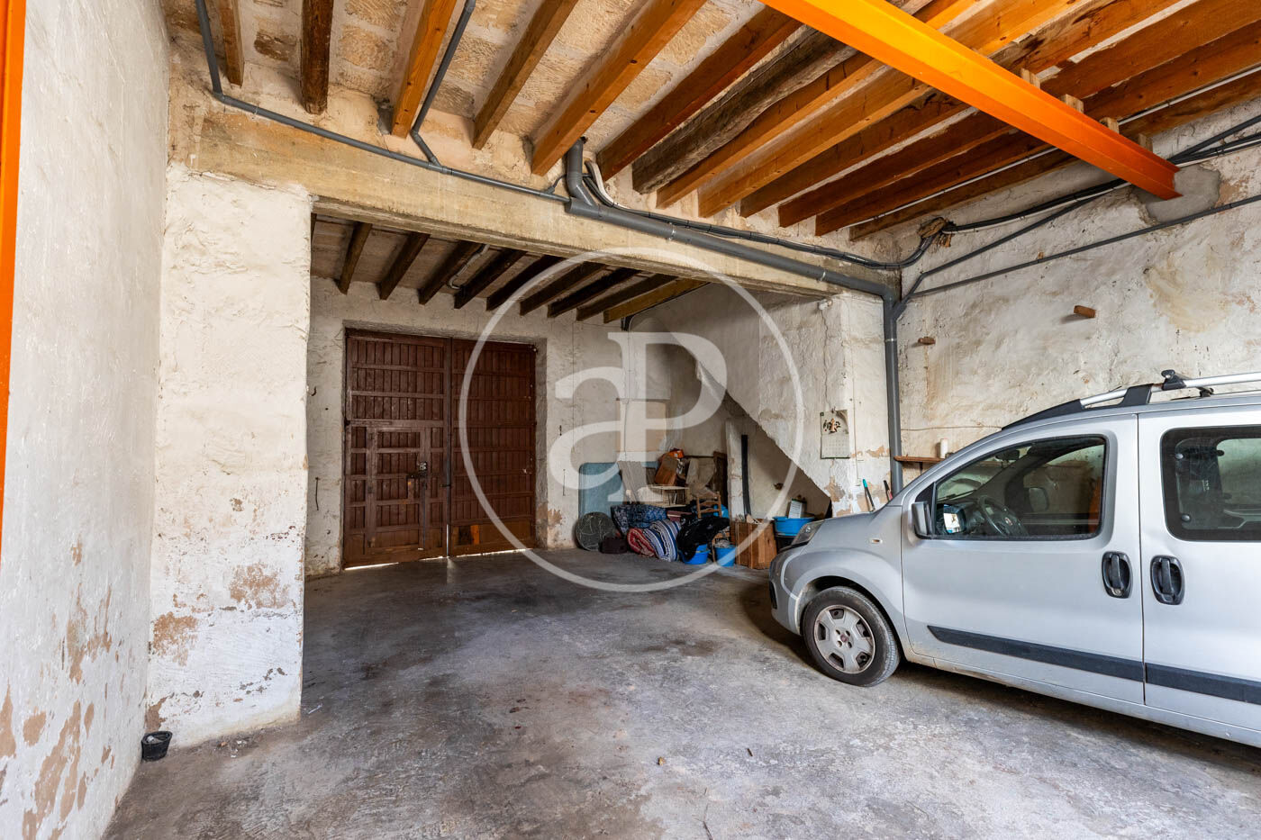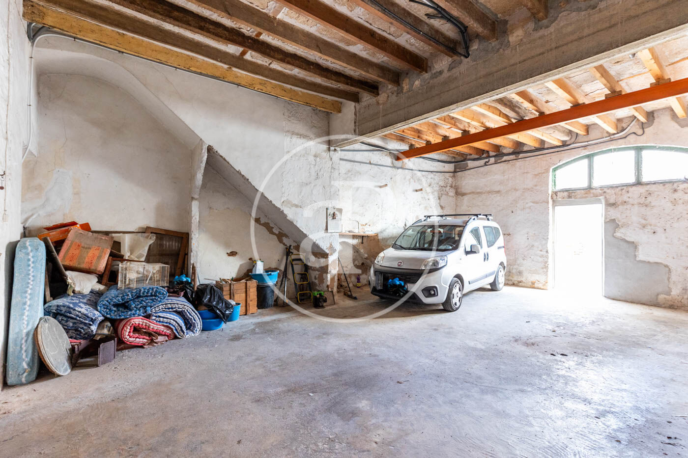 Con entrada a los dos lados de la calle. Con sus techos altos con arcos y bigas de madera. Por su gran tamaño lo han dividido en dos unidades independientes. Una de ellas está renovada y tiene acceso a través de una fabulosa escalera mallorquina. Esta parte renovada consta de un salón comedor con cocina amueblada, dos dormitorios, baño y parking. Puede habitarse ya y se podría alquilar inmediatamente.