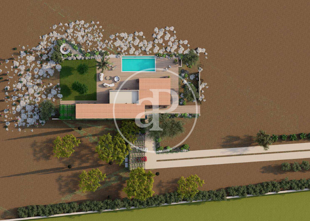 La moderna finca goza de una privacidad de ensueño. Rodeado de unos maravillosos jardines que nos deleitaran de unas vistas como si se tratase de un lienzo. La parcela de 21.000 m² rodeada de vegetación se está construyendo un chalet moderno con una superficie construida de 380 m².