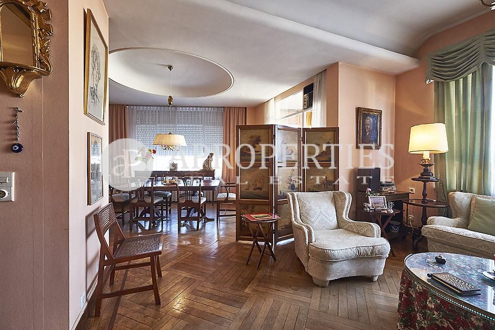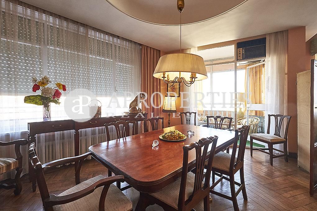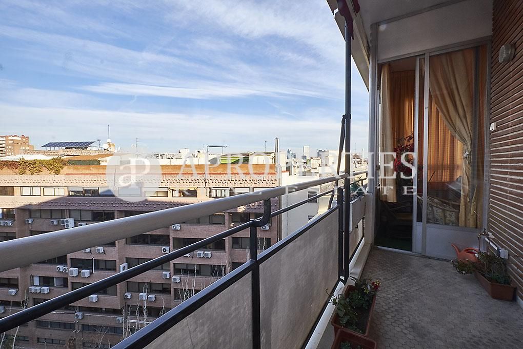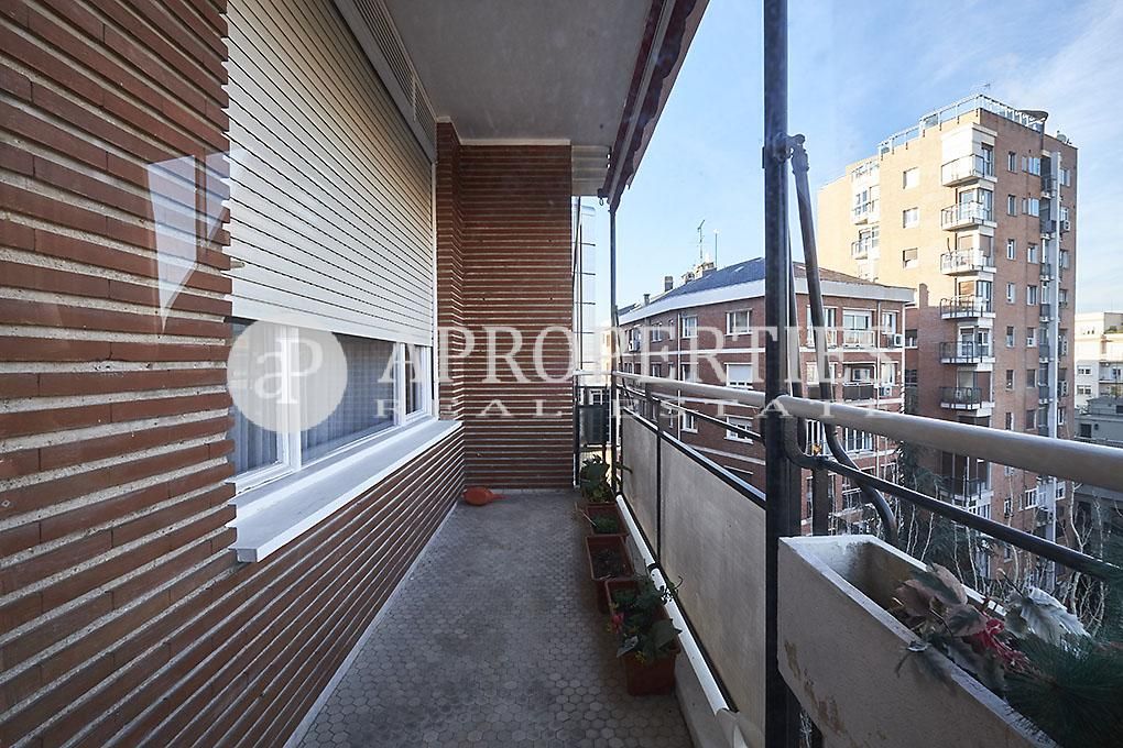 En el corazón de Almagro, en una de las calles más emblemáticas, encontramos esta fantástica vivienda con terraza. El piso cuenta con un hall distribuidor, que da acceso a un estupendo salón con salida a la terraza semi-acristalada. La zona de noche se distribuye en cuatro habitaciones con grandes ventanales de las cuales tres dan a una zona ajardinada y la cuarta a un gran patio por la que entra mucha luz al ser una séptima planta, y dos cuartos de baño. La zona de servicio tiene una entrada independiente, cuenta con un office, cocina con zona de estar, lavadero y habitación de servicio con cuarto de baño. La finca dispone de un estupendo portal de mármol, maderas nobles y dos ascensores principales. Existe la posibilidad de adquirir una plaza de garaje en el edificio de enfrente. En los gastos de comunidad se incluyen los servicios de portería, el agua caliente y la calefacción.