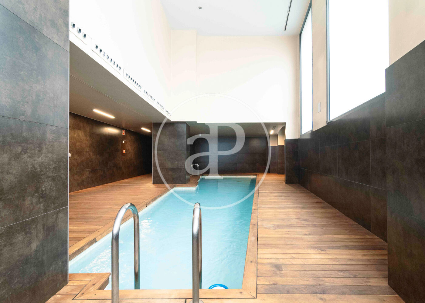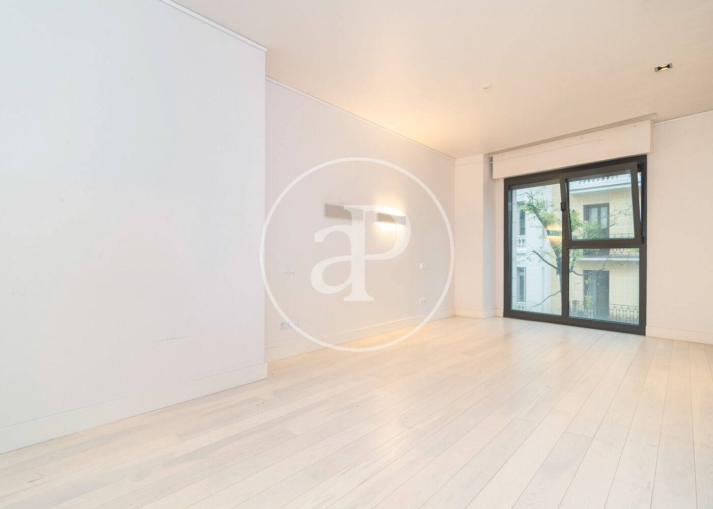 Exclusiva vivienda, recién reformada en calle Almagro. Exterior, 230 m2 útiles, Edificio reformado, lujoso, con zonas comunes, piscina, gym, sauna. Vigilancia 24h,