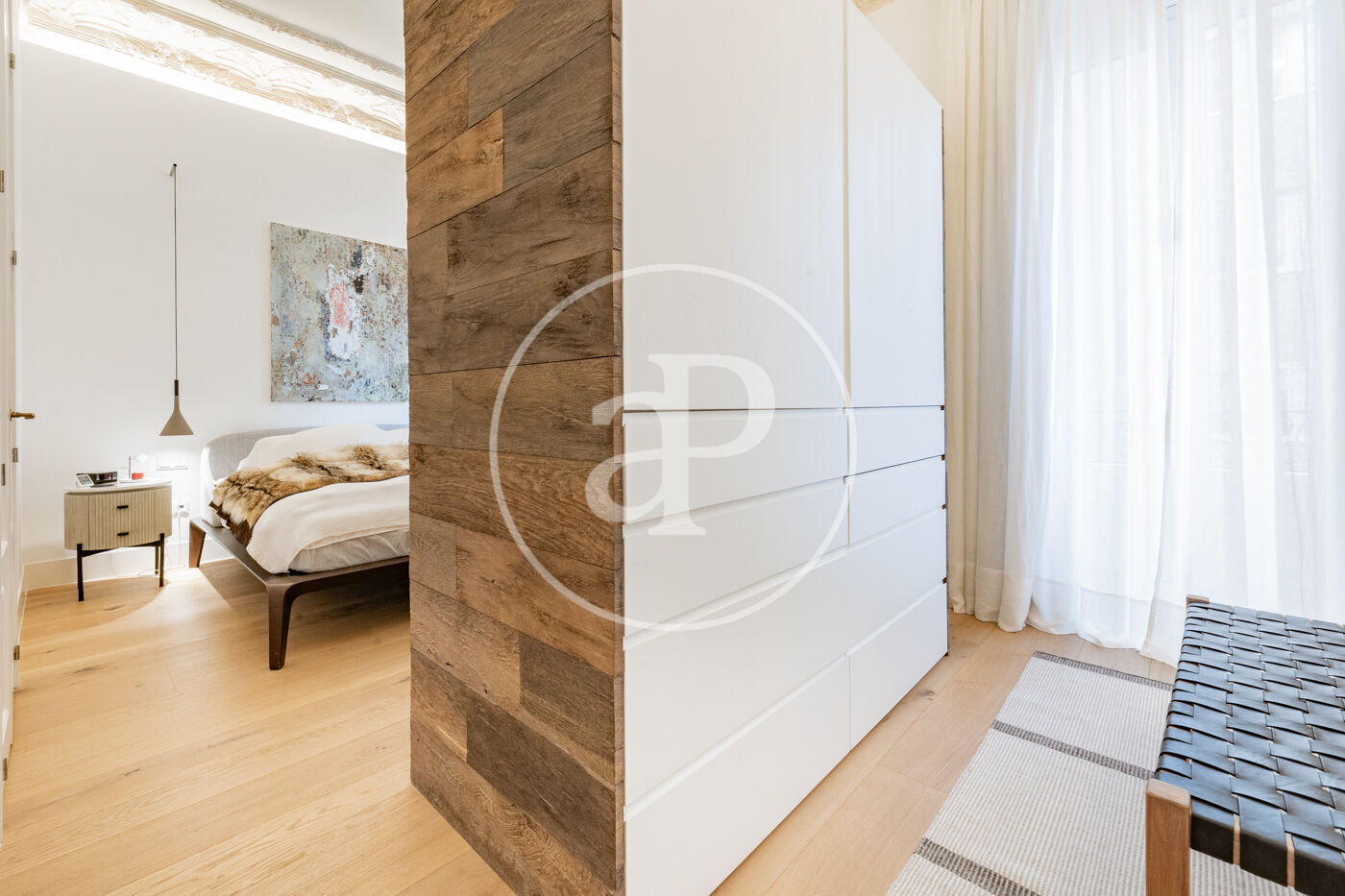 Aproperties presenta esta exclusiva propiedad en Almagro con 8 preciosos balcones en chaflán. Se trata de una segunda planta ubicada en una preciosa finca clásica de 1950 con portal representativo y preciosas zonas comunes que guardan la esencia señorial del edificio. La vivienda cuenta con 267 m2 construidos según catastro. Se ha sometido a una reforma integral con calidades prime, resultando una vivienda de diseño respetando los elementos arquitectónicos originales que le aportan carácter como las molduras, las vigas de madera y ladrillo visto original. Consta de una espléndida zona de día con varios ambientes, zona de lectura con chimenea, family room o sala de TV, salón social para recibir visitas y gran comedor formal. Una original cocina de diseño en dos ambientes equipada con electrodomésticos de primeras marcas. Además de un práctico aseo de cortesía y amplio cuarto de lavandería independiente. La zona de noche con tres amplias suites, con baño completo y todas con espaciosos walk-in closet. La suite principal con mucho encanto gracias a sus dos balcones franceses, altura de techo y originales molduras y el baño tipo spa con bañera y ducha independiente. Destacamos la imponente altura de los techos de 3.6m que aportan amplitud y gran luminosidad a las estancias.
