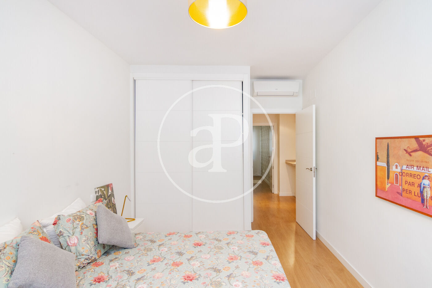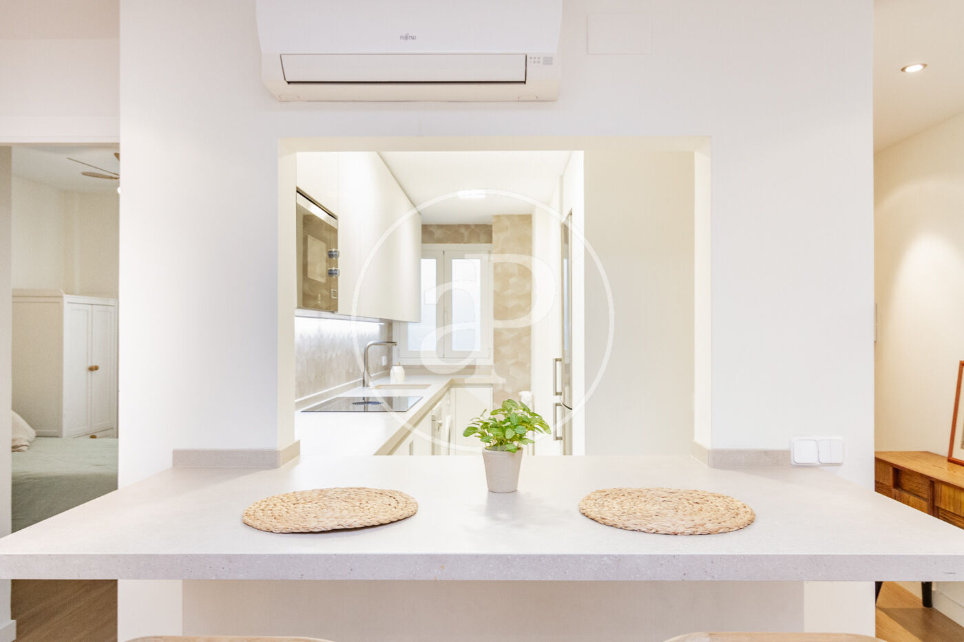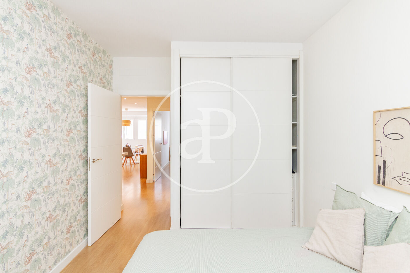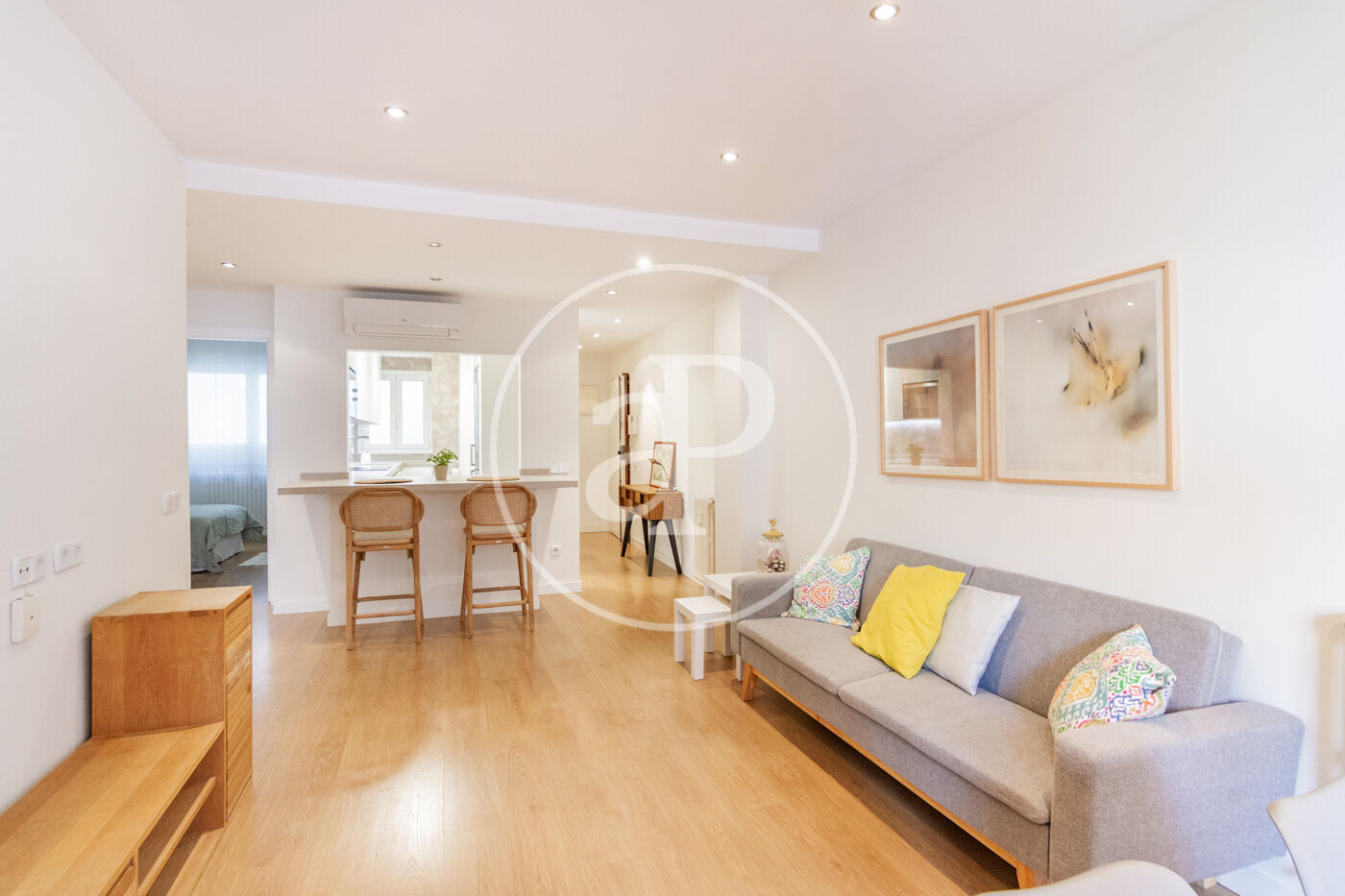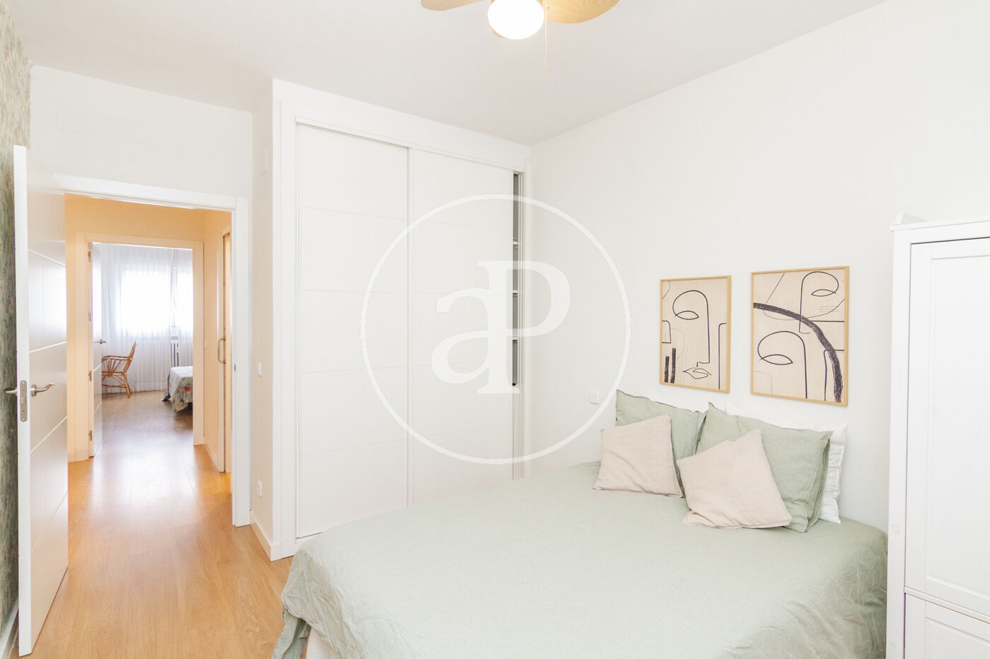 Aproperties presenta precioso piso reformado en Almagro, en la bonita calle de Zurbarán, ubicado en un señorial edificio con un precioso y amplio lobby. Se trata de una tercera planta interior con mucha luz que da a un patio de manzana con vistas a un precioso jardín de diseño. Su superficie es de 89 m2 construidos, según catastro. La zona de día se distribuye en hall de entrada con armario gabanero, amplio salón- comedor con bonita cocina semi-integrada. La zona de noche la componen dos dormitorios dobles con armarios empotrados y una alegre baño completo. El piso se ha reformado recientemente, es tranquilo y con mucha luz . Cuenta con aire acondicionado por split en varias estancias así como calefacción a gas central con contadores individuales. El edificio dispone de garaje en finca con acceso directo por ascensor en el que habitualmente se pueden alquilar o comprar plazas de garaje, no incluidas en el precio.