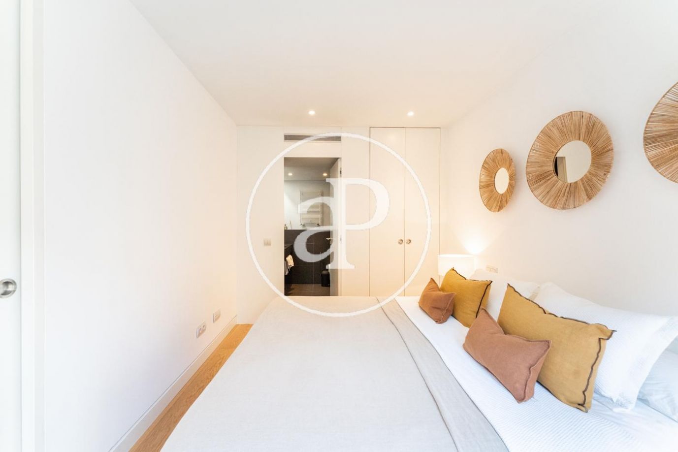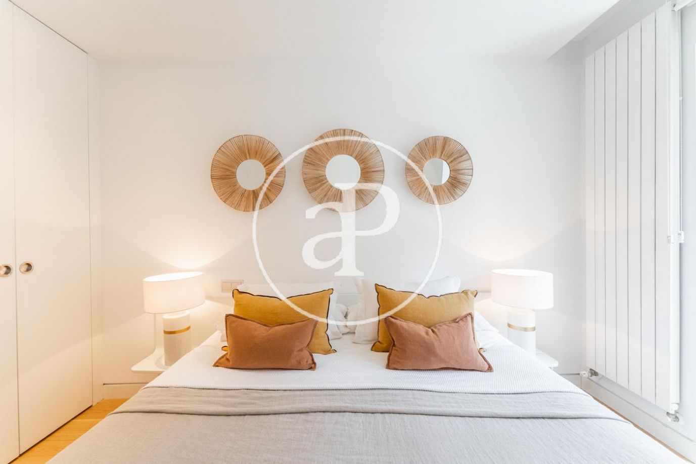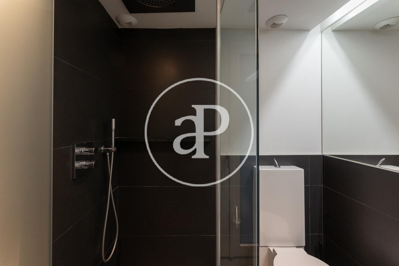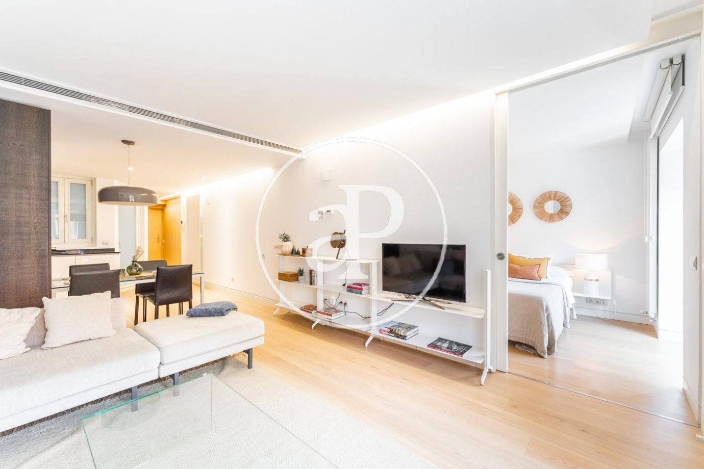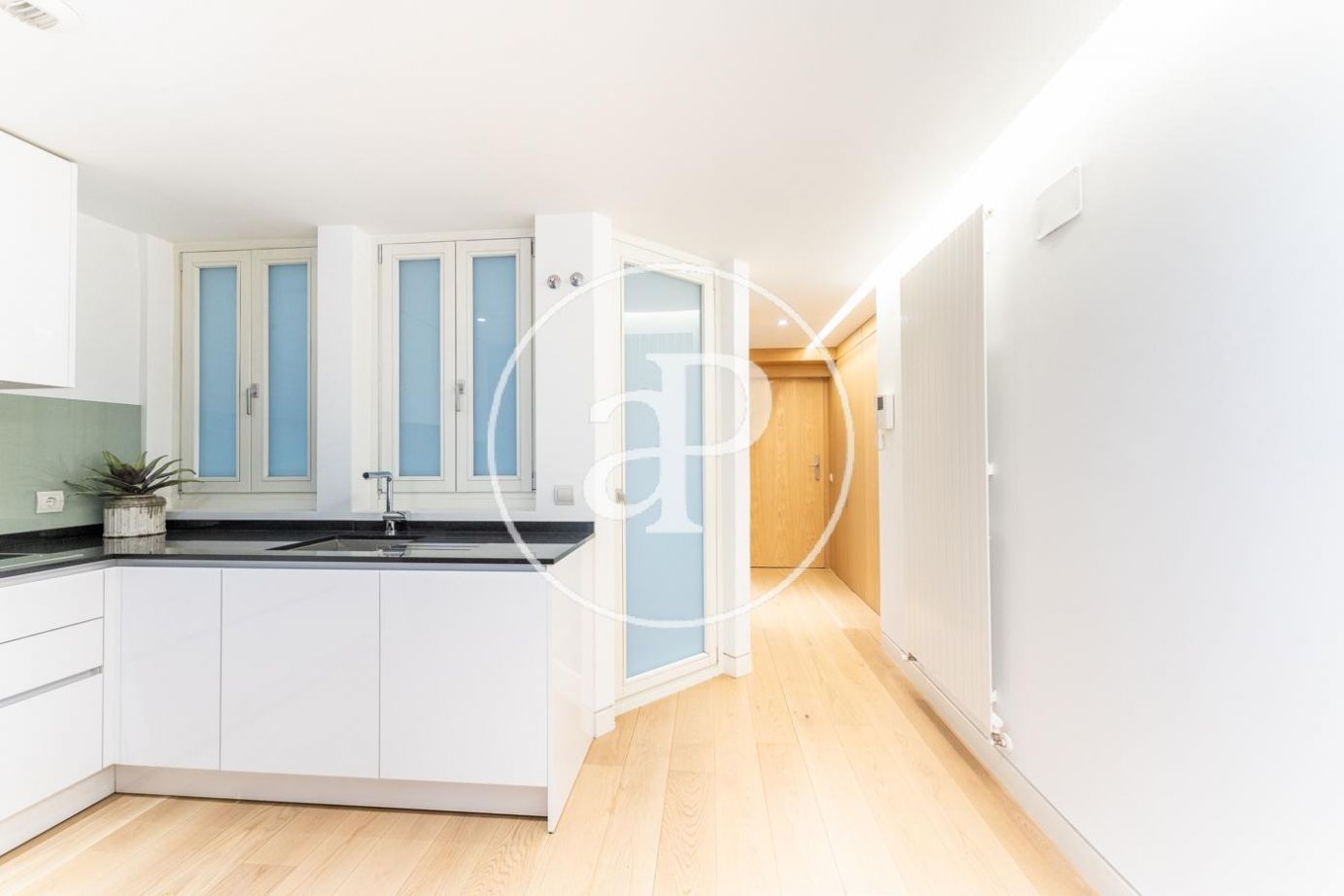 El piso de 92 metros cuadrados construidos se distribuye desde la entrada en la que tiene un gran armario empotrado. Seguidamente, encontramos la cocina, con electrodomésticos panelados AEG de alta gama. El piso dispone de una mesa de 4 comensales que divide la zona de día en dos ambientes. Por un lado, la cocina abierta y por el otro el salón, muy luminoso gracias a su gran ventanal y con vistas a un amplio patio de manzana, muy tranquilo. Desde el salón se accede al dormitorio, con cama doble y baño en suite con ducha; también con buena iluminación natural. La vivienda cuenta con ventanas con doble acristalamiento, calefacción central regulable individualmente y aire acondicionado por conductos en todas las estancias. La finca dispone de gimnasio, conserje de día, ascensor y opción de alquilar plaza de garaje con acceso directo al piso por 200 € adicionales. En el precio están incluidos los suministros de agua, luz, calefacción e internet de cortesía. El piso se encuentra en el emblemático barrio de Almagro en la conocida calle Génova, en finca con fachada clásica, pero con reforma integral tanto en zonas comunes como en las viviendas. Ubicación excepcional por encontrarse a un paso del Paseo de la Castellana, bien comunicada por el transporte público y cercana a multitud de comercios y restaurantes. DISPONIBLE A PRINCIPIOS DE MARZO DE 2022.