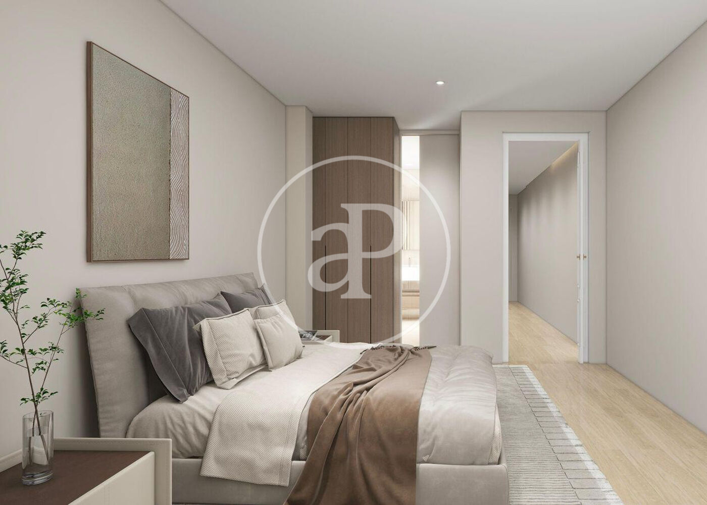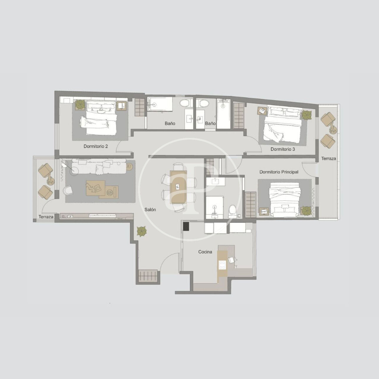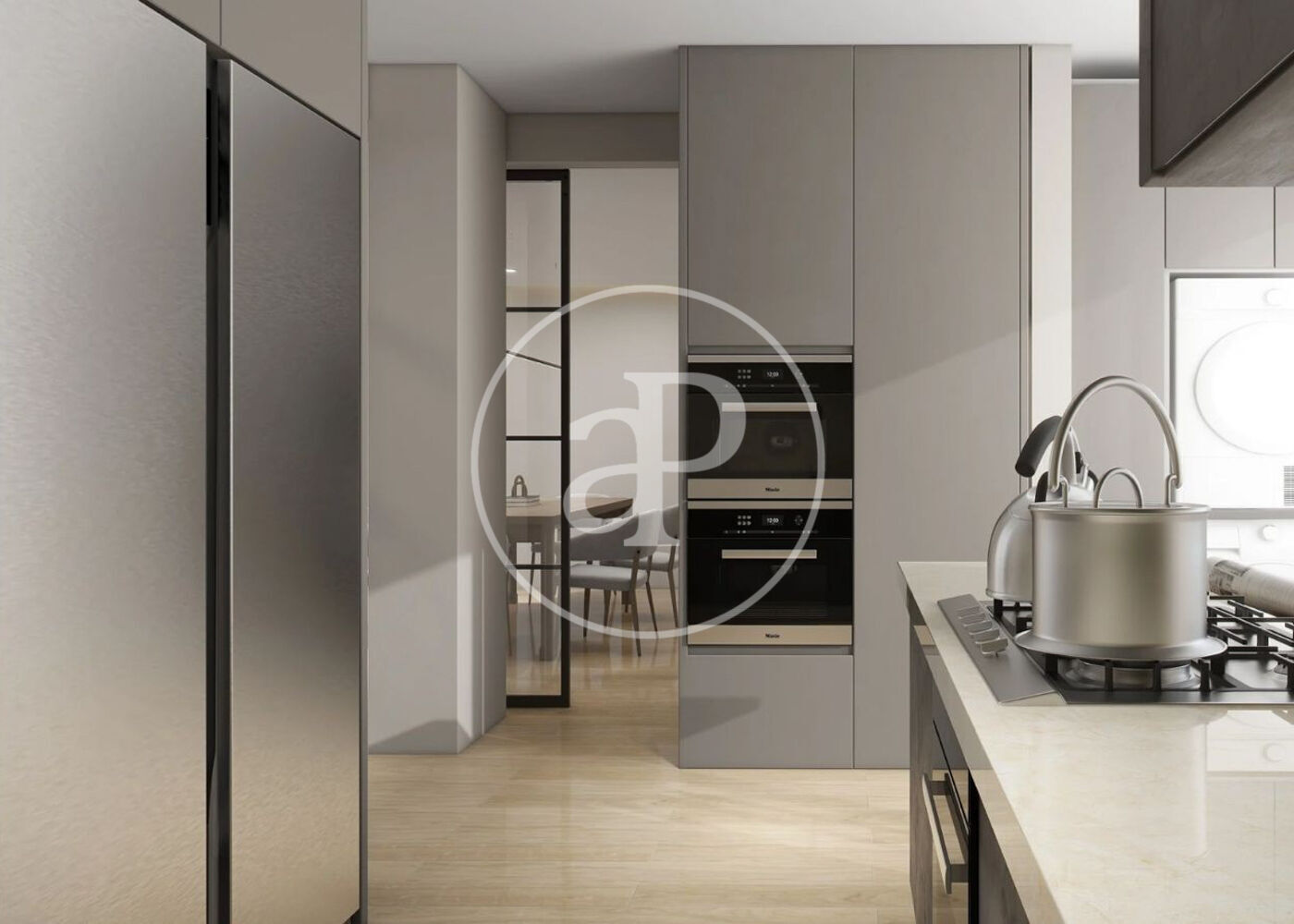 Los 169 metros cuadrados construidos en tres orientaciones diferentes permiten espacios amplios y modernos, pensados hasta el detalle para el máximo confort. Se accede por un recibidor que da acceso a un magnífico salón comedor distribuido en dos ambientes, con salida a una terraza mirando a la calle Vallehermoso. Destaca la gran luminosidad de la vivienda. La cocina completamente equipada con desayunador, vinotecauna y con los electrodomésticos panelados está contigua al salón pero separada por unas elegantes puertas de cristal, y al otro lado unida una terraza interior donde se ha alojado la zona de lavado. Cuenta con tres dormitorios dobles, dos de ellos con baño en suite y un tercer baño sirve también para visitas. Dos dormitorios comparten una terraza y el tercero es exterior también. Materiales de primera calidad, suelo de porcelánico rectificado efecto madera de roble, calefacción central y climatización por aire acondicionado frío/calor A++ aislable por zonas.